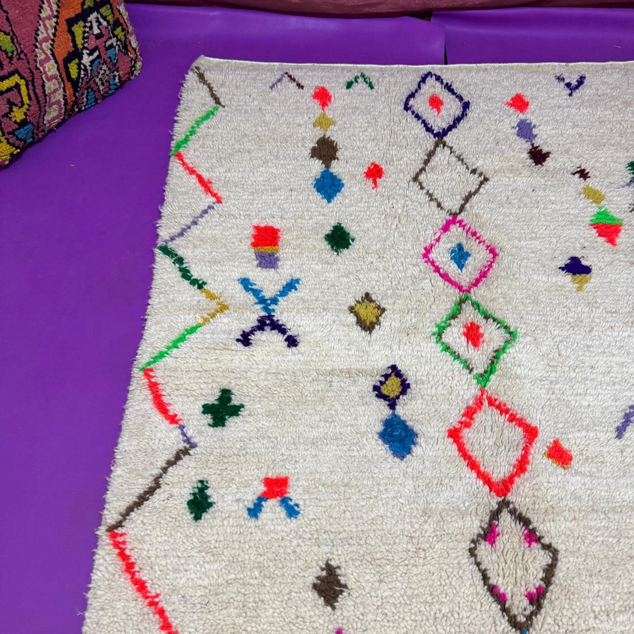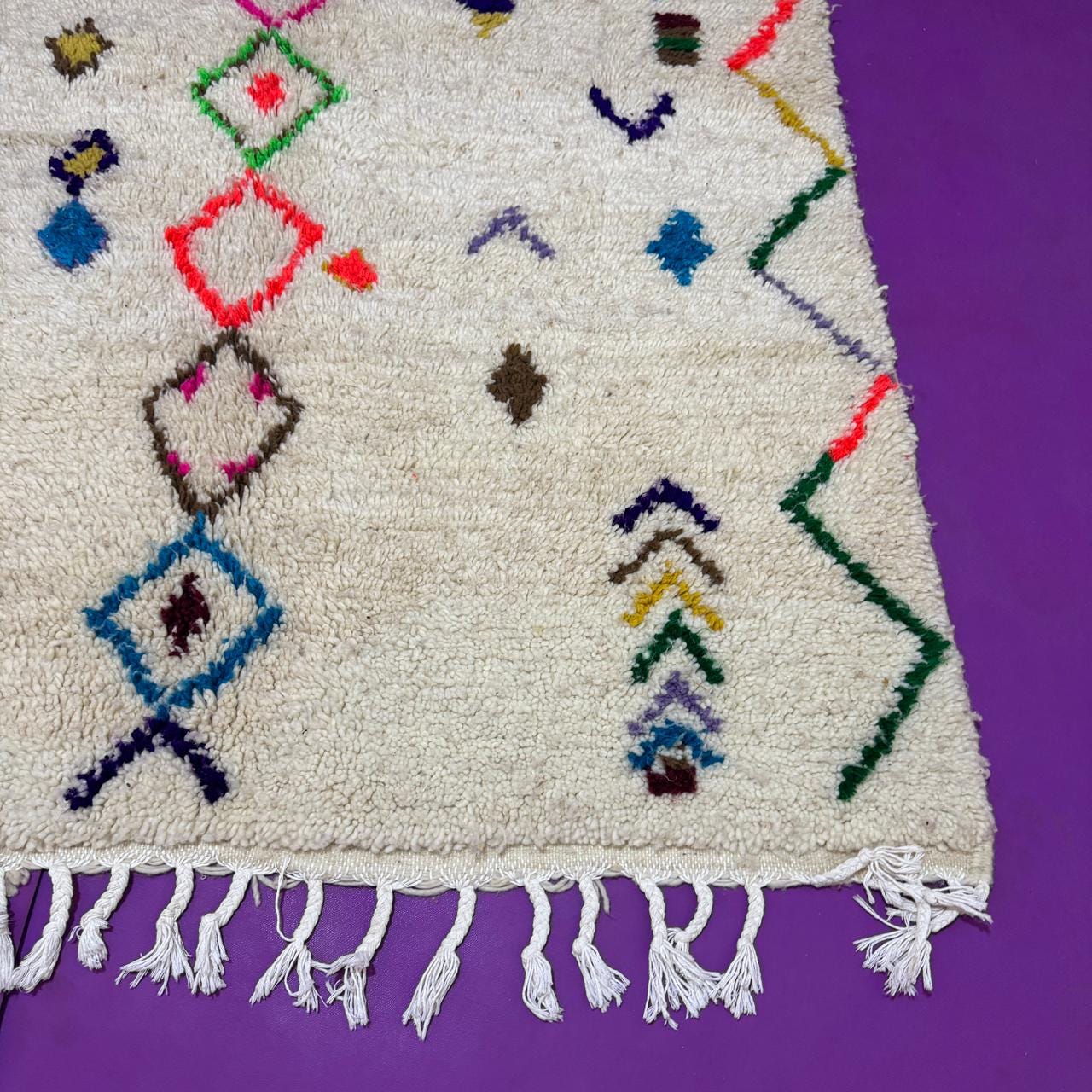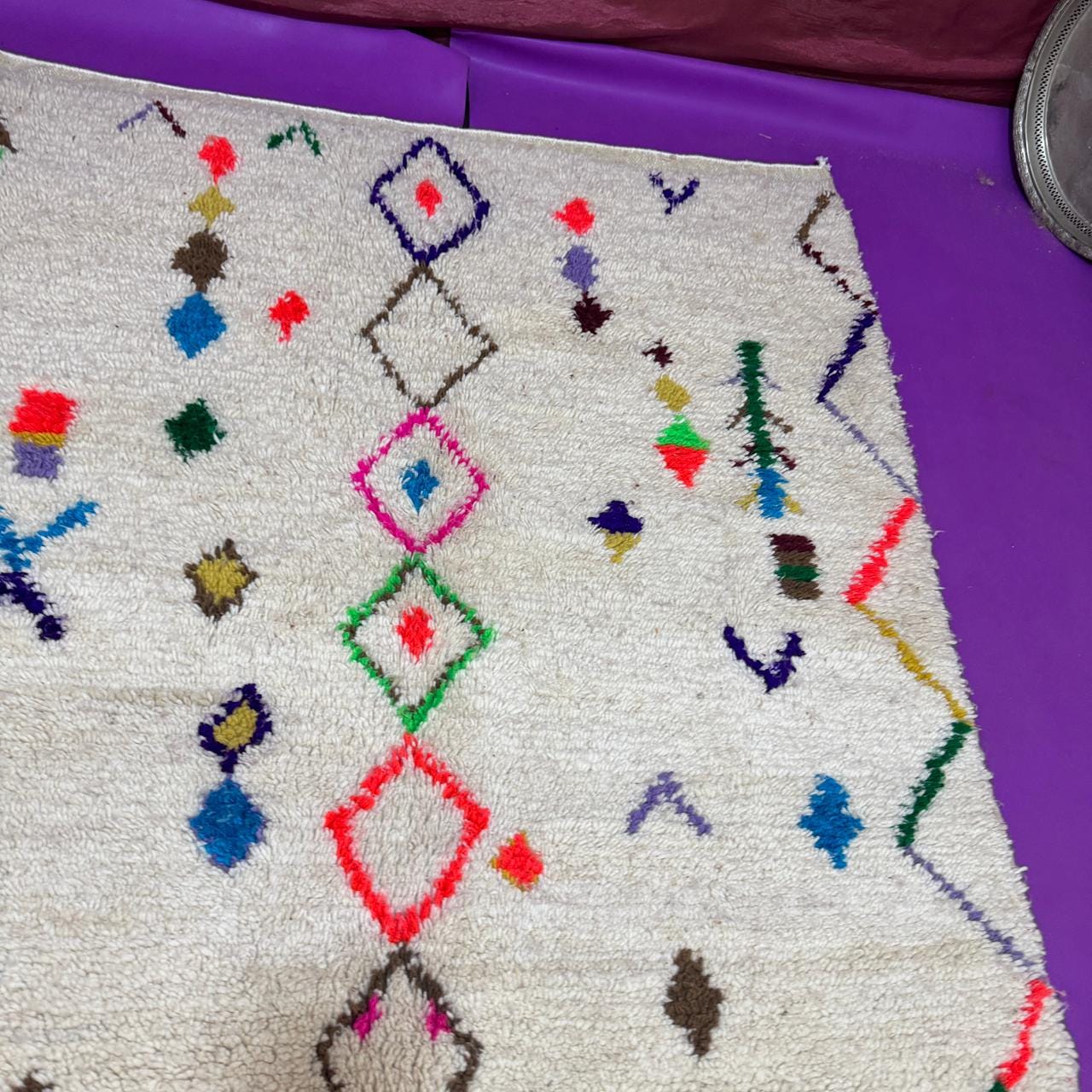 Funky Berber rug; Moroccan woolen carpet; Azilal Beni Ouarain style