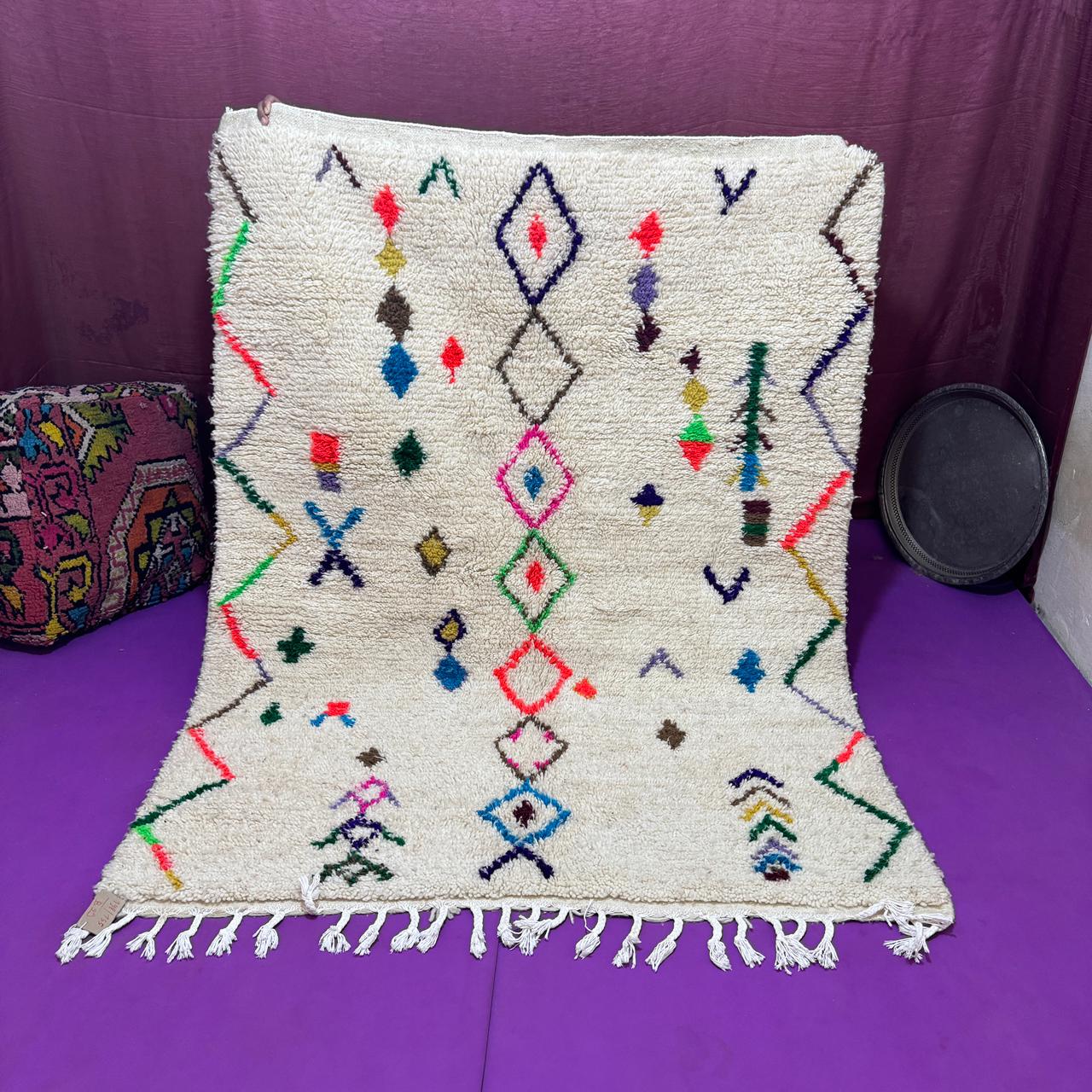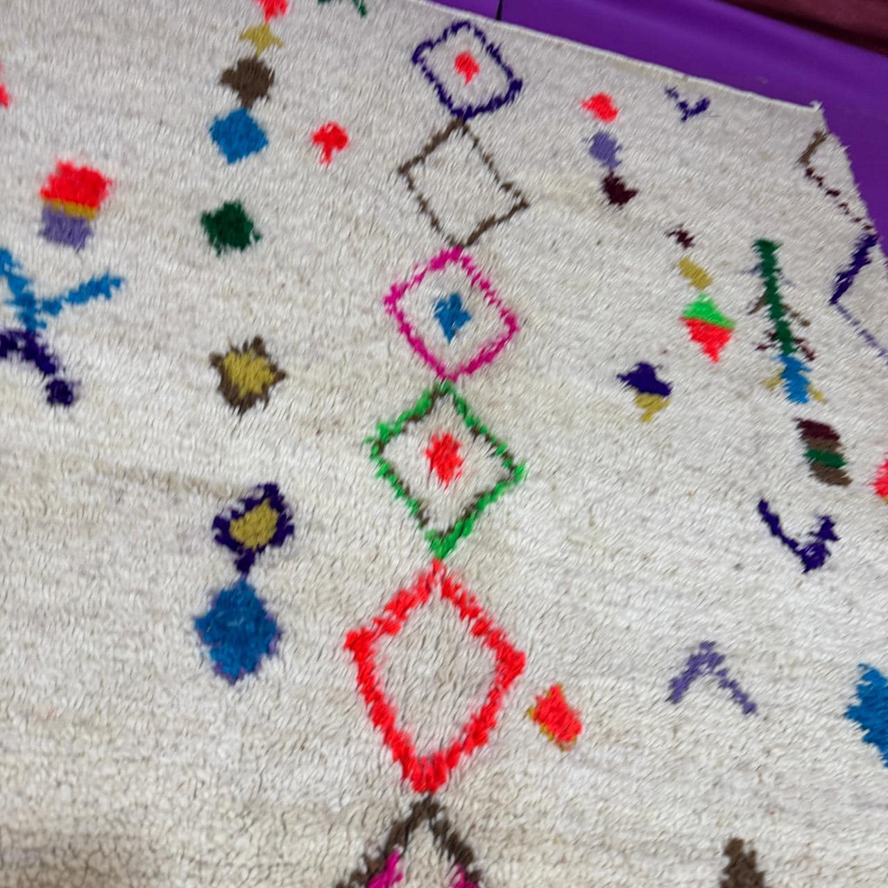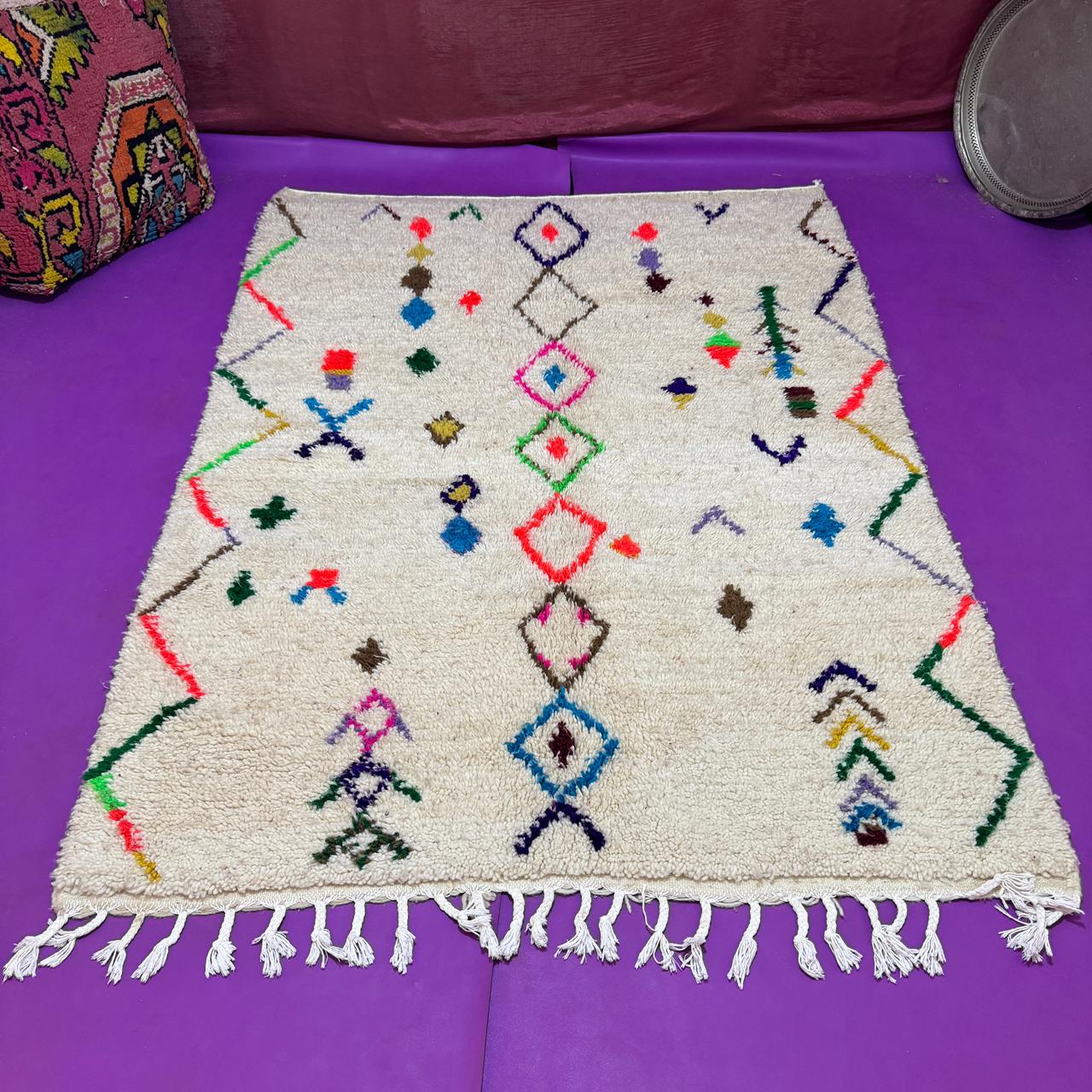 Funky Berber rug; Moroccan woolen carpet; Azilal Beni Ouarain style