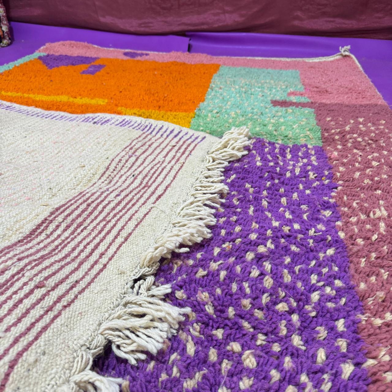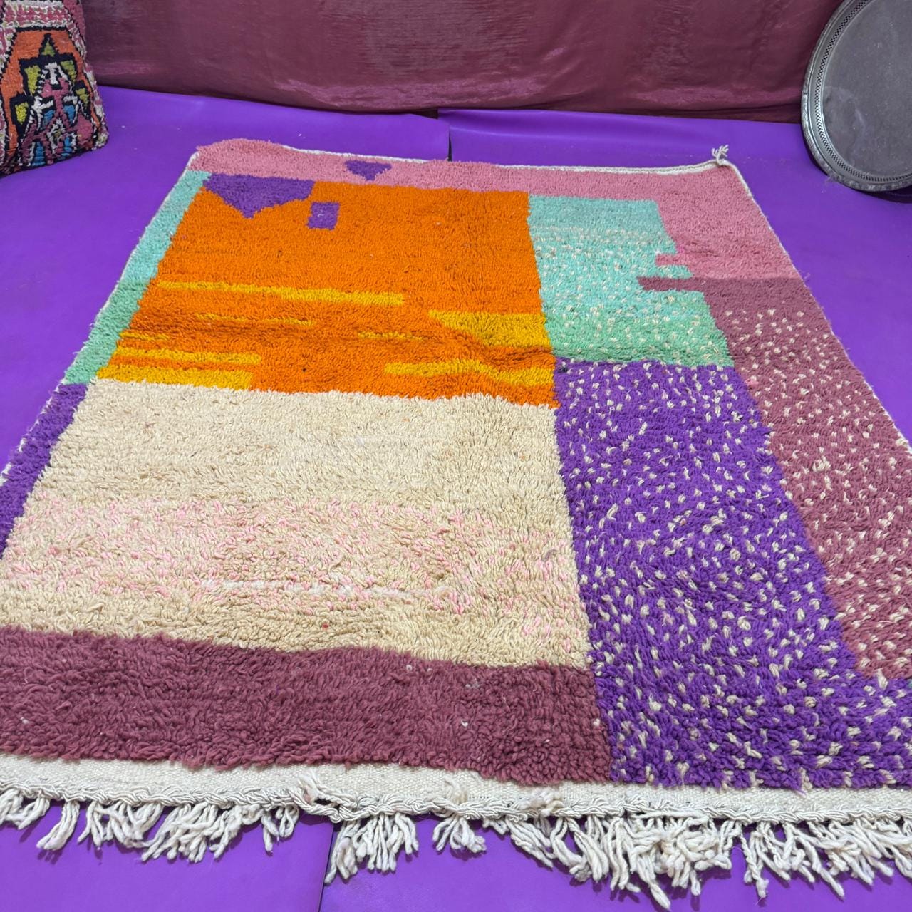 Azilal Rugs – Colorful, abstract tribal designs made with wool and natural dyes.