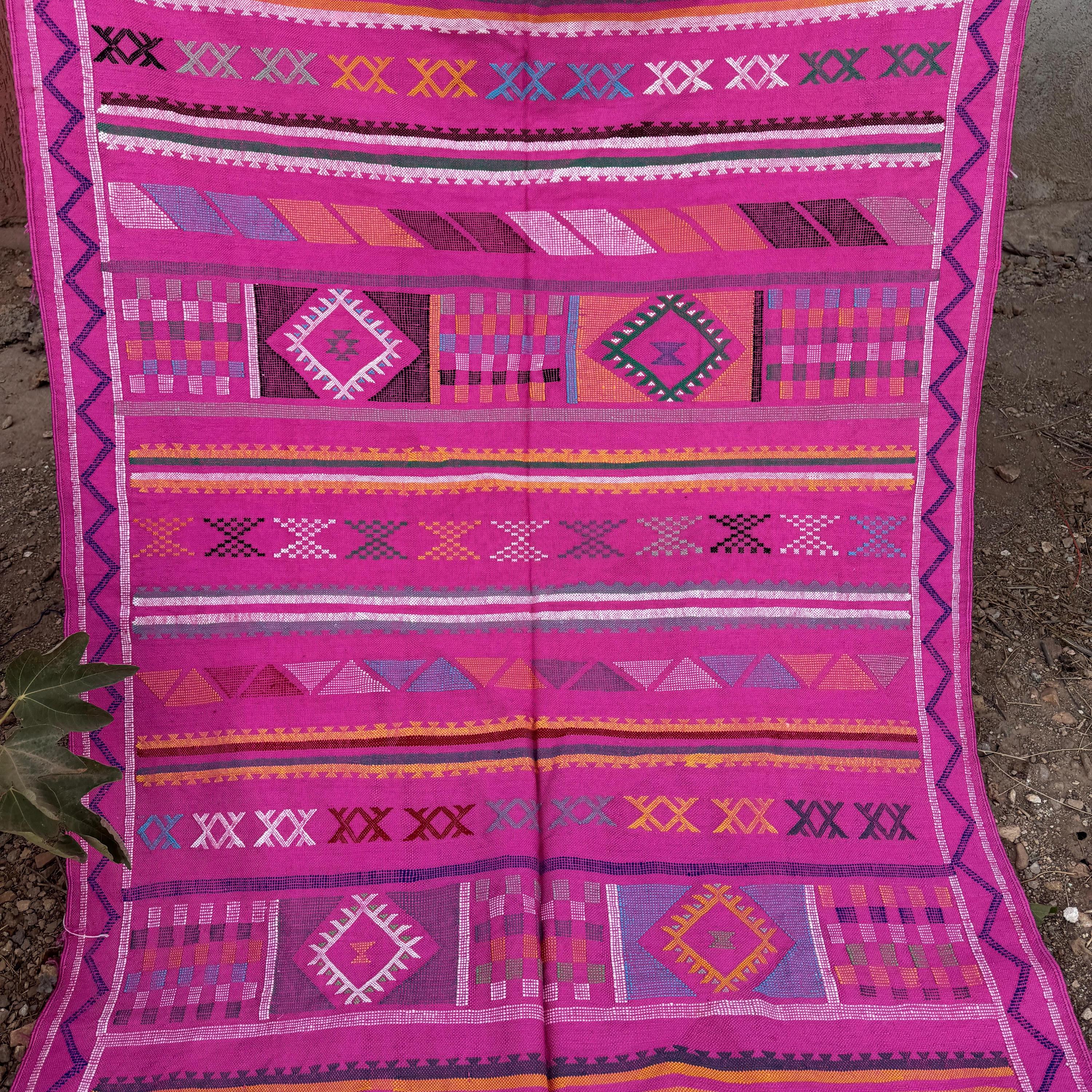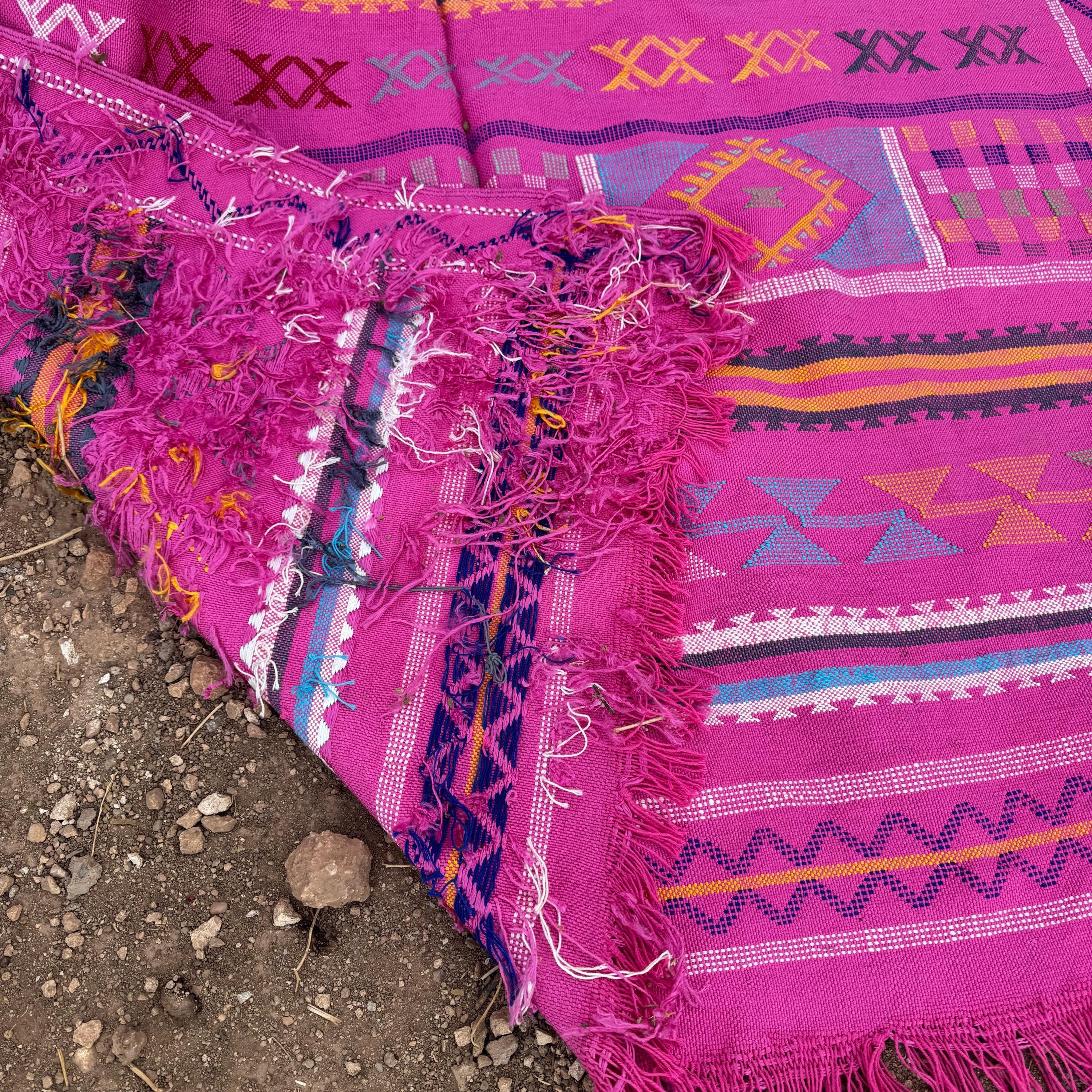 Handwoven Moroccan Kilim Rug - Sabra Silk Rug with Tribal Berber Patterns