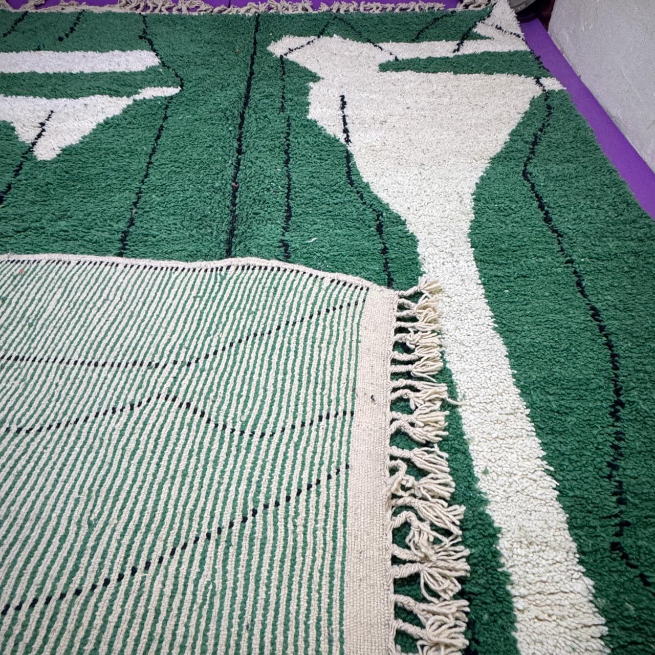 The Atlas rug is known for its Berber symbols and natural wool, featuring bold colors and free-flowing designs. The Ben Guerir rug is simple and elegant, while the Rabat rug is more classic and refined, often featuring geometric and floral designs.