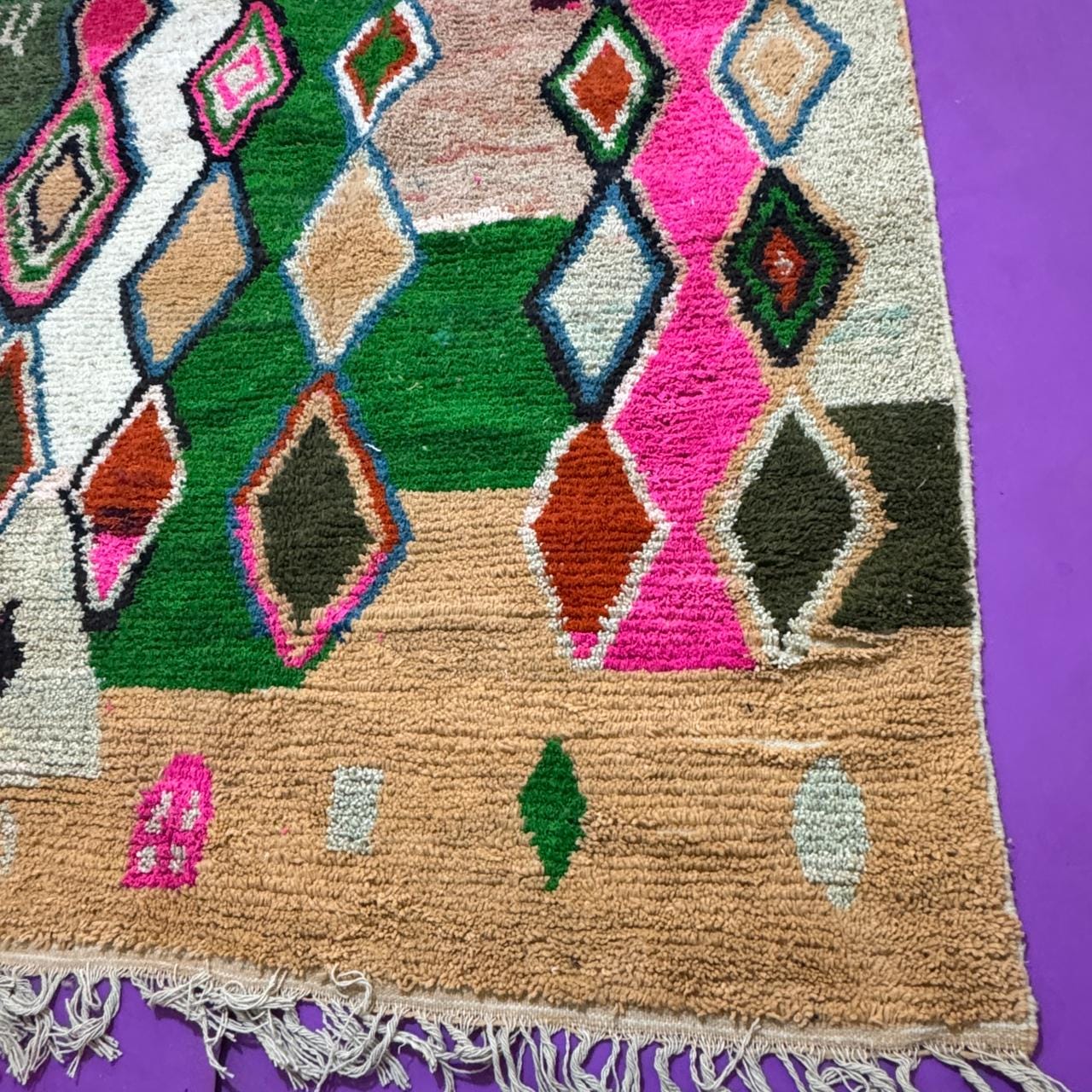 Traditional Moroccan rug decorated with geometric shapeHandwoven Pink Moroccan Rug ;Wool Berber Carpet with Vibrant Geometric Motifs