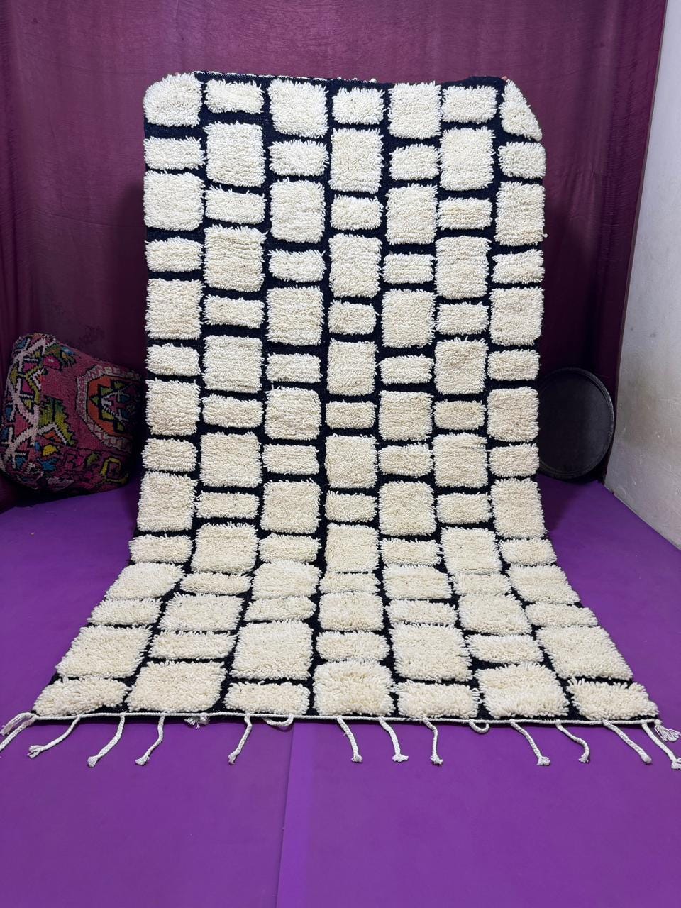 Handmade Beni Ourain Rug;Authentic Moroccan Wool Rug;Geometric Design