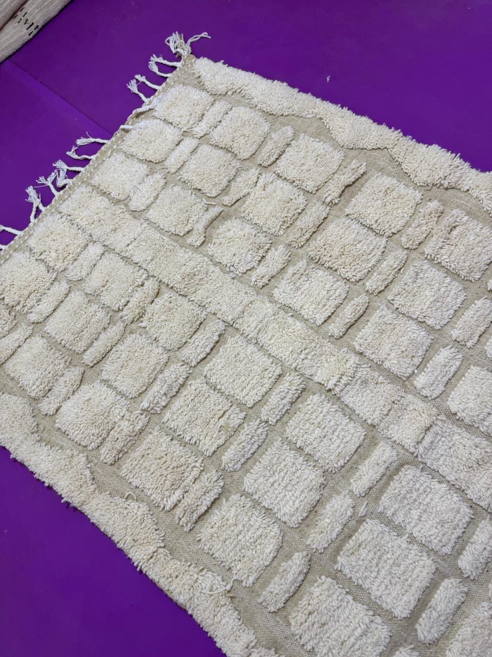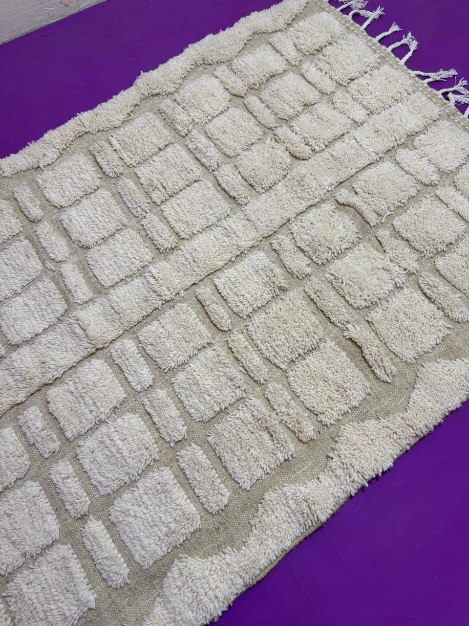 Beni Ourain Rugs – Classic ivory and black wool rugs, known for their thick pile and geometric simplicity.