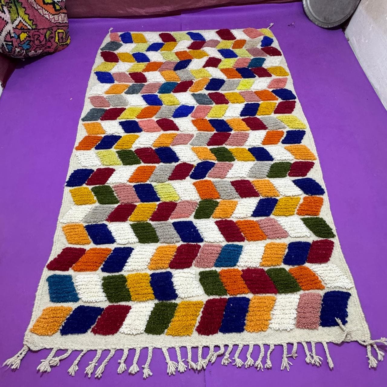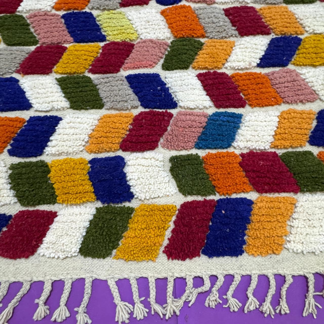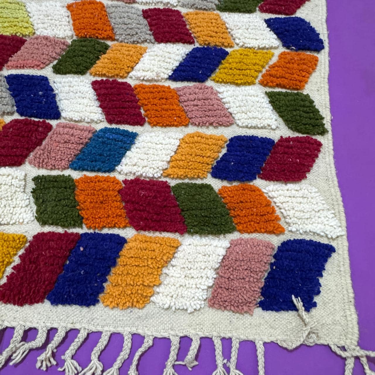 Azilal Rugs – Colorful, abstract tribal designs made with wool and natural dyes.