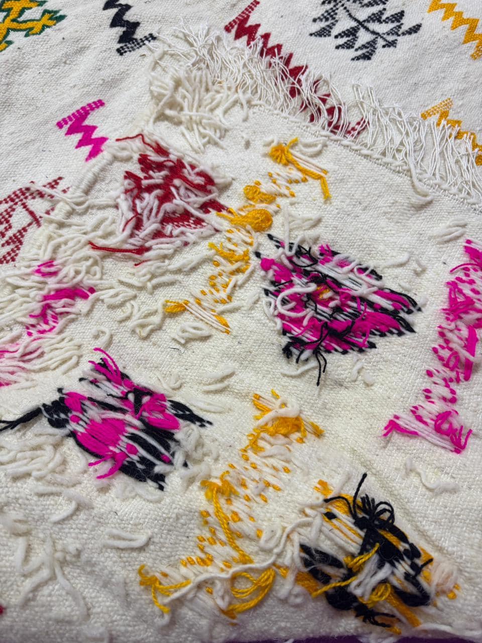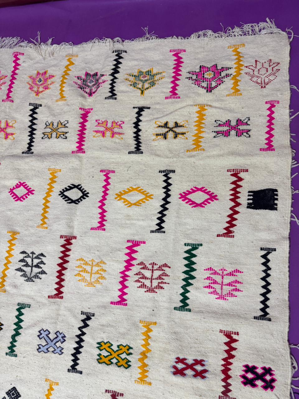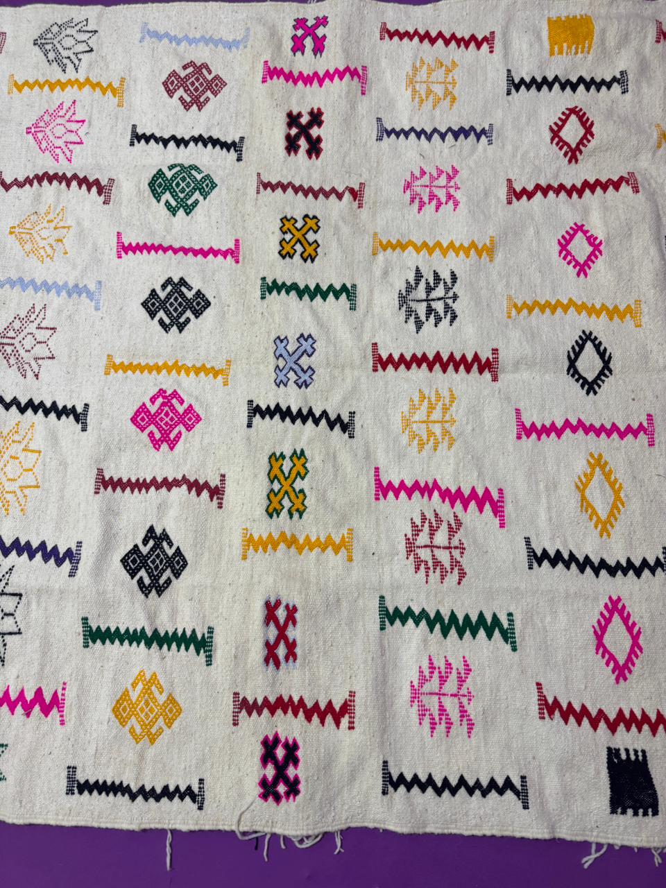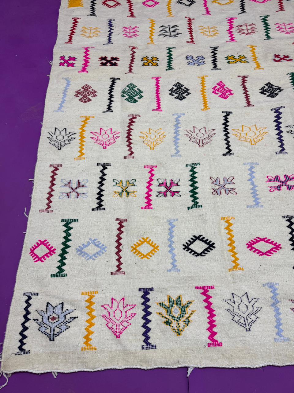 Handmade Moroccan Berber Rug ;Cream Wool Carpet with Colorful Amazigh Symbols ;Boho Decor ;Authentic Handwoven Moroccan Rug