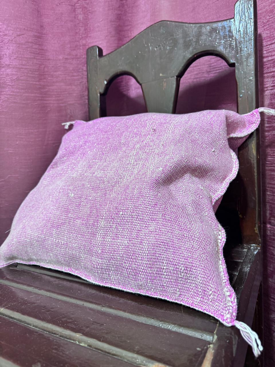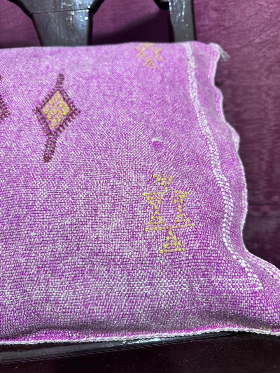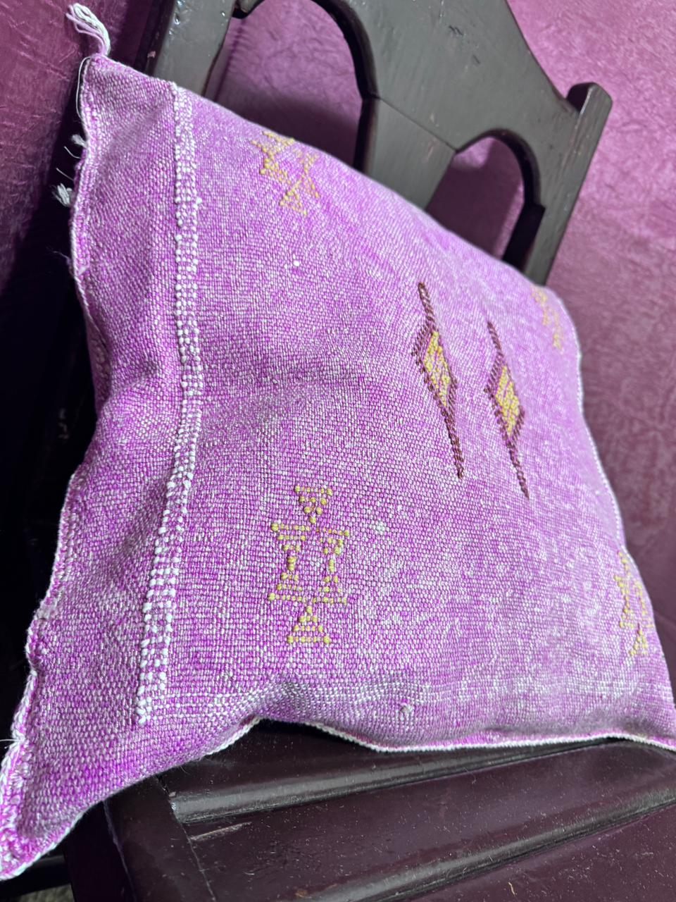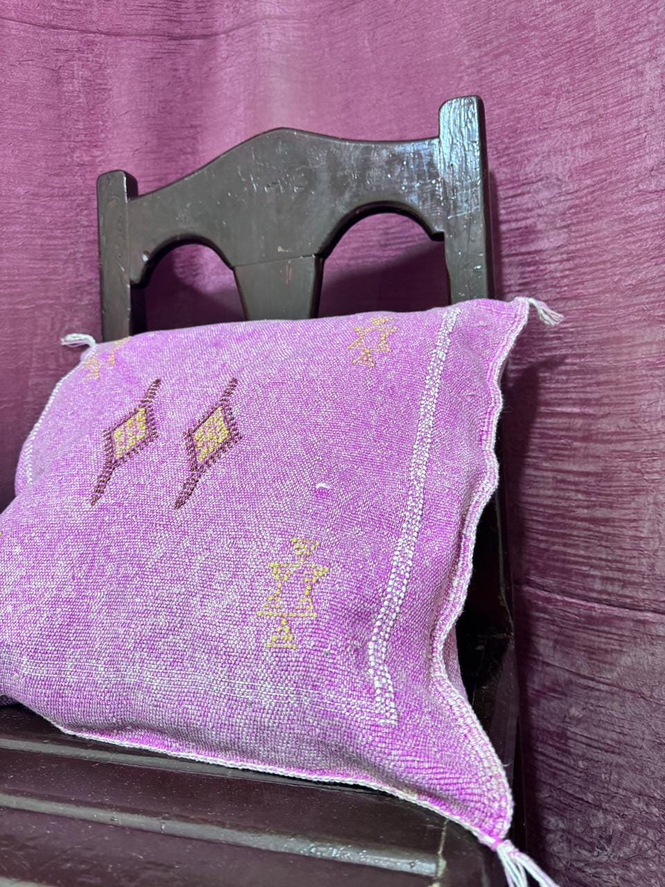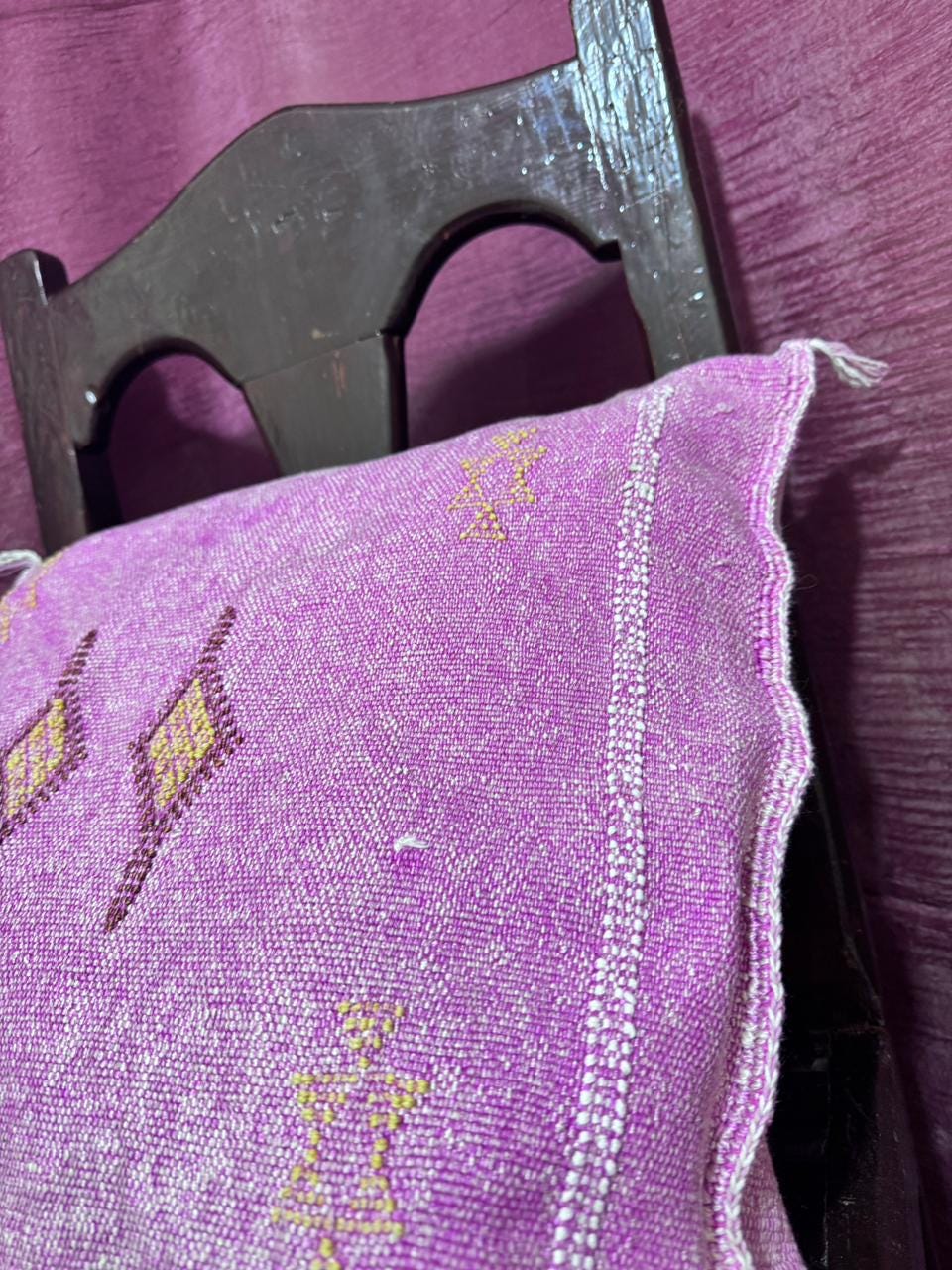A luxurious Moroccan cushion crafted from cactus silk (sabra silk), meticulously handwoven by local artisans in Morocco. This unique piece, a must-have among many modern, conservative cushions, adds a touch of warmth and comfort to your weekend.