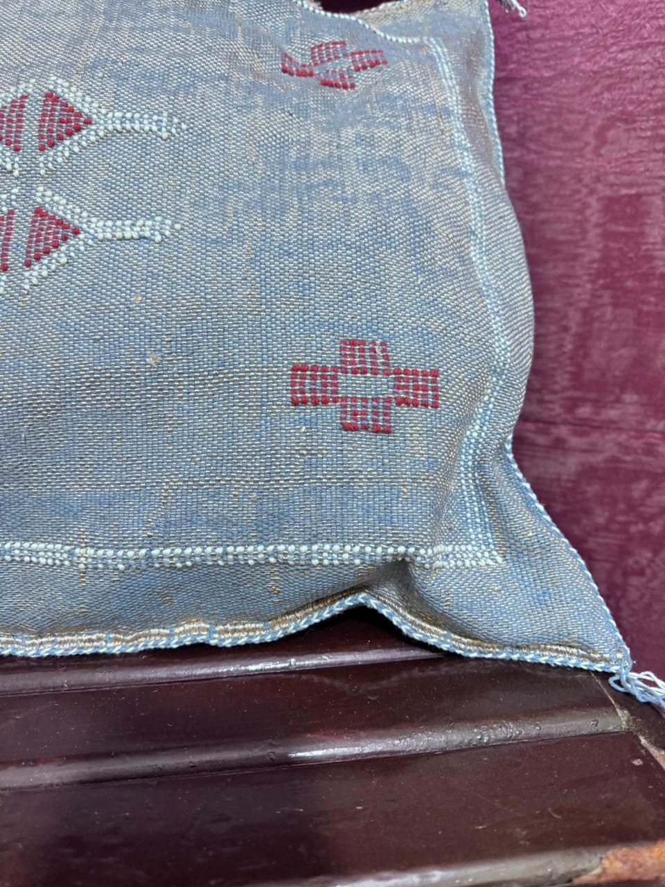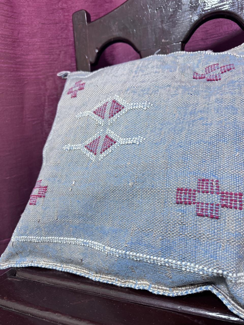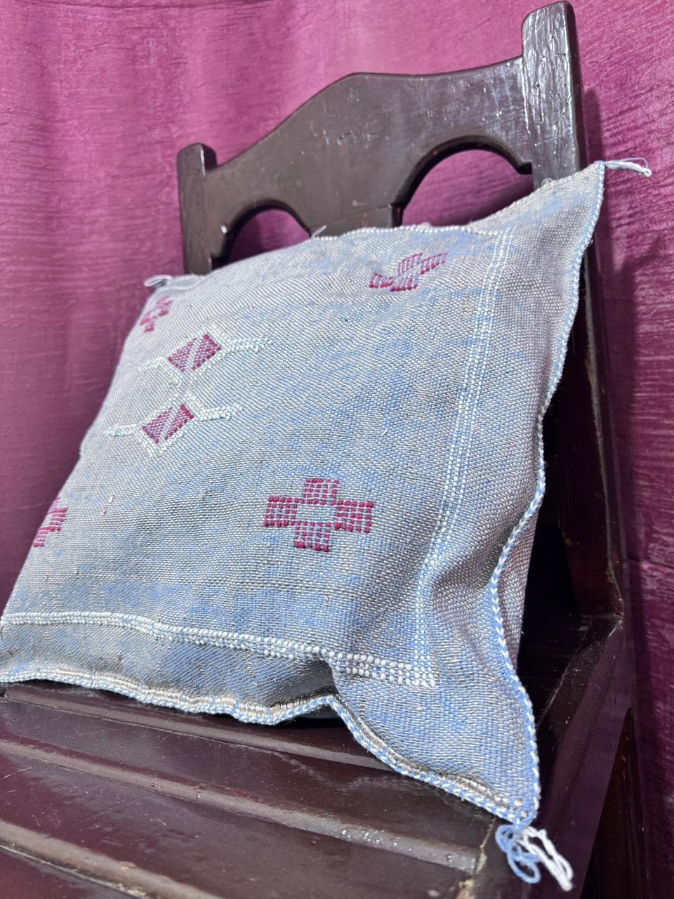 A luxurious Moroccan cushion crafted from cactus silk (sabra silk), meticulously handwoven by local artisans in Morocco. This unique piece, a must-have among many modern, conservative cushions, adds a touch of warmth and comfort to your weekend.