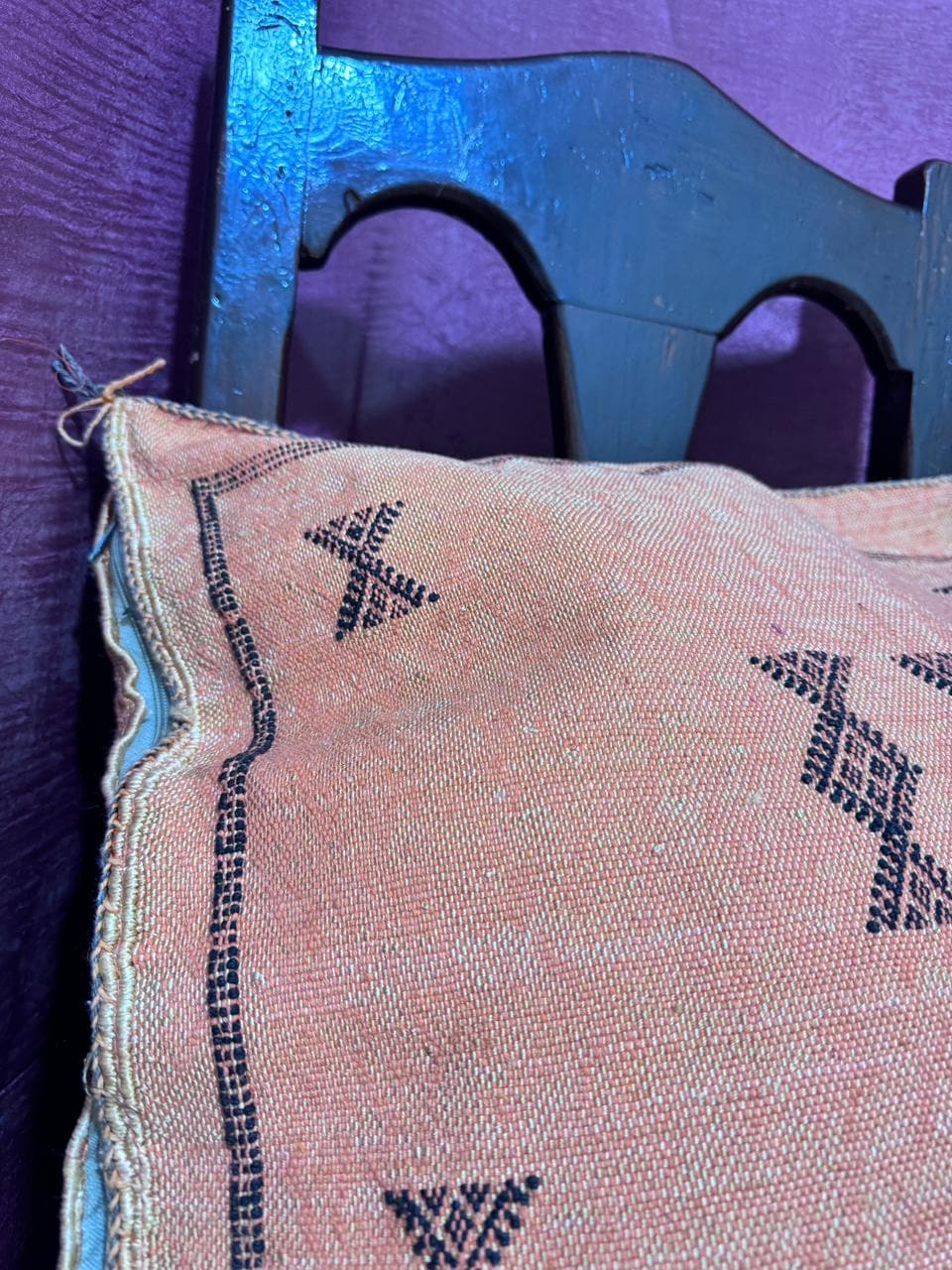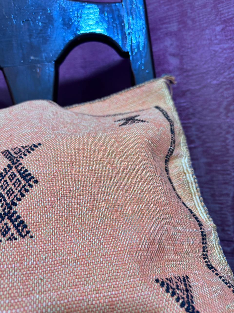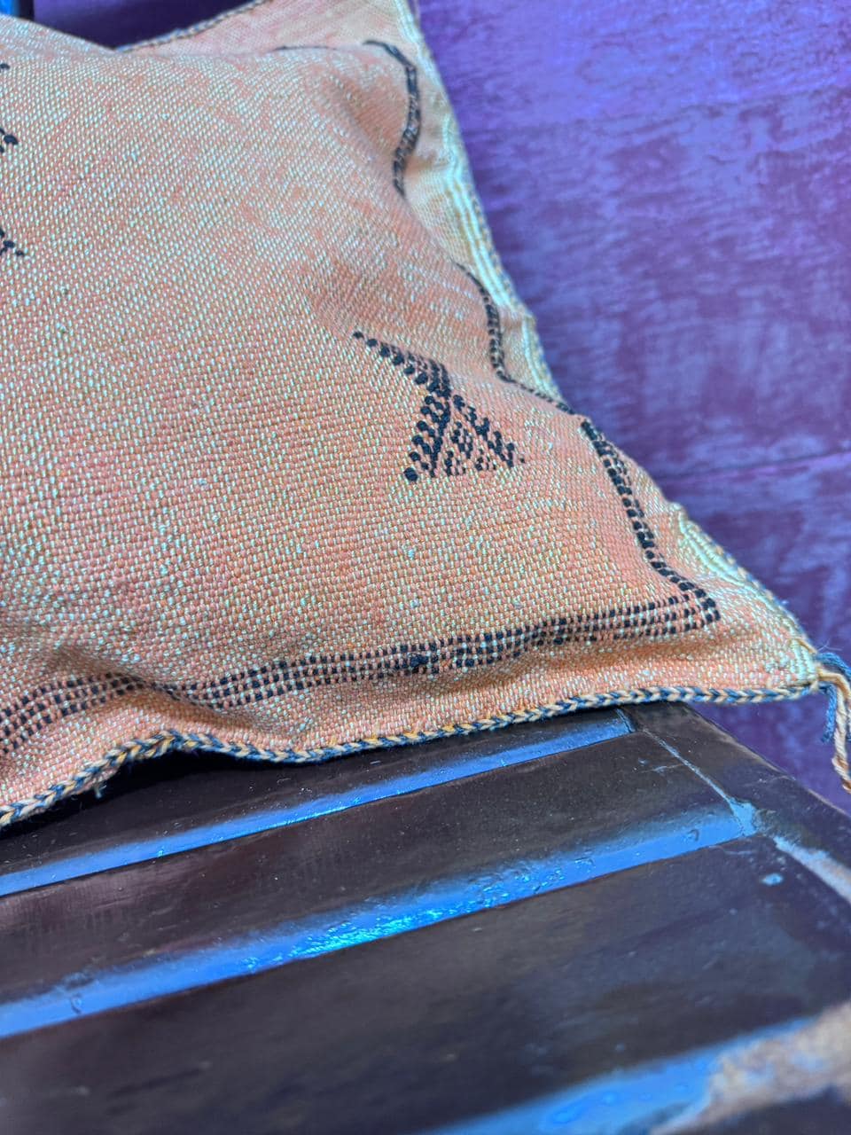 A luxurious Moroccan cushion crafted from cactus silk (sabra silk), meticulously handwoven by local artisans in Morocco. This unique piece, a must-have among many modern, conservative cushions, adds a touch of warmth and comfort to your weekend.
