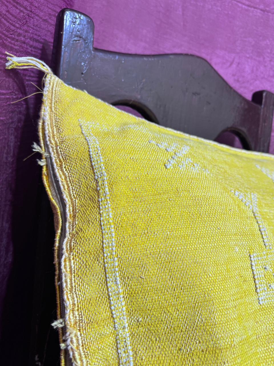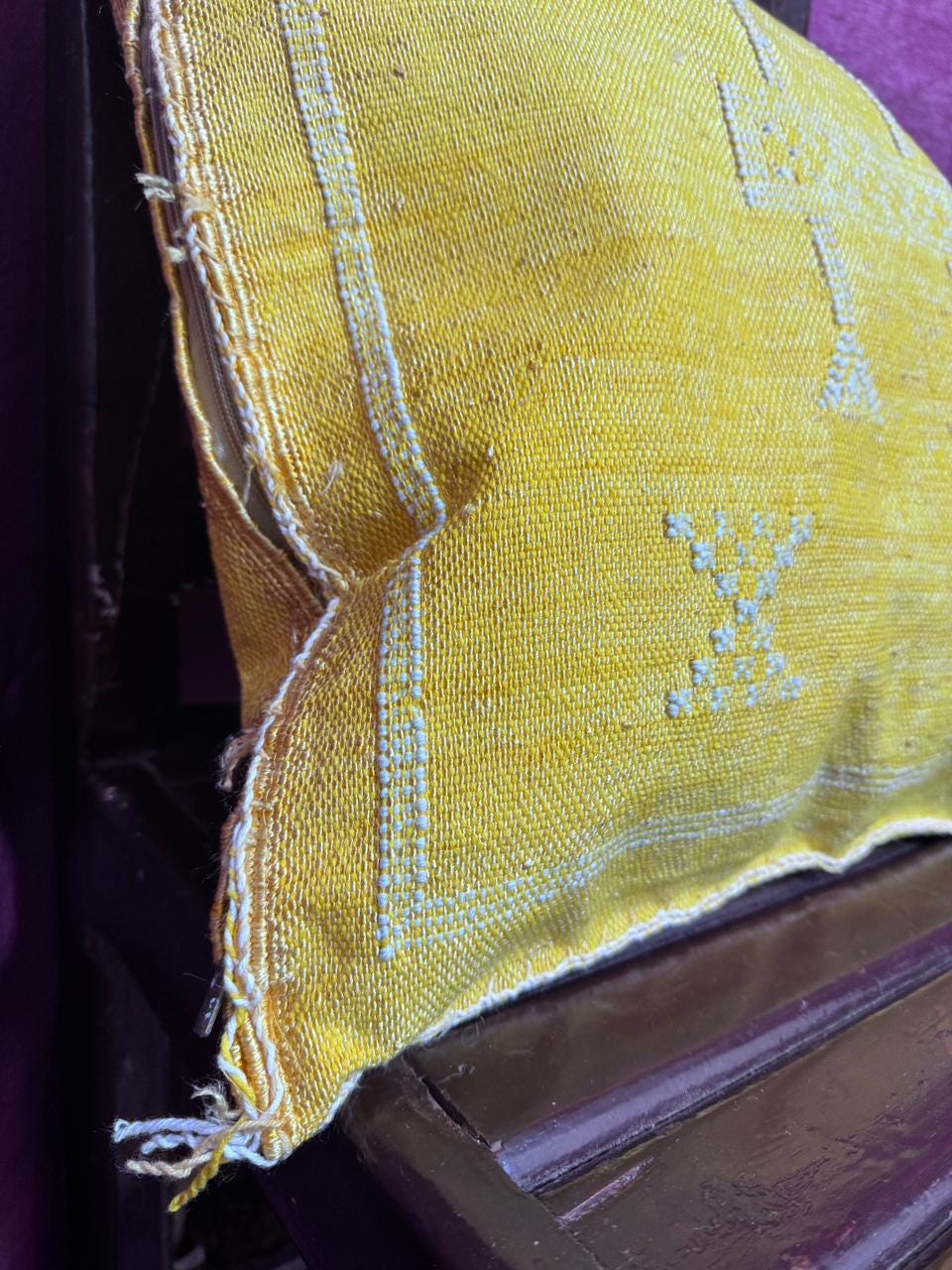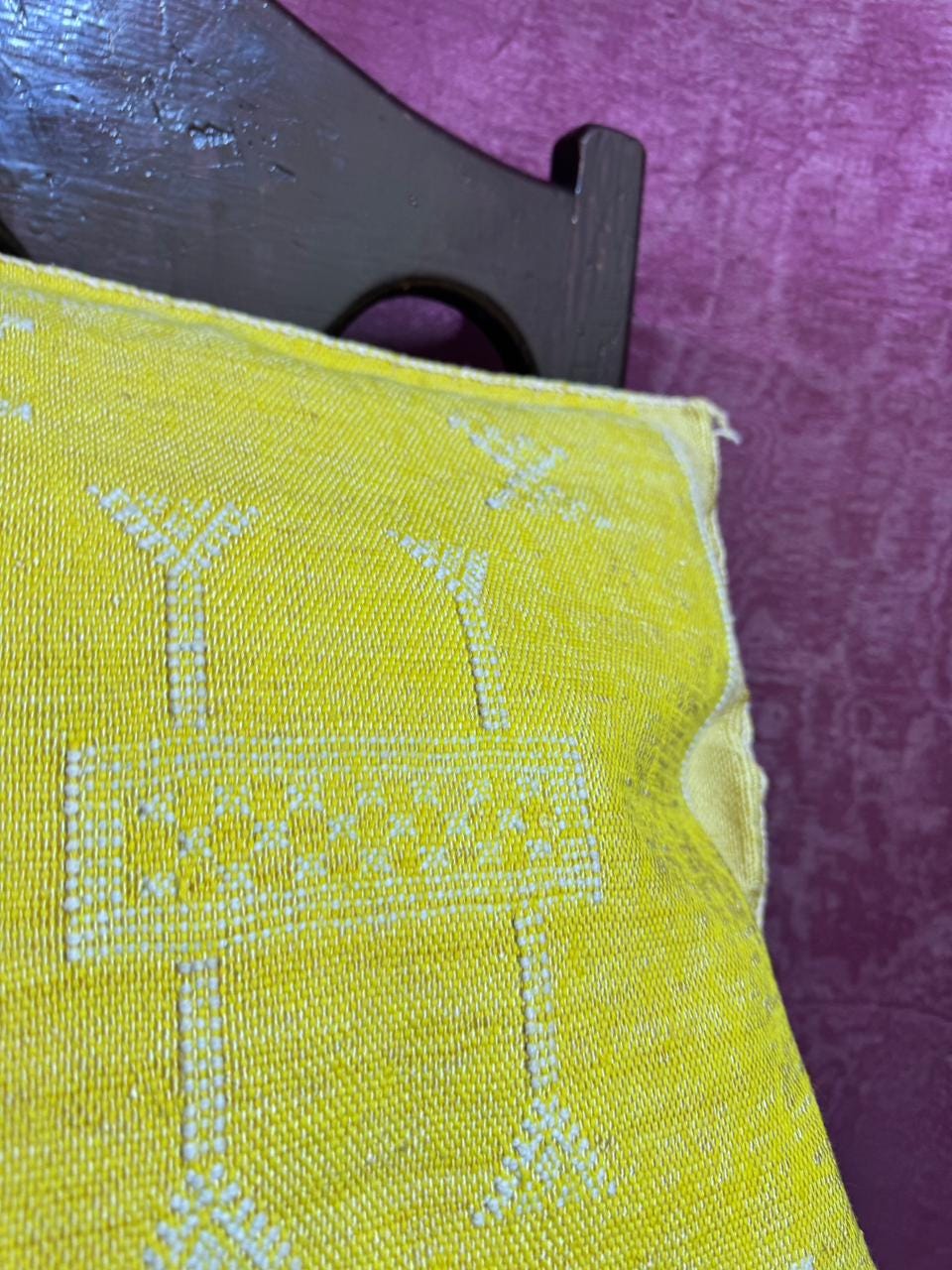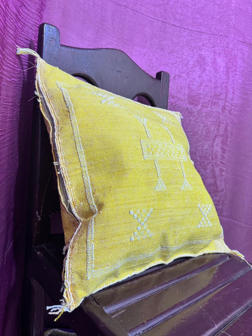 A luxurious Moroccan cushion crafted from cactus silk (sabra silk), meticulously handwoven by local artisans in Morocco. This unique piece, a must-have among many modern, conservative cushions, adds a touch of warmth and comfort to your weekend.