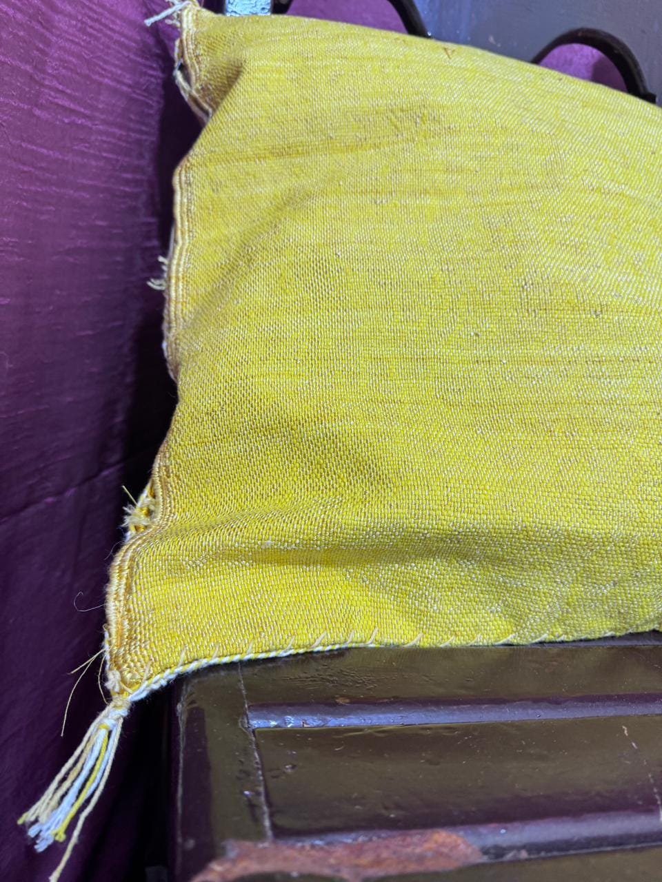 Each cushion is handwoven and dyed using natural plant-based dyes, making each piece a unique individual with natural variations in size, color tone, and pattern—a testament to authentic craftsmanship.