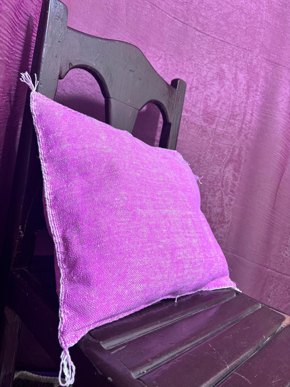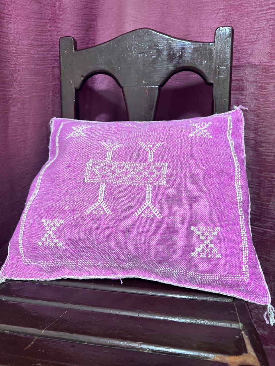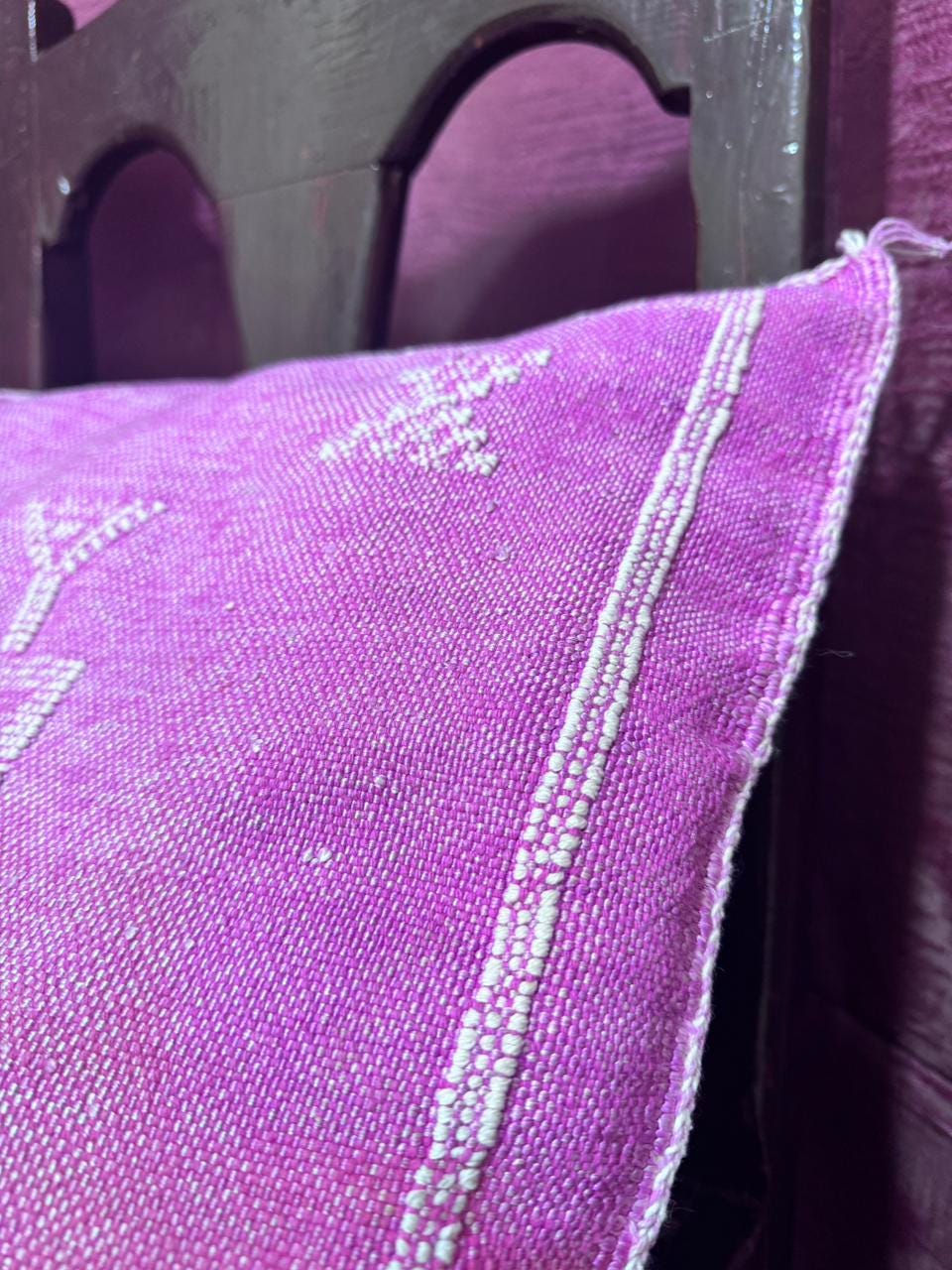 A luxurious Moroccan cushion crafted from cactus silk (sabra silk), meticulously handwoven by local artisans in Morocco. This unique piece, a must-have among many modern, conservative cushions, adds a touch of warmth and comfort to your weekend.