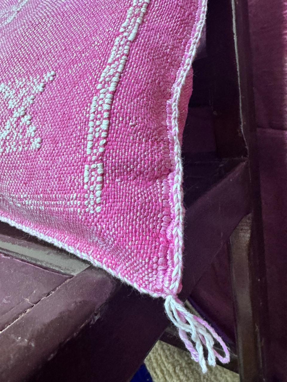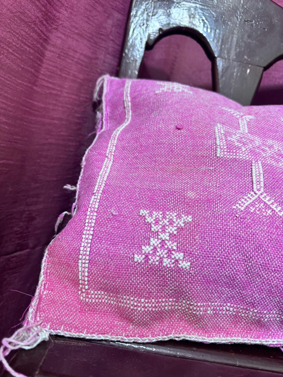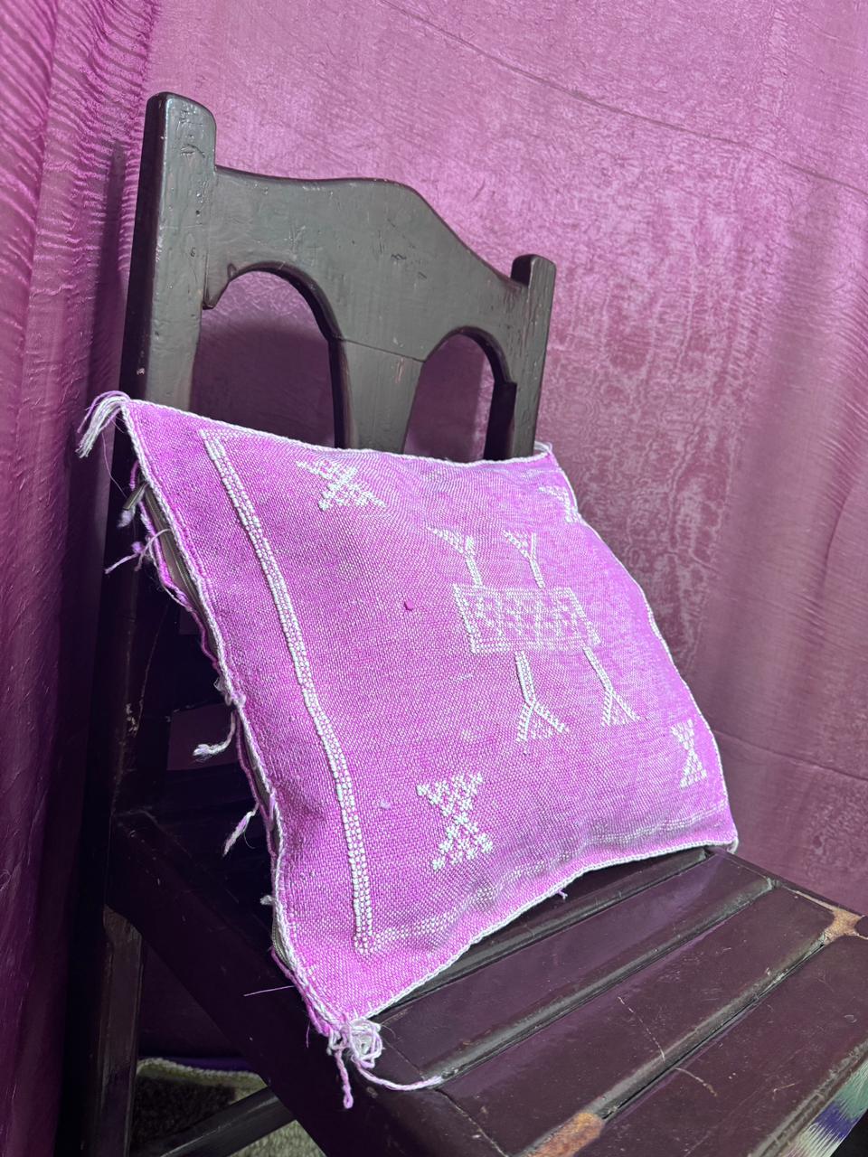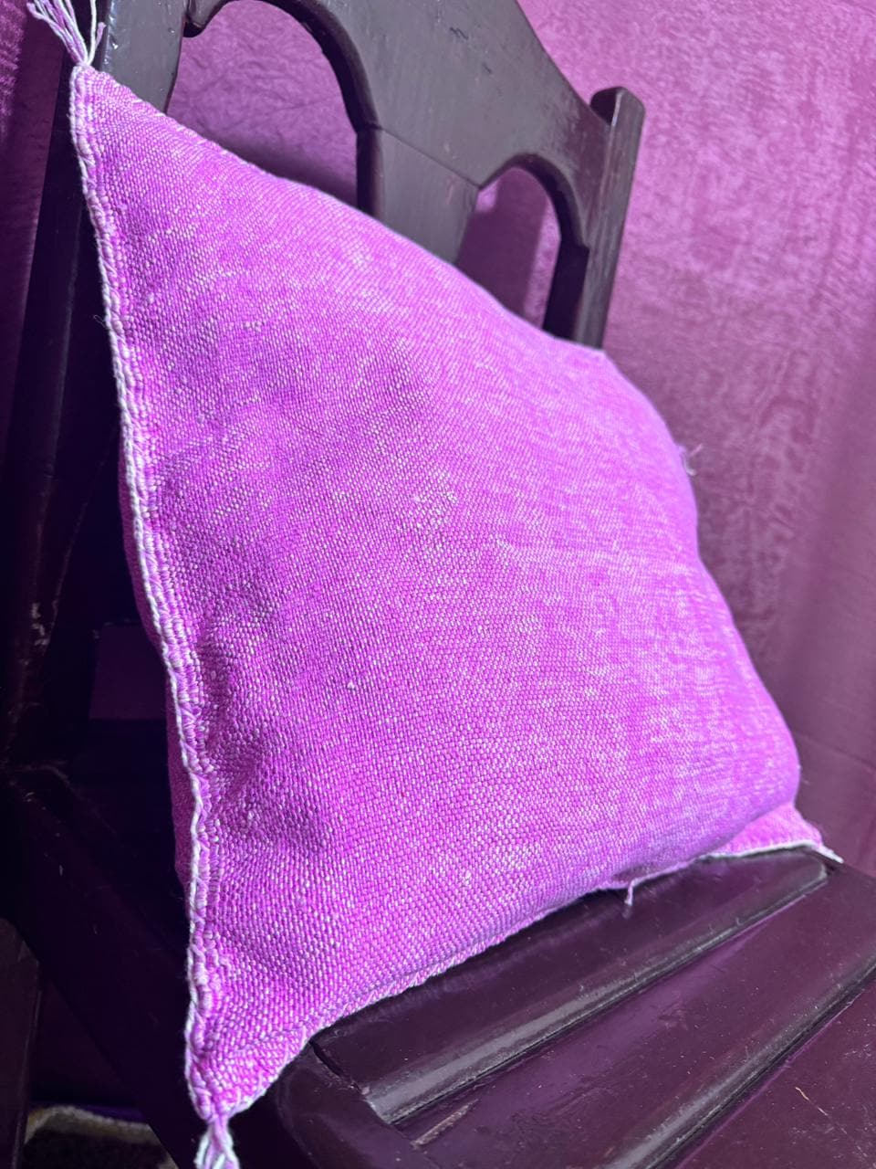 A luxurious Moroccan cushion crafted from cactus silk (sabra silk), meticulously handwoven by local artisans in Morocco. This unique piece, a must-have among many modern, conservative cushions, adds a touch of warmth and comfort to your weekend.