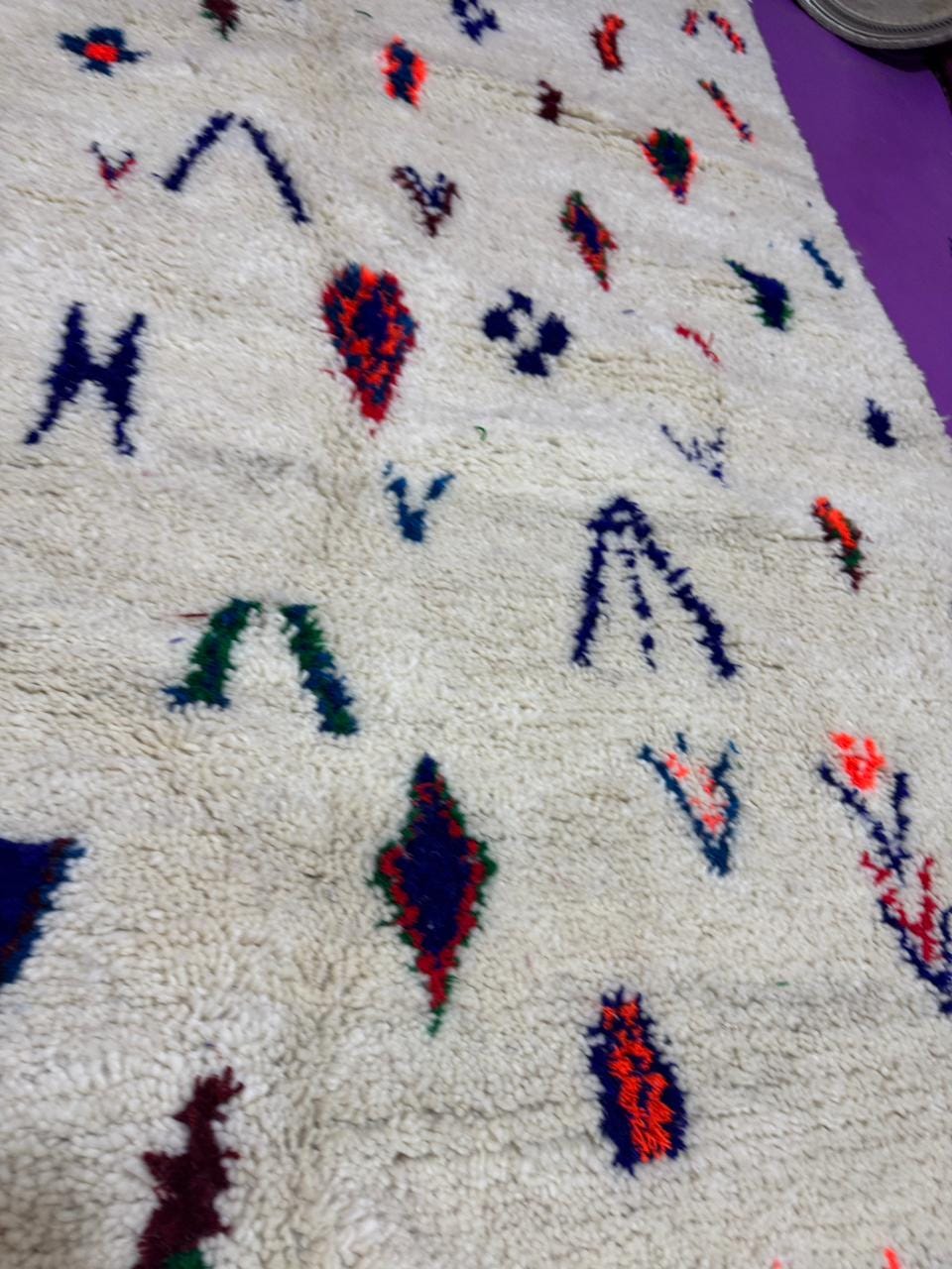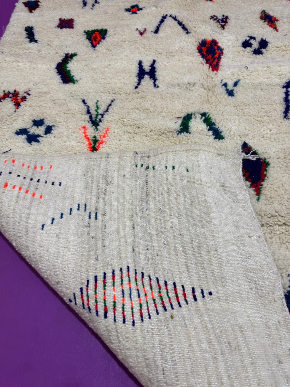 Handmade Berber Wool Rug;Beni Ouarain Style Moroccan Carpet