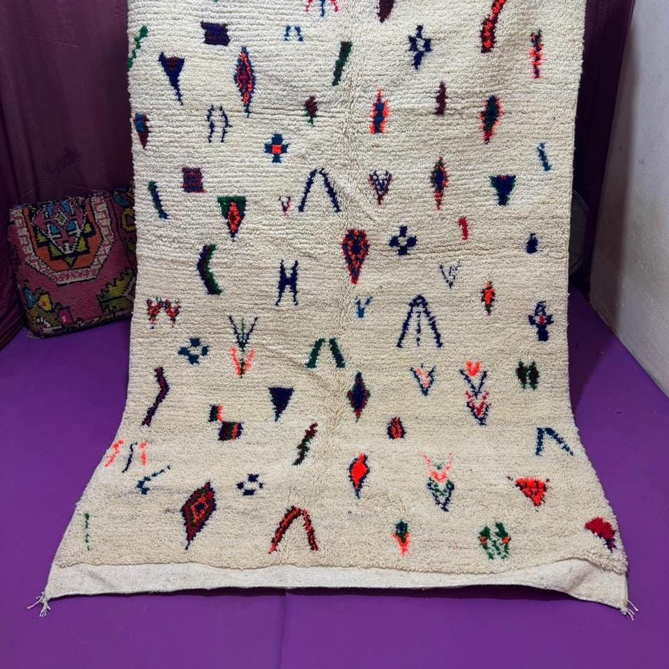 Beni Ourain Rugs – Classic ivory and black wool rugs, known for their thick pile and geometric simplicity.