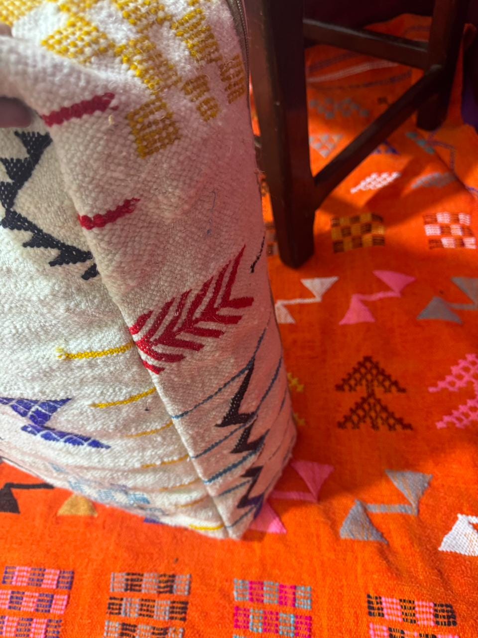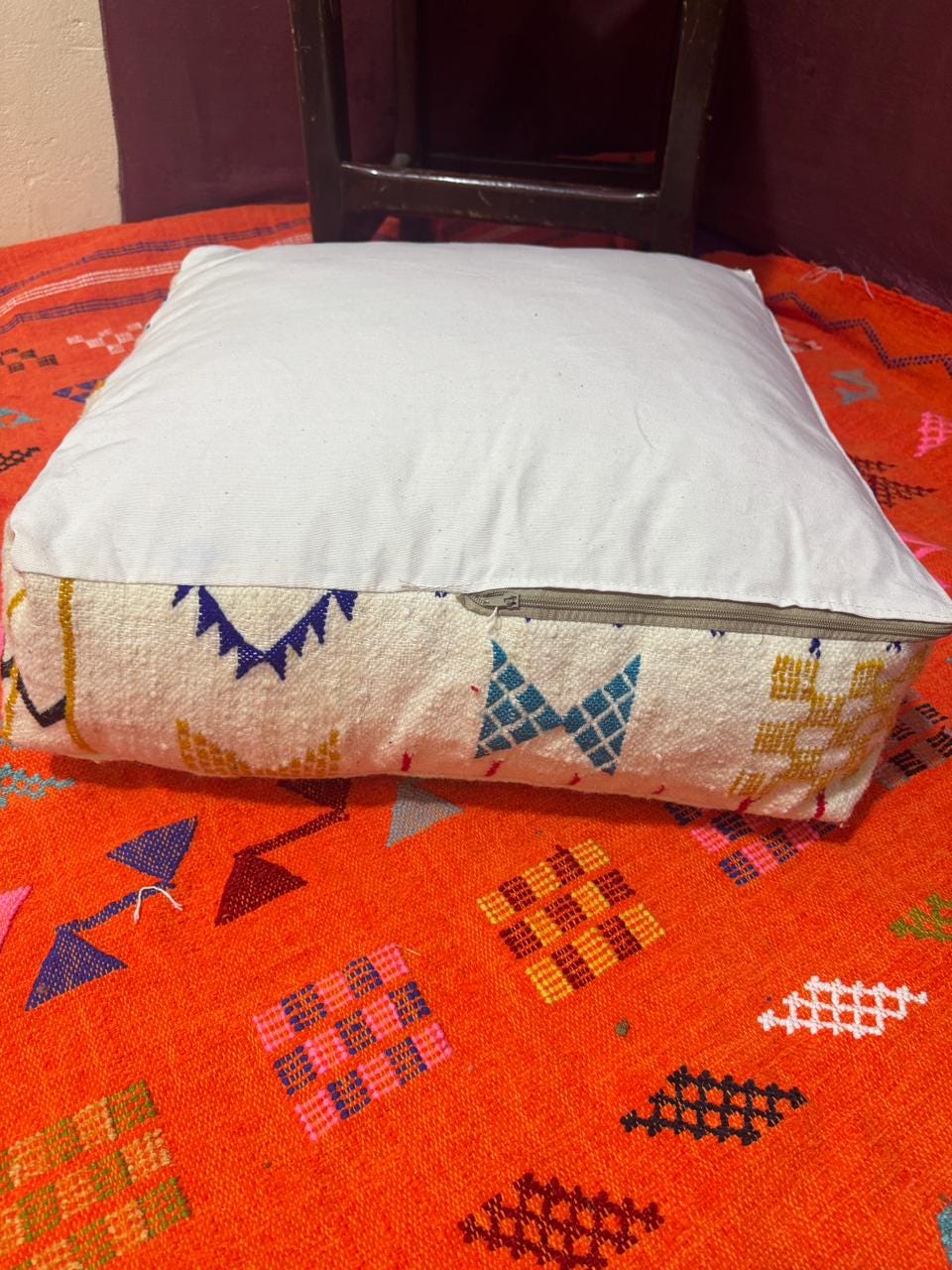 The Moroccan Kilim Pouf is truly a type of haute couture decor that has deep and intrinsic value both historically as well as culturally. These handcrafted poufs and floor cushions, by Berber artisans are known not only for their handmade work but also as cultural statements in each piece. Typically symbolizes protection, fertility and prosperity; these symbols is like telling a story makes each piece unique making an interesting character in every room.