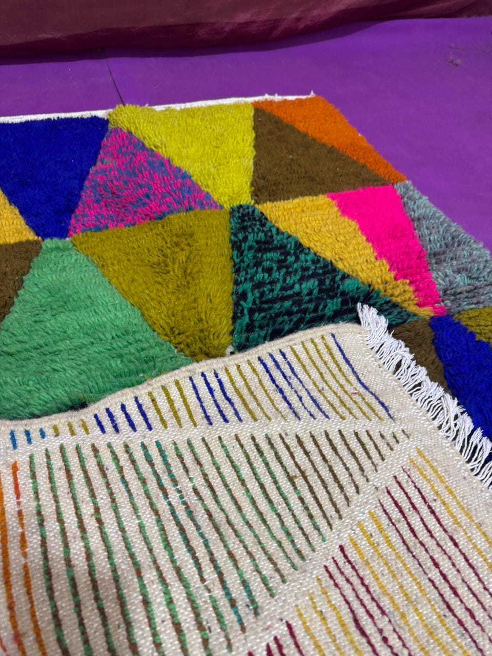Boucherouite Rugs – Eco-friendly rugs made from recycled textiles in vivid colors and textures.
