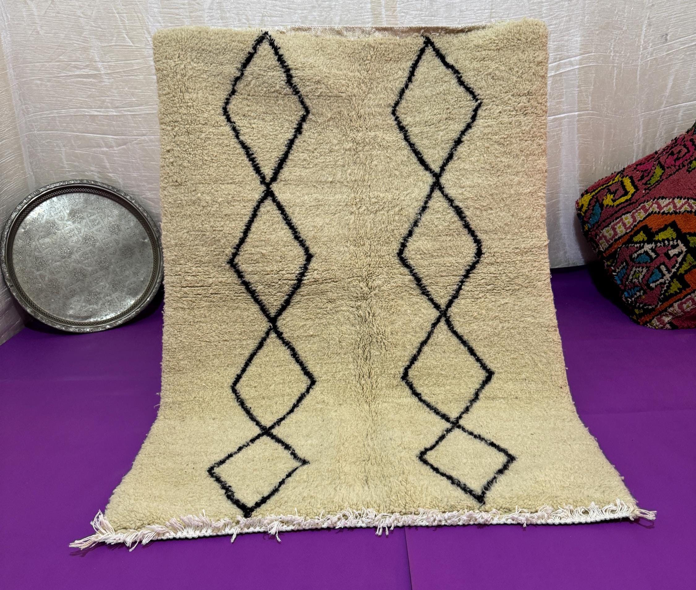 Beni Ourain Rugs – Classic ivory and black wool rugs, known for their thick pile and geometric simplicity.