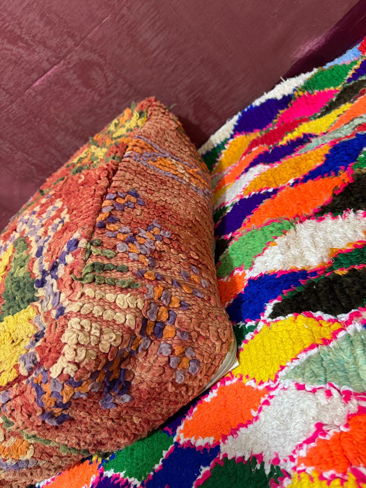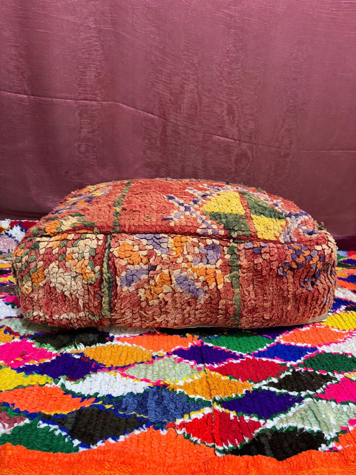 Each pouf is unique and reflects the heritage of Moroccan craftsmanship. The soft, durable wool ensures comfort and long-lasting use.