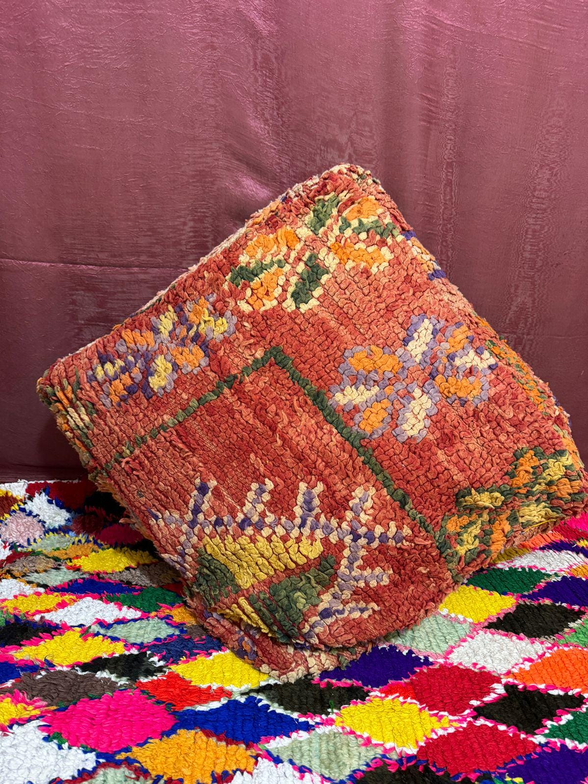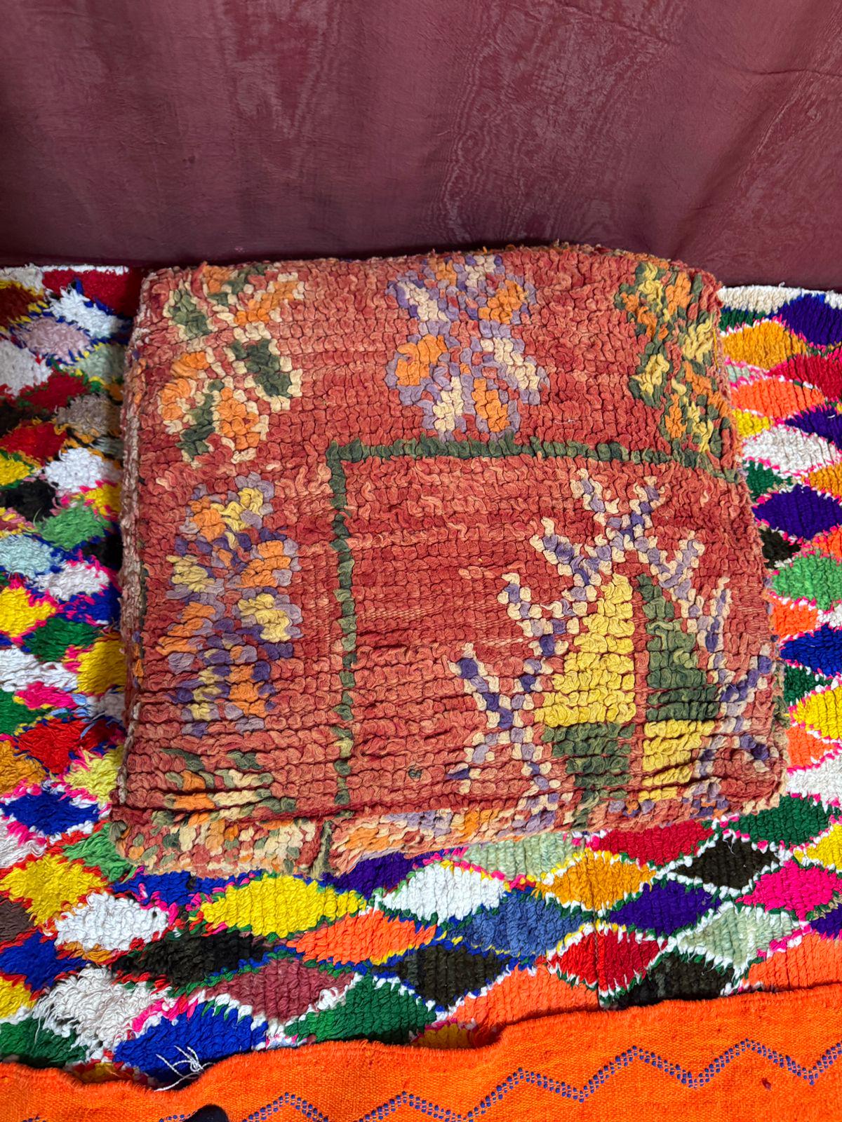 Vintage Moroccan Pouf Cover;Moroccan Kilim Pouf;Moroccan Floor cushion
