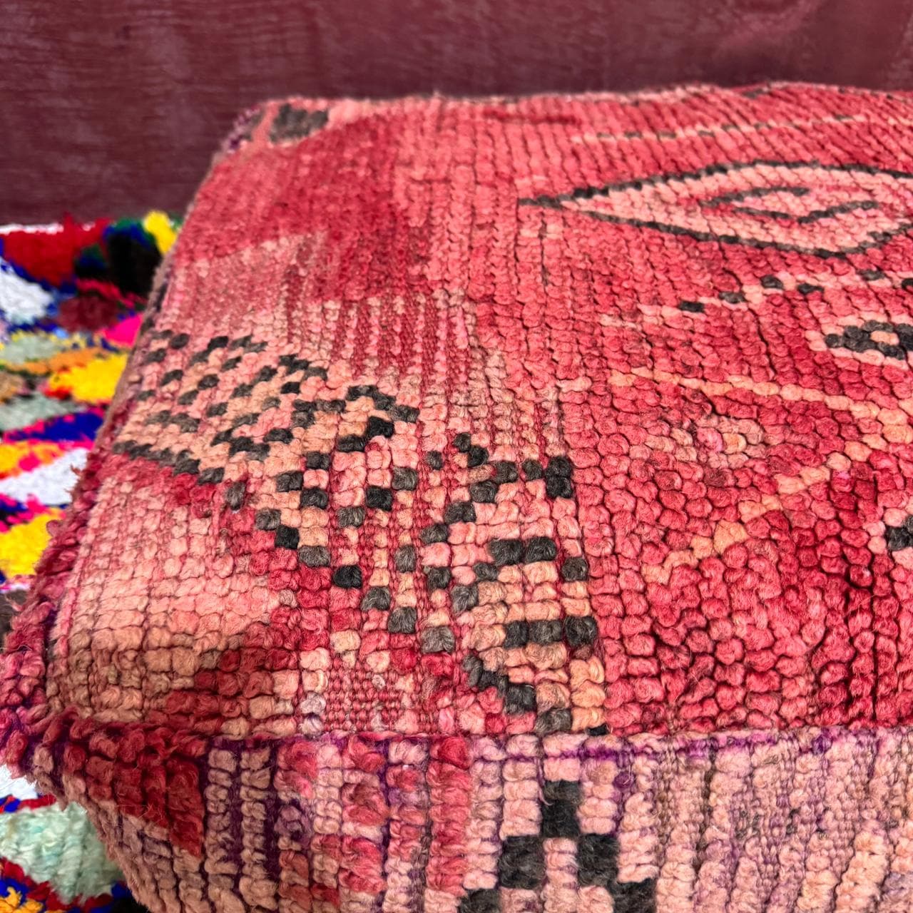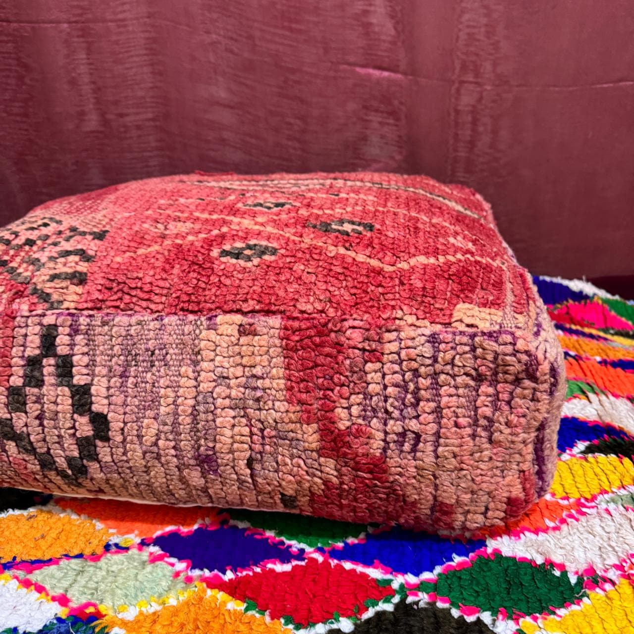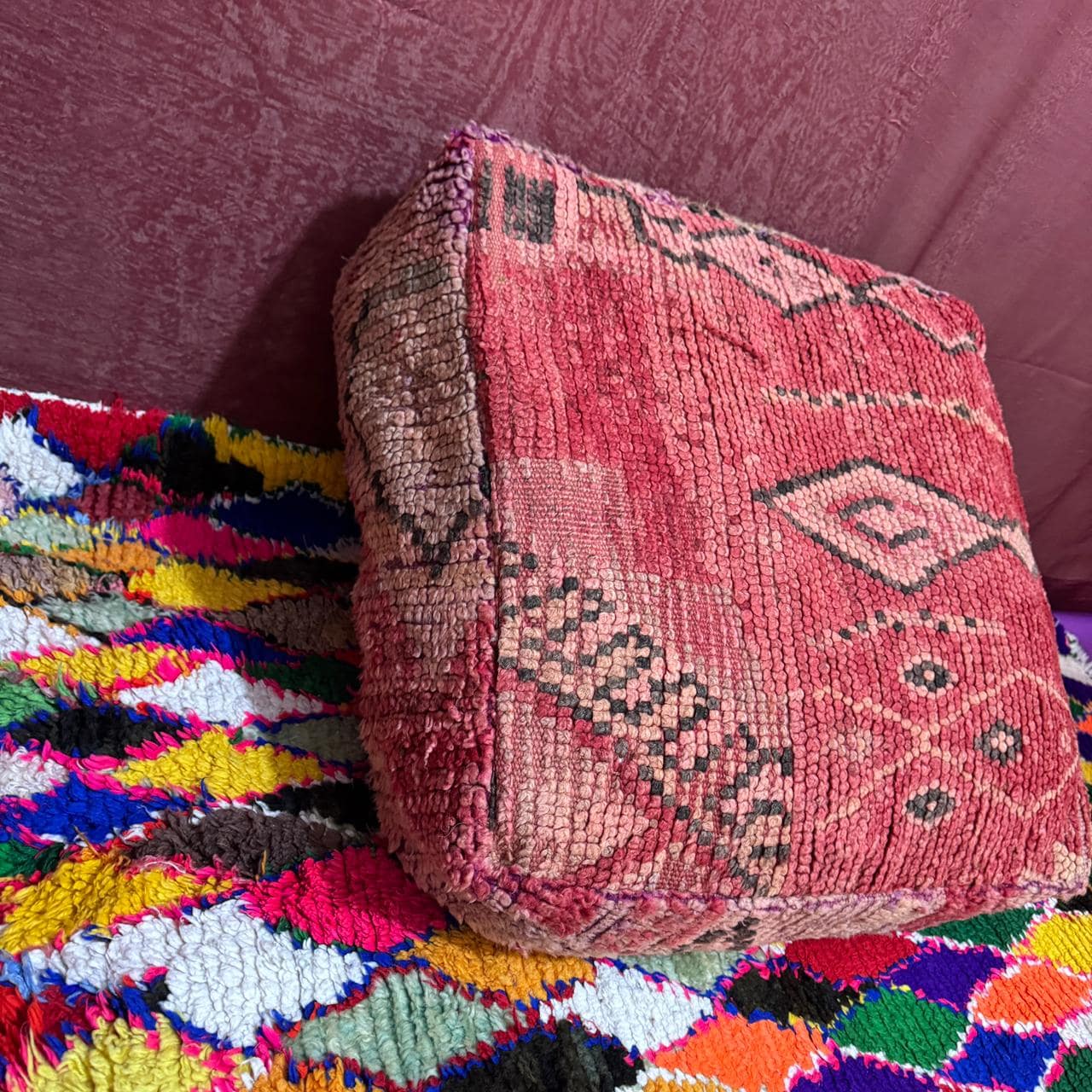 Beni ouarin square pouf;outdoor kilm pouf;Yoga meditation, kilm pouf Multi Color;Vintage Moroccan Ottoman;Meditation Cushion