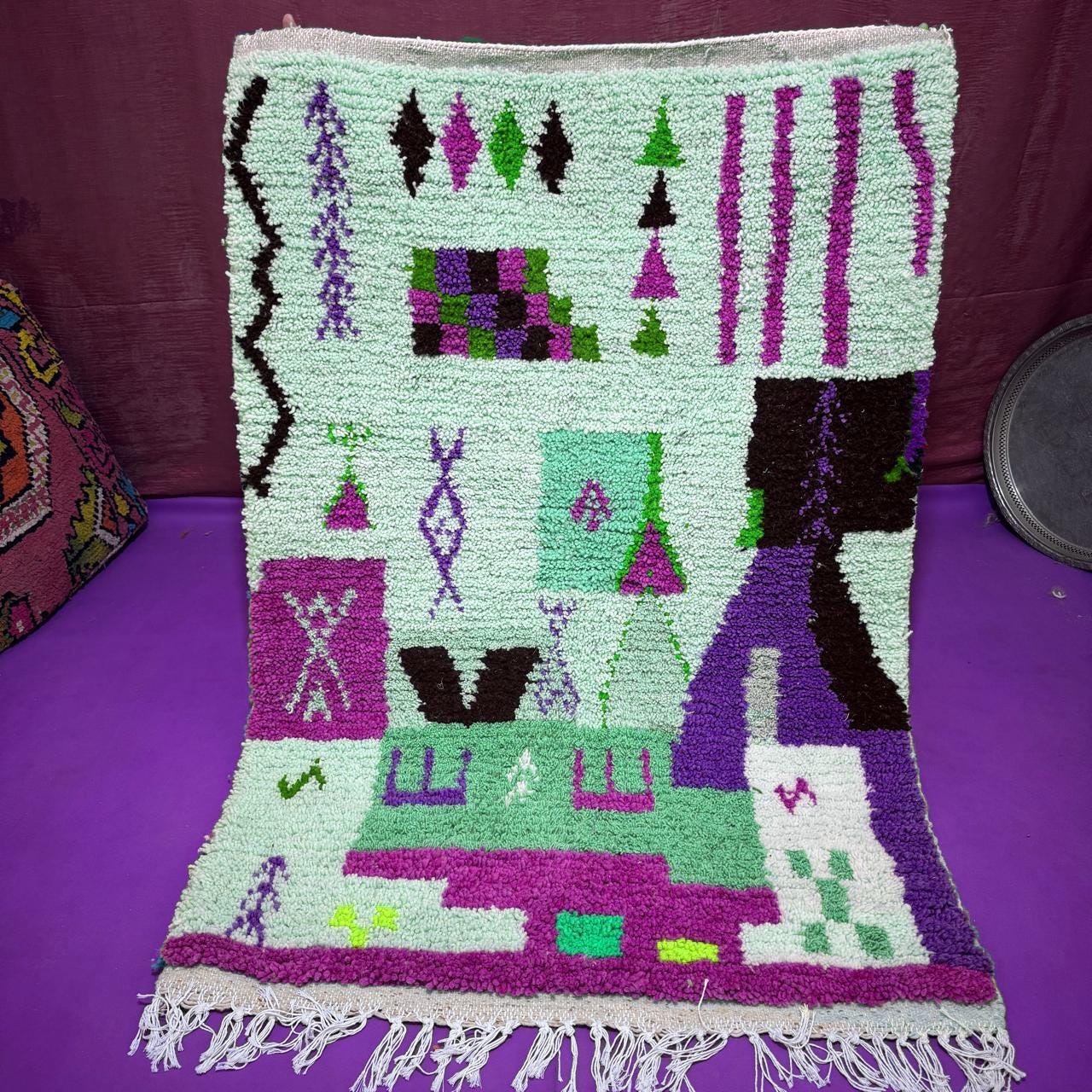 Boucherouite Rugs – Eco-friendly rugs made from recycled textiles in vivid colors and textures.