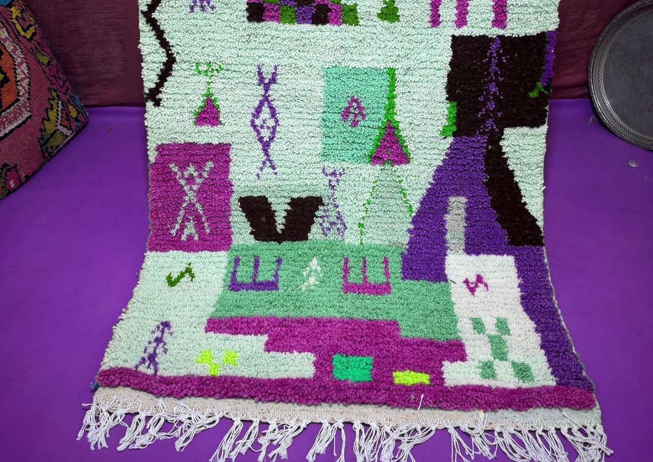 Handmade Moroccan Boujaad Rug ;Custom Wool Berber Carpet ;Colorful Abstract Tribal Design ;Atlas Area Rug ;Boho Decor ;Choose Size; Rug