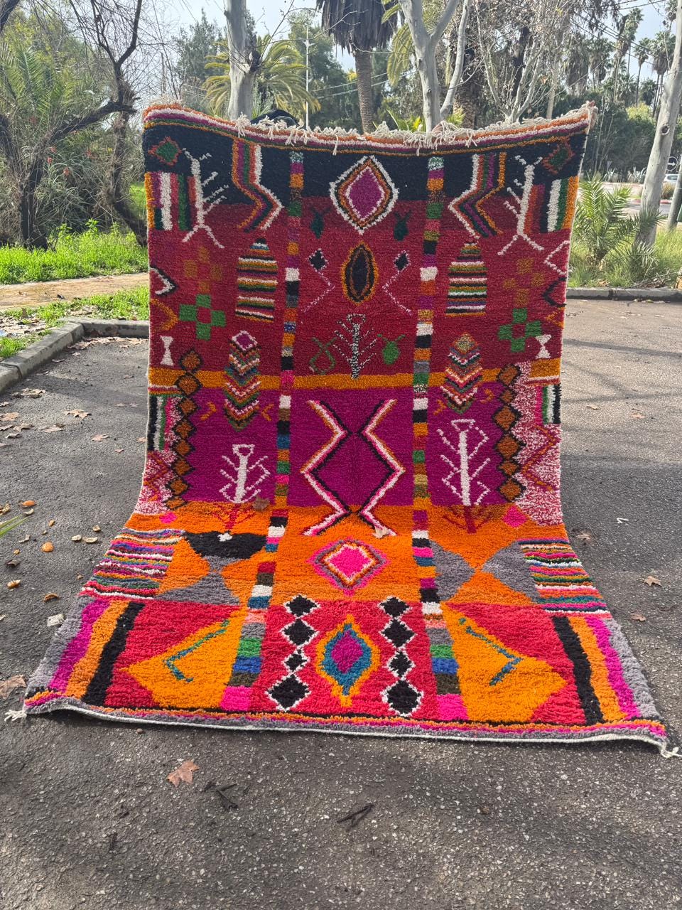 Azilal Rugs – Colorful, abstract tribal designs made with wool and natural dyes.
