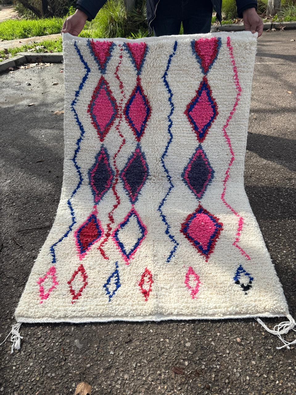 Handmade Moroccan Wool Rug: Colorful Berber Azilal Design ;Custom Bohemian Rugs ;Handmade Morrocan Rug ;Personalize Gifts For Home Decor