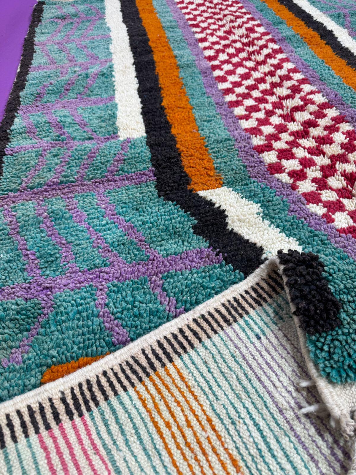 Boucherouite Rugs – Eco-friendly rugs made from recycled textiles in vivid colors and textures.
