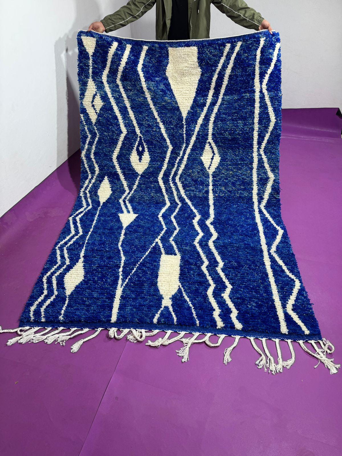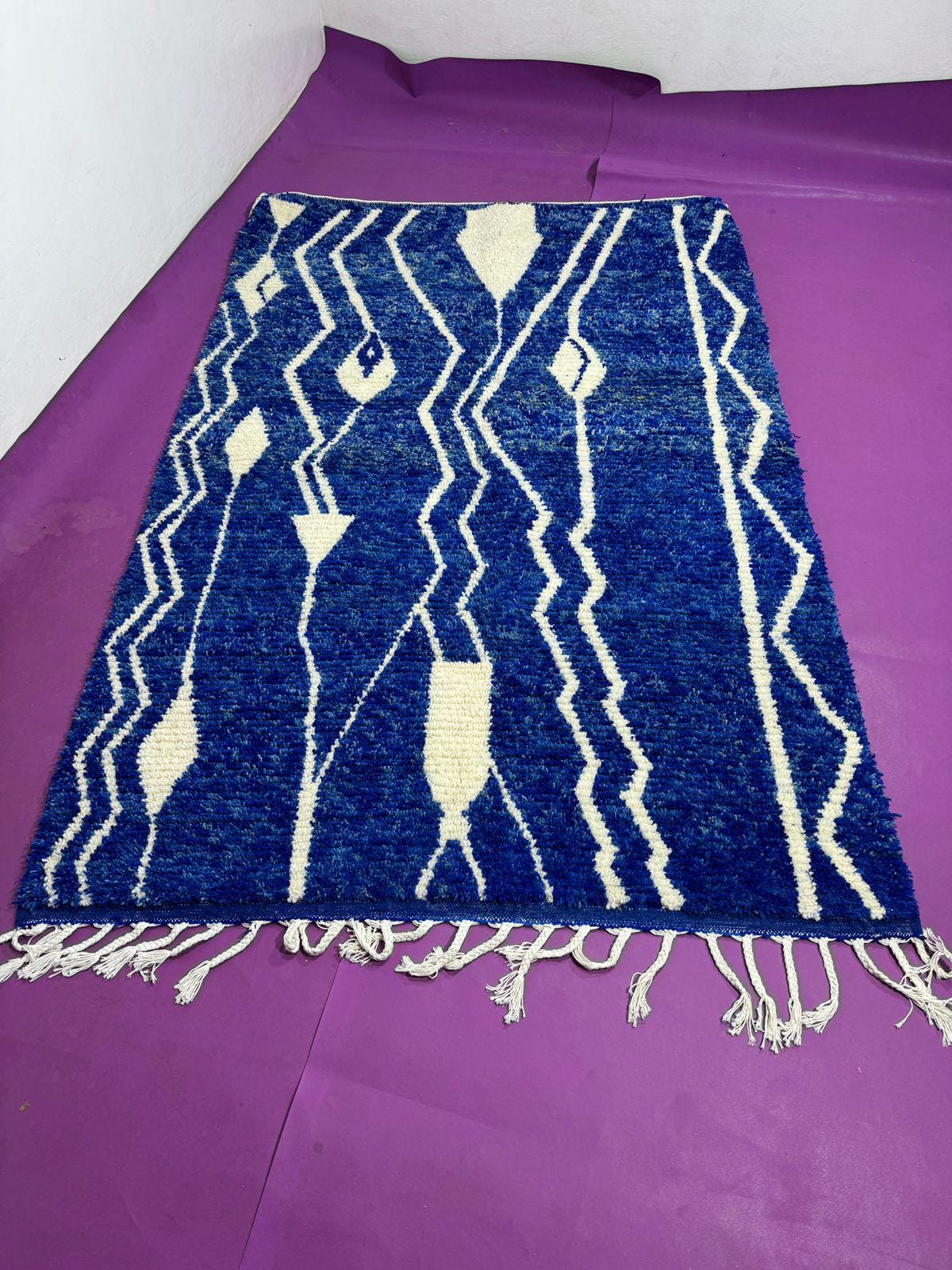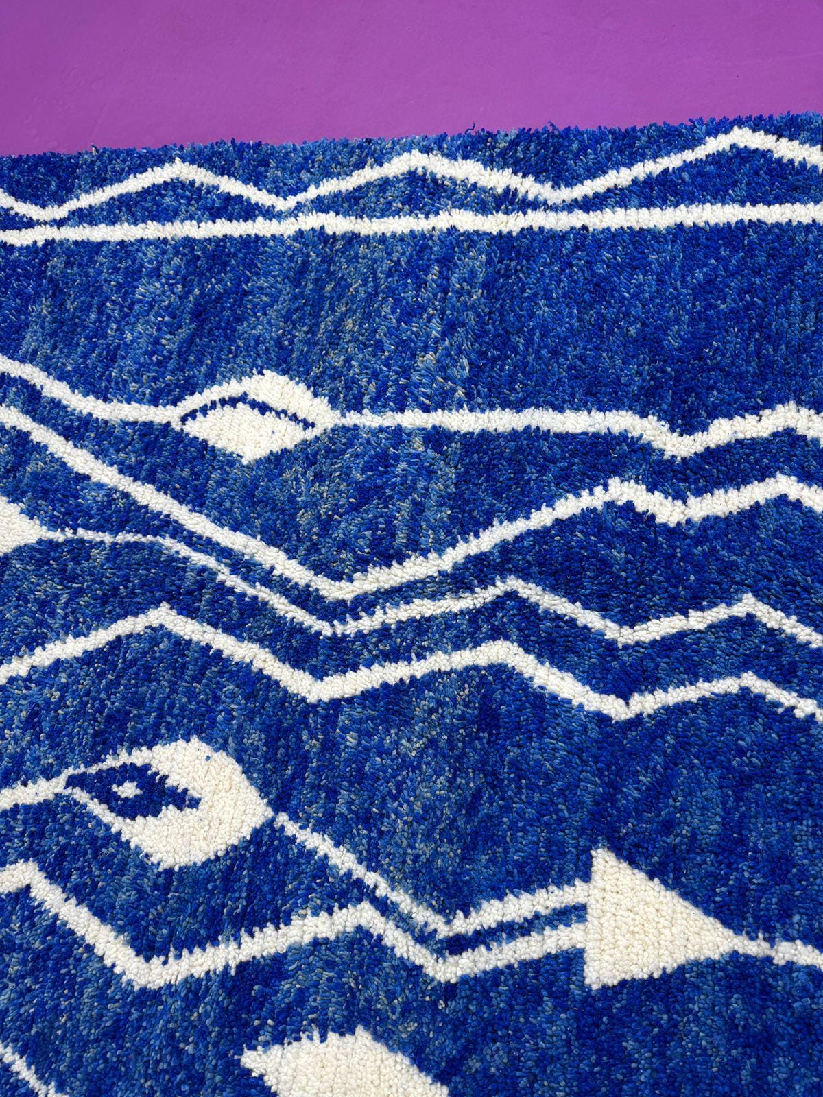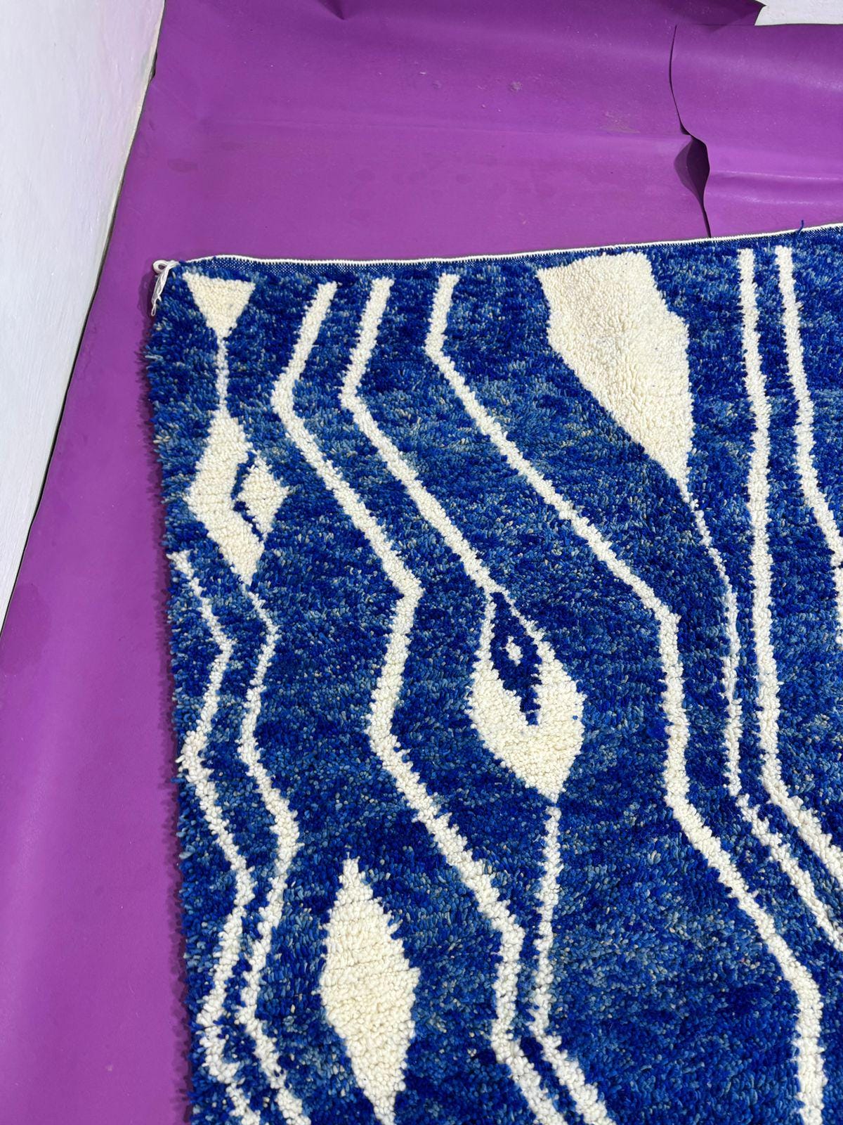 Blue Moroccan Rug | Blue & White Wavy Beni ourain rug | Handmade Striped Area Rug | Custom Berber Wool Rug. Blue