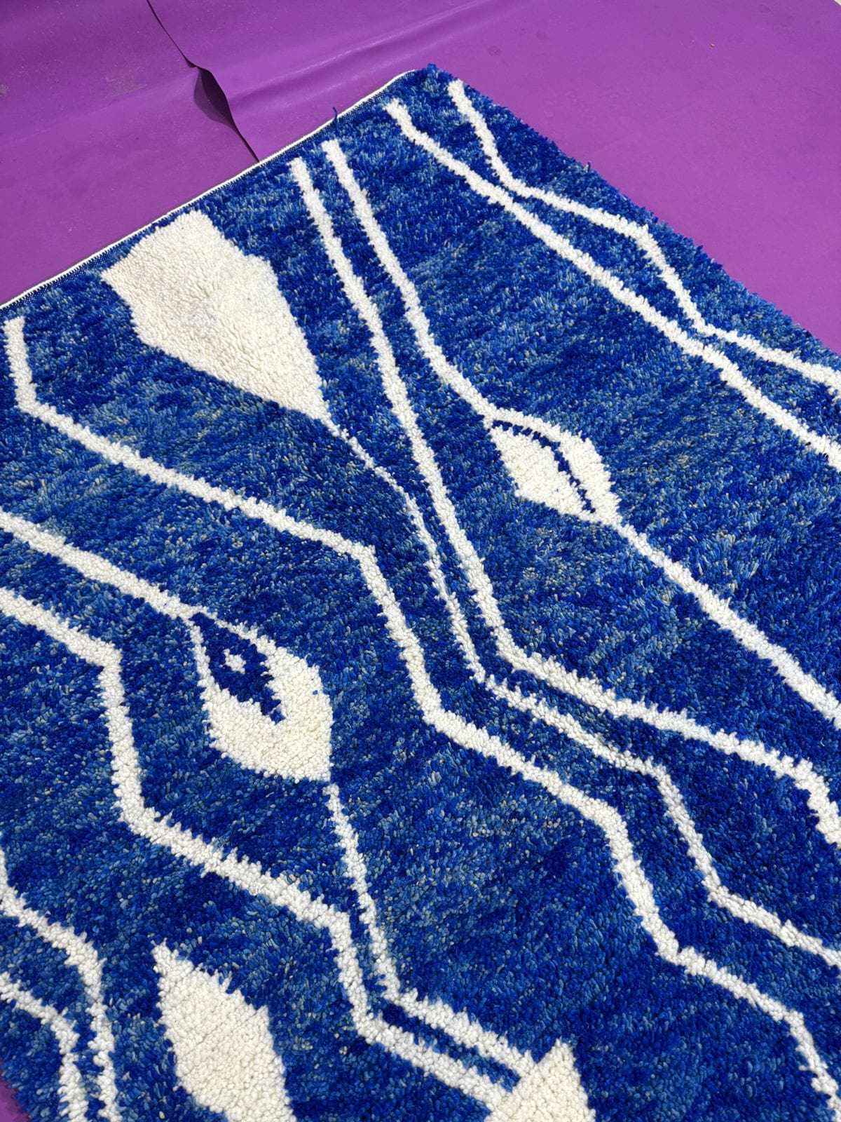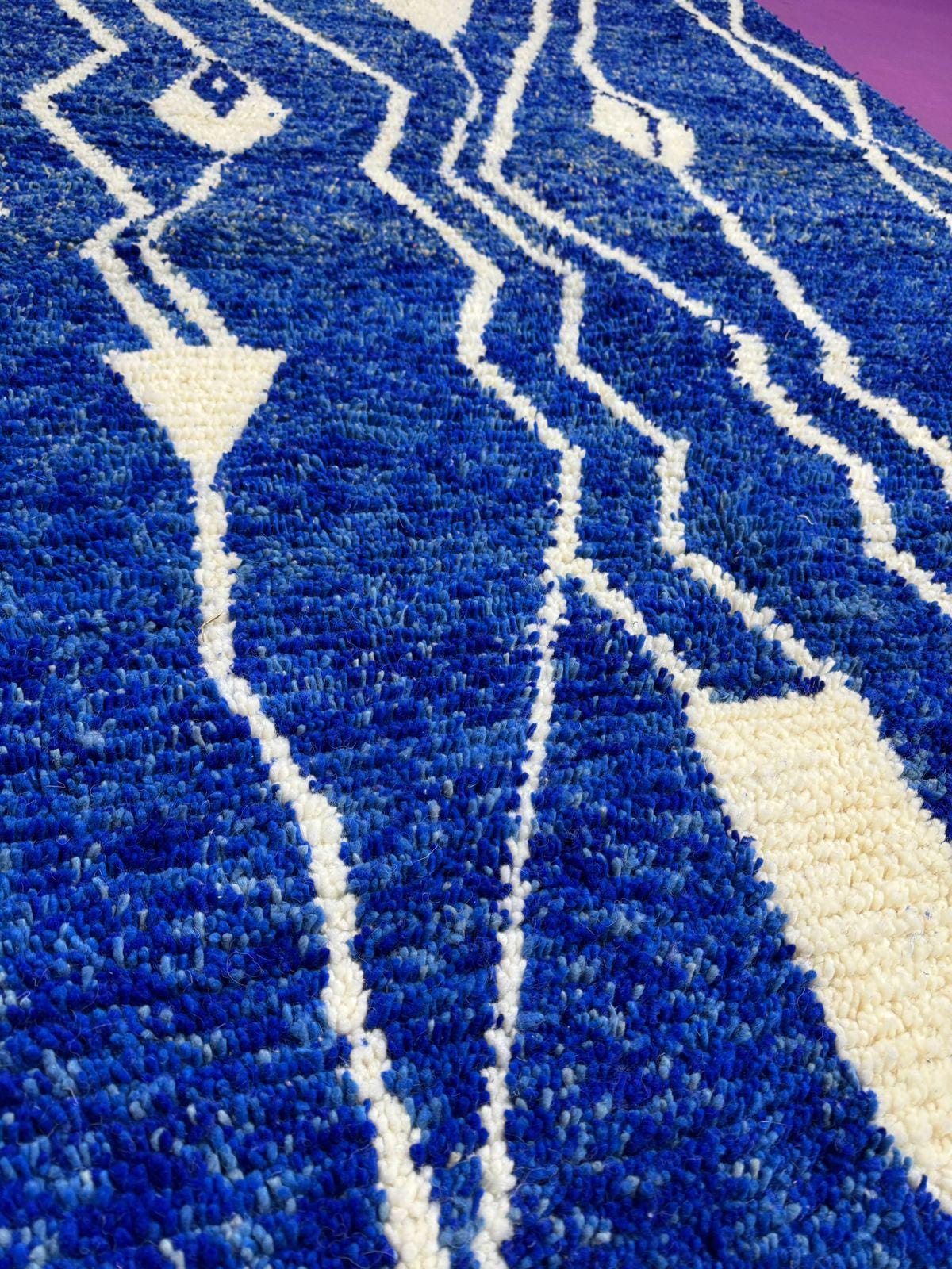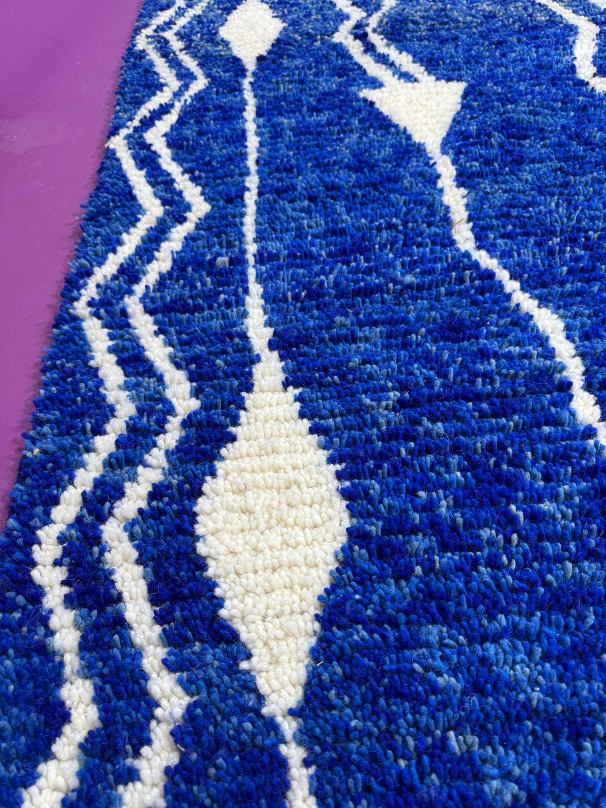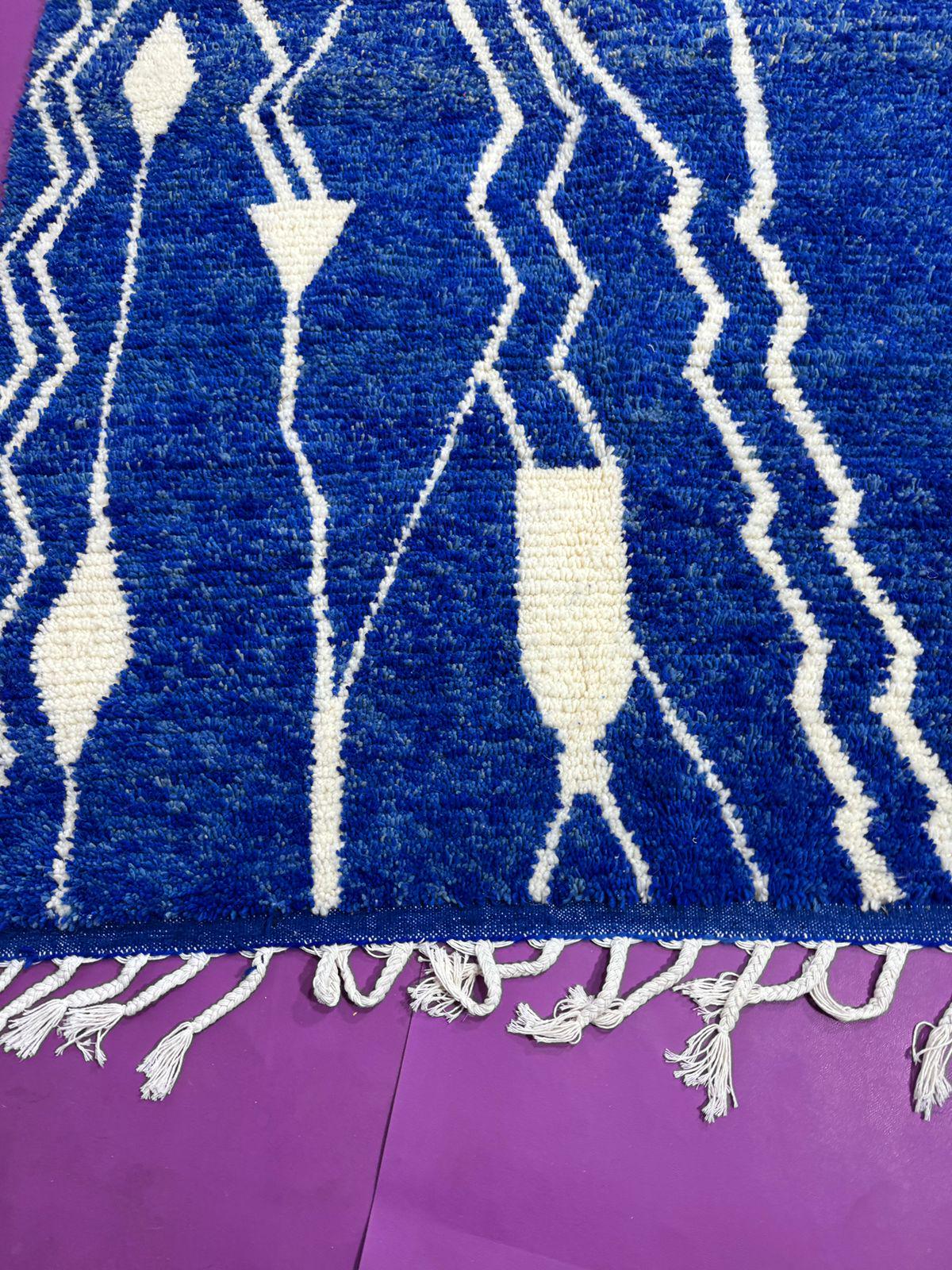 Blue Moroccan Rug | Blue & White Wavy Beni ourain rug | Handmade Striped Area Rug | Custom Berber Wool Rug. Blue