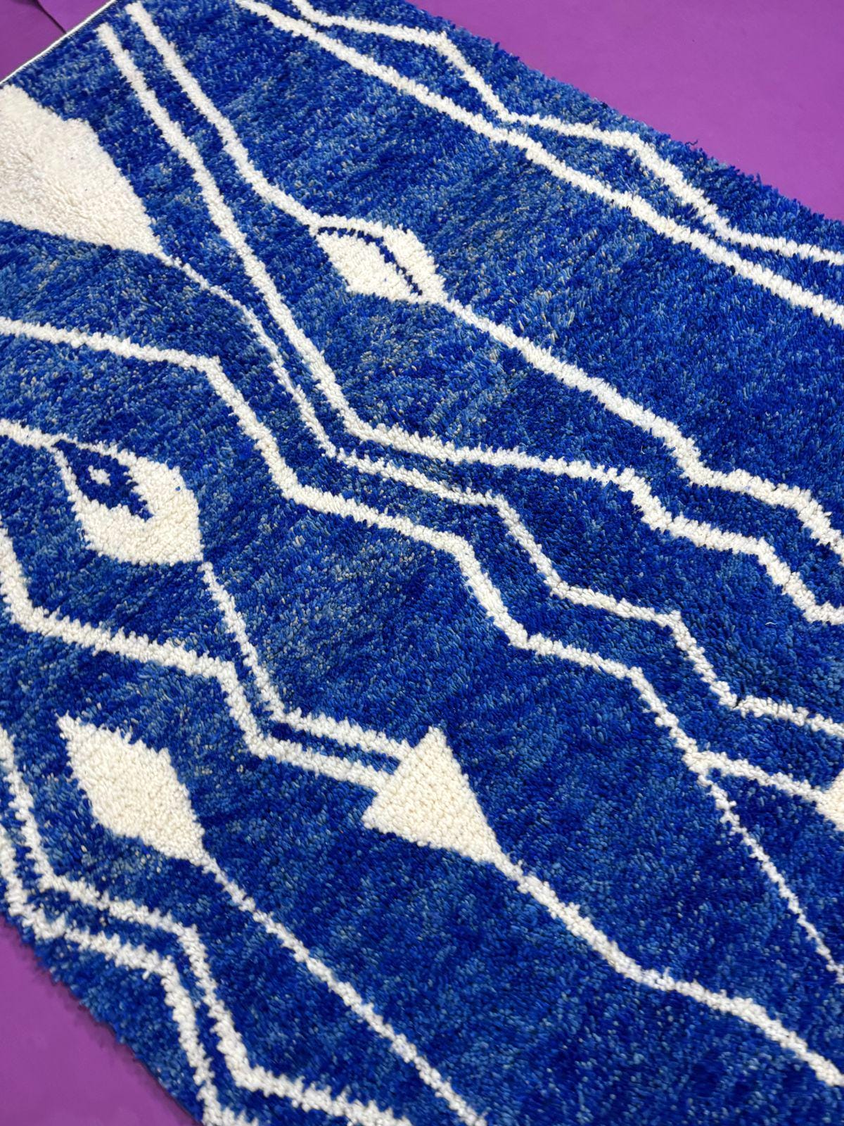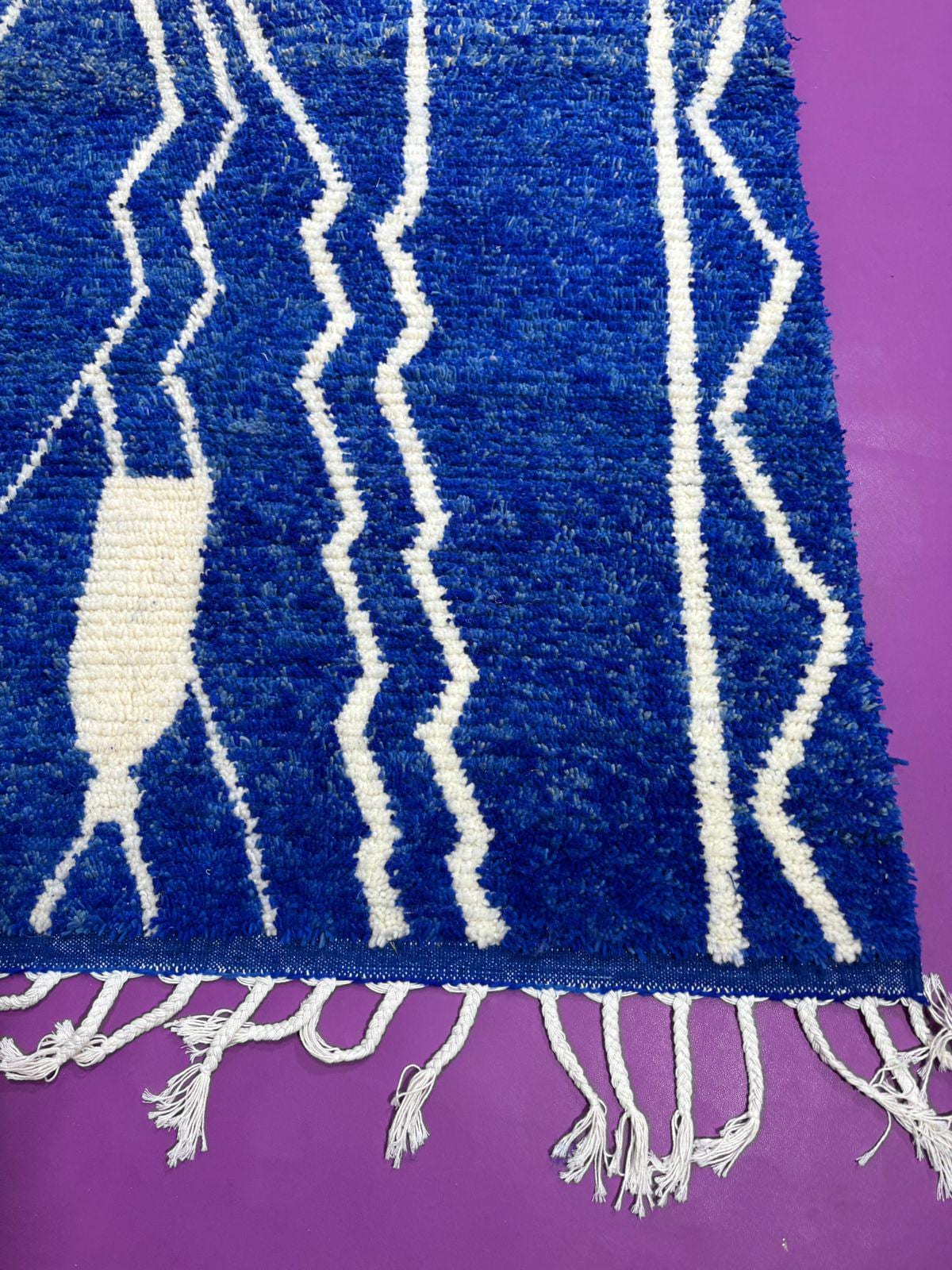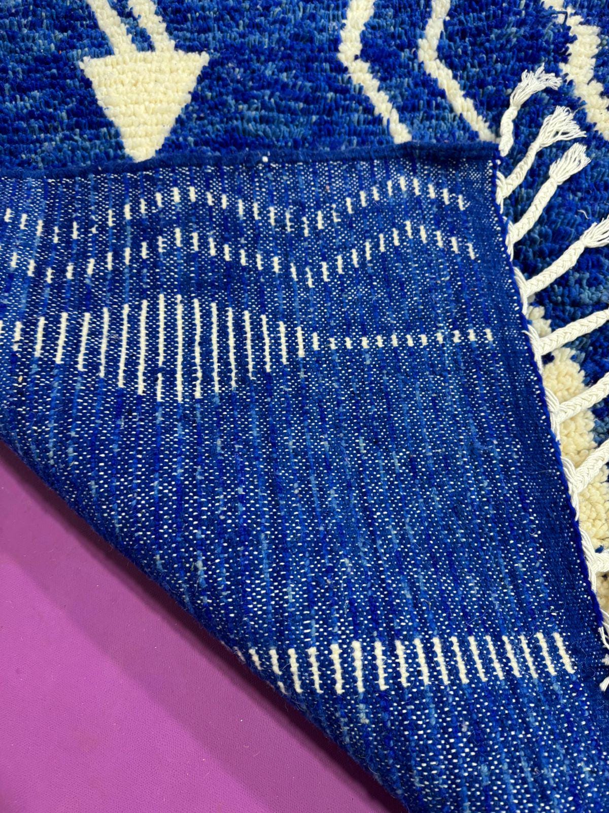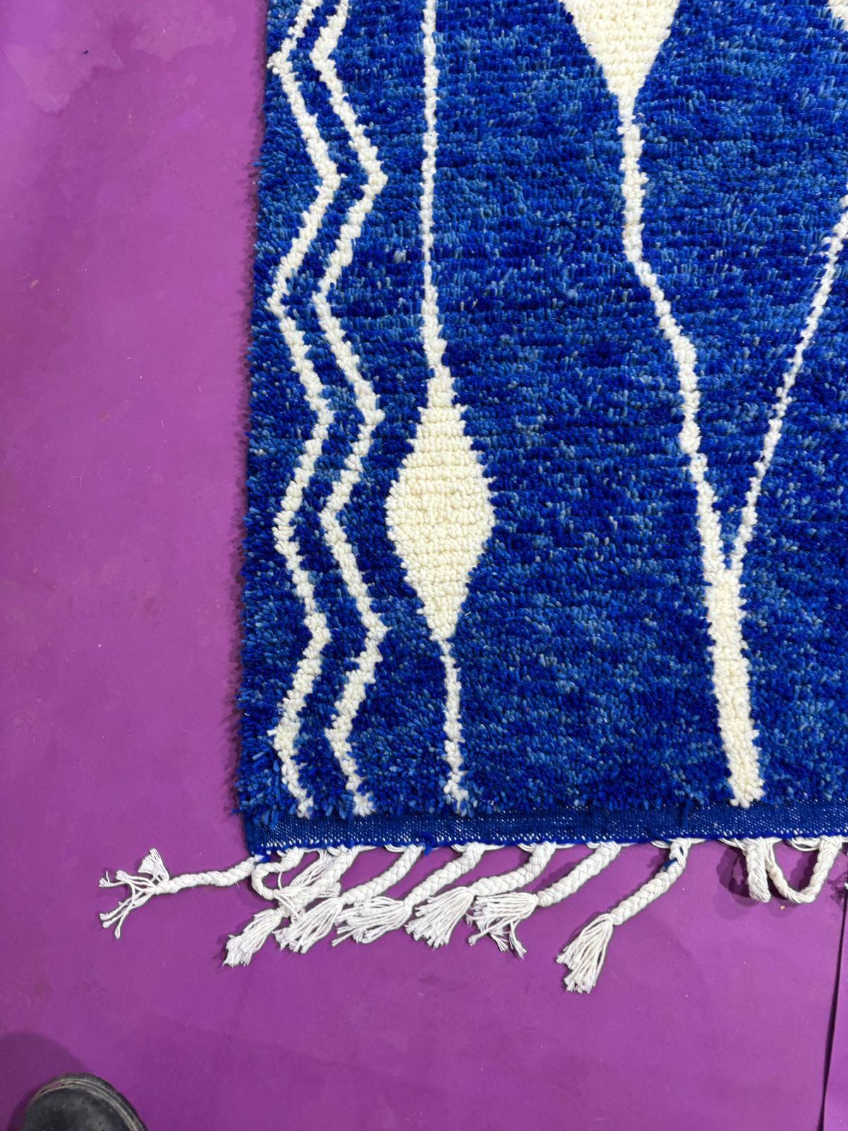 Blue Moroccan Rug | Blue & White Wavy Beni ourain rug | Handmade Striped Area Rug | Custom Berber Wool Rug. Blue
