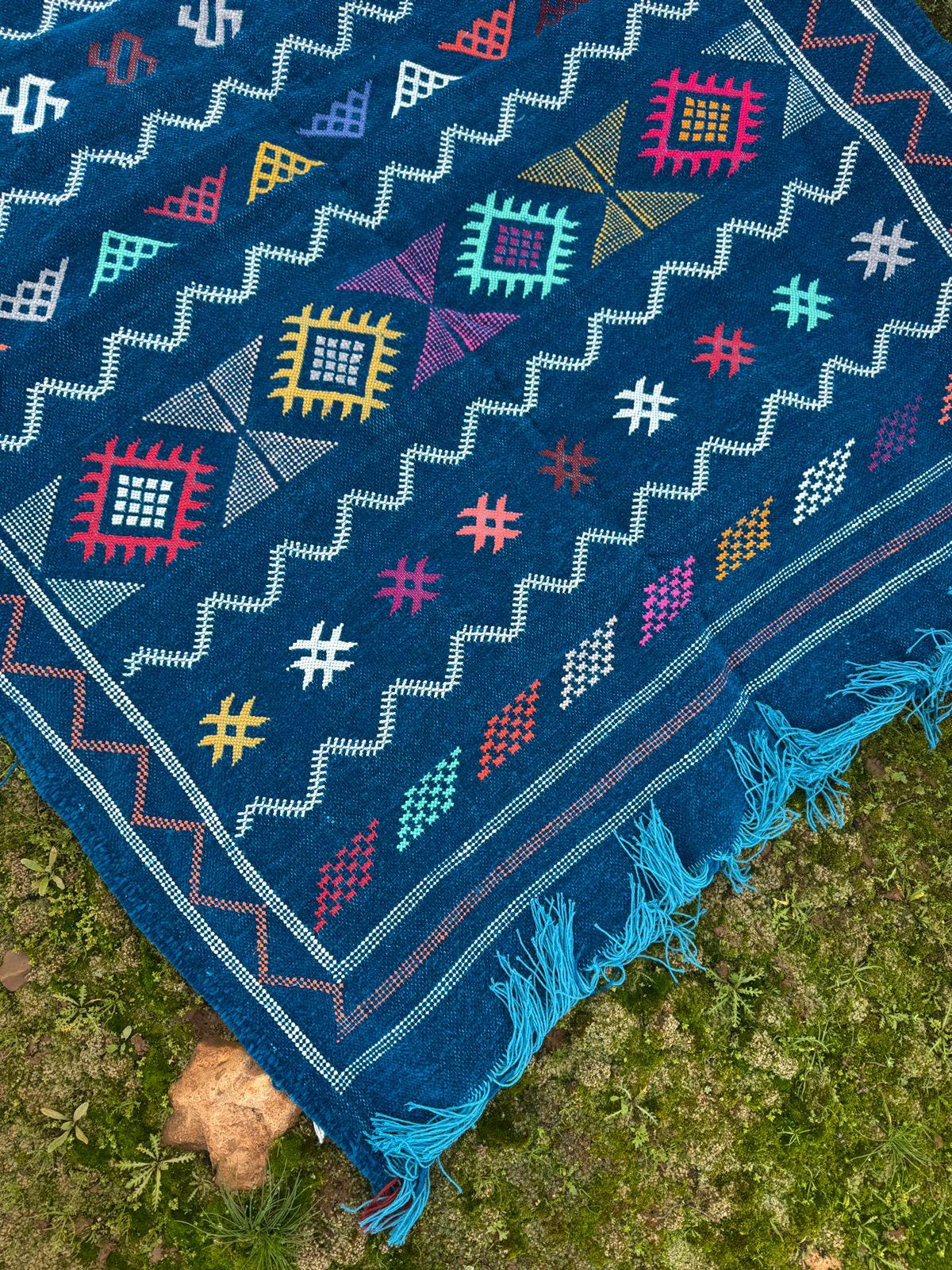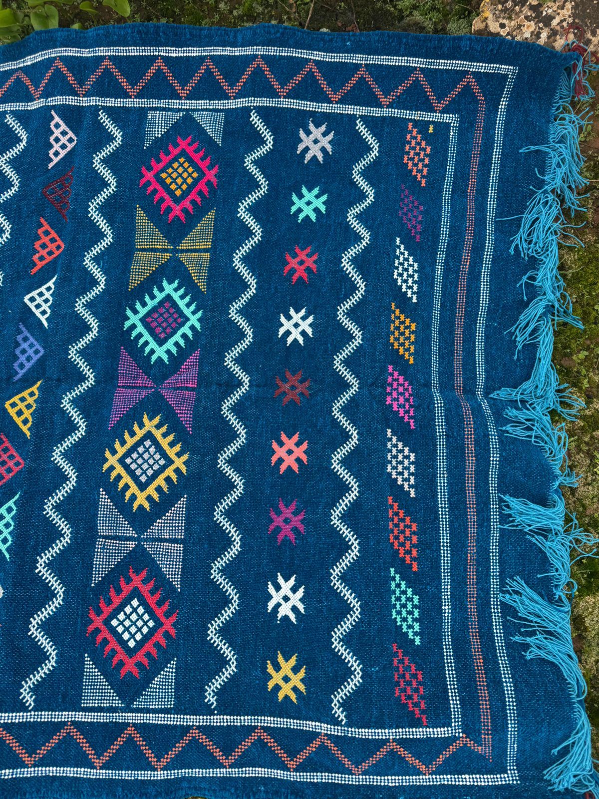 Every detail of this kilim reflects the spirit of authentic Moroccan craftsmanship, from the harmony of the motifs to the precision of the weaving and the quality of the finishing.