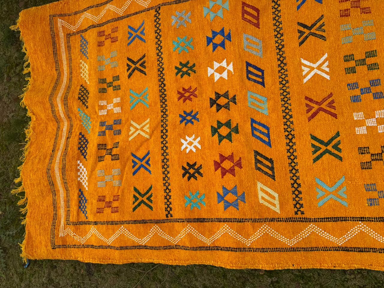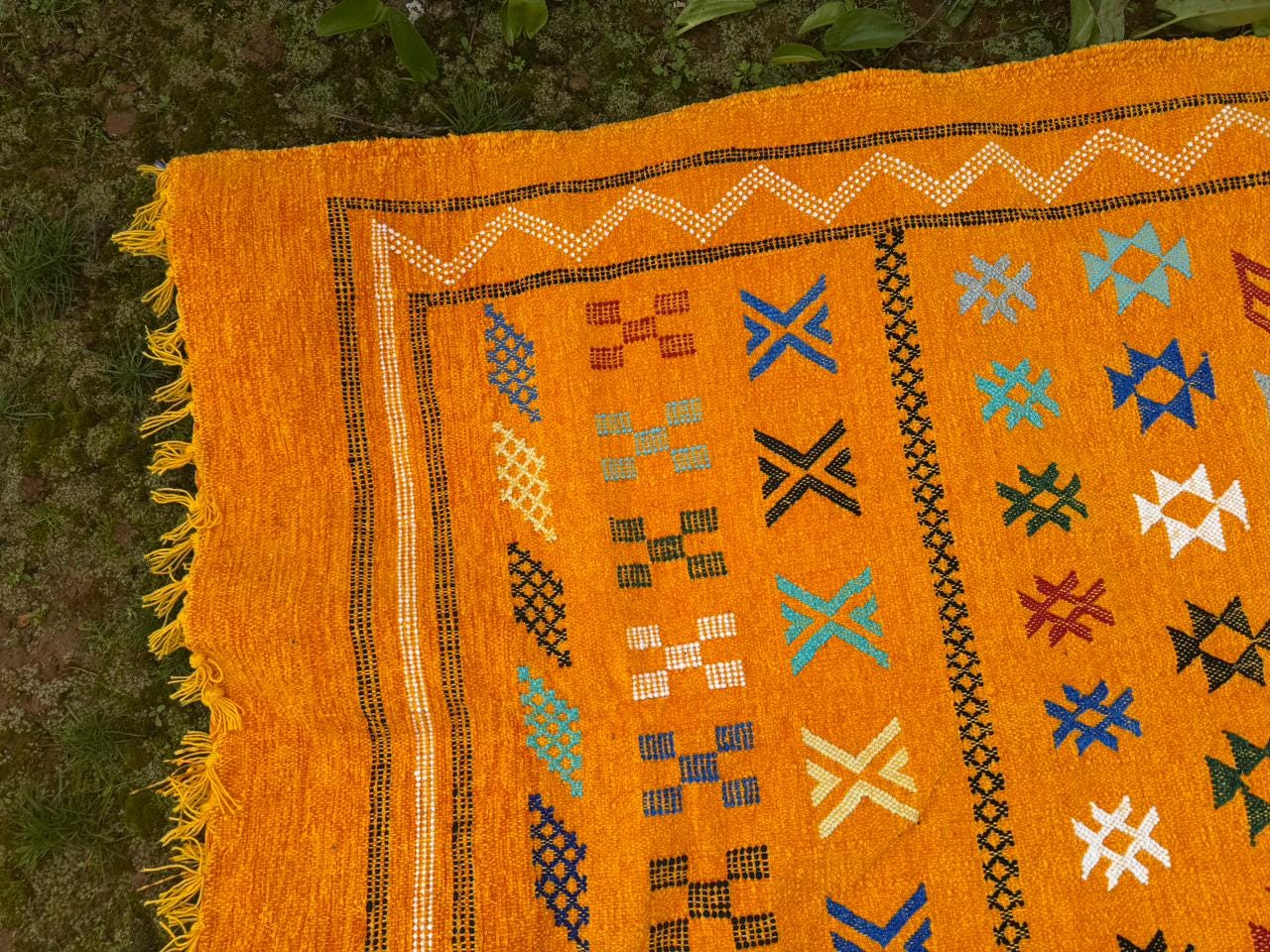 Every detail of this kilim reflects the spirit of authentic Moroccan craftsmanship, from the harmony of the motifs to the precision of the weaving and the quality of the finishing.