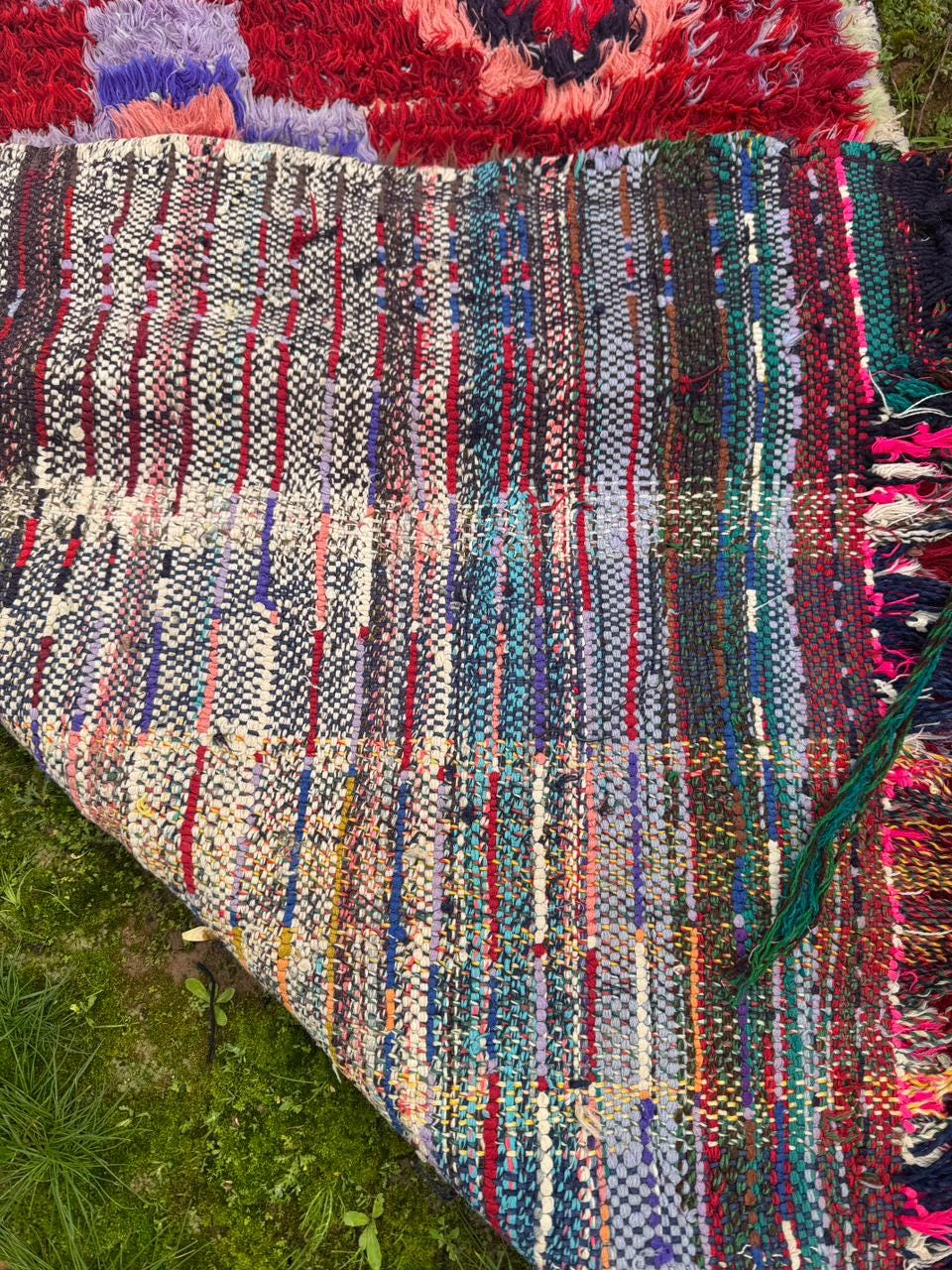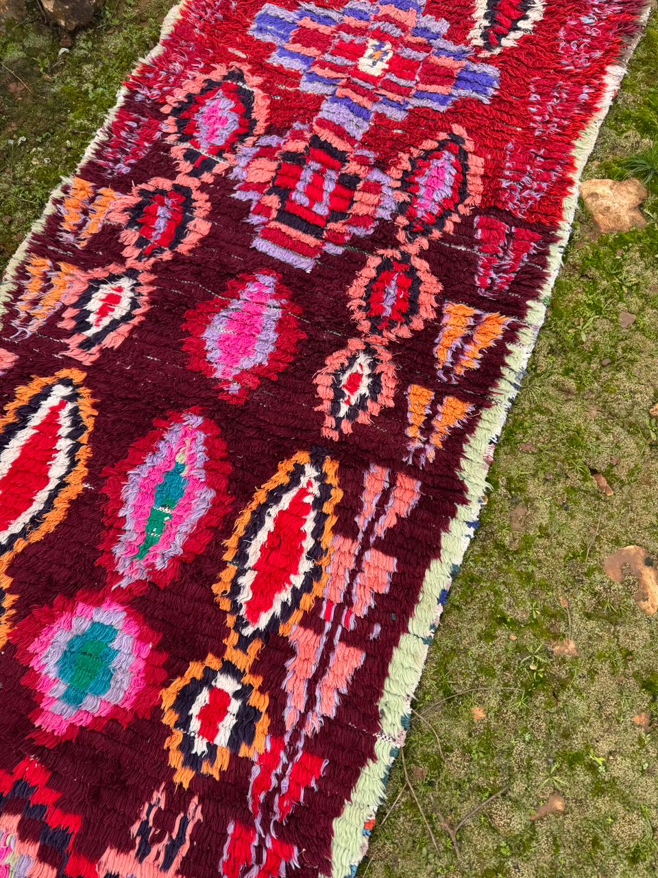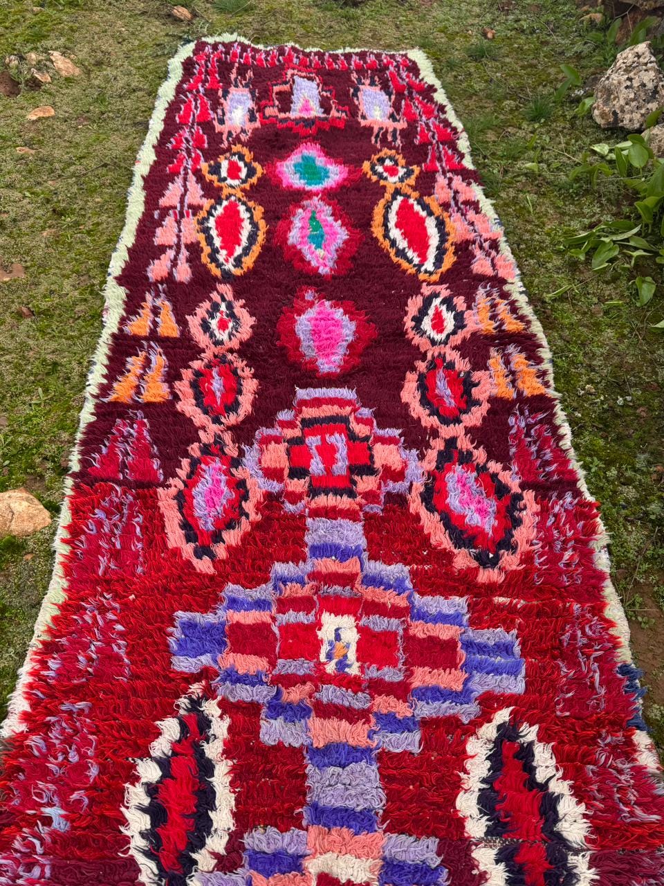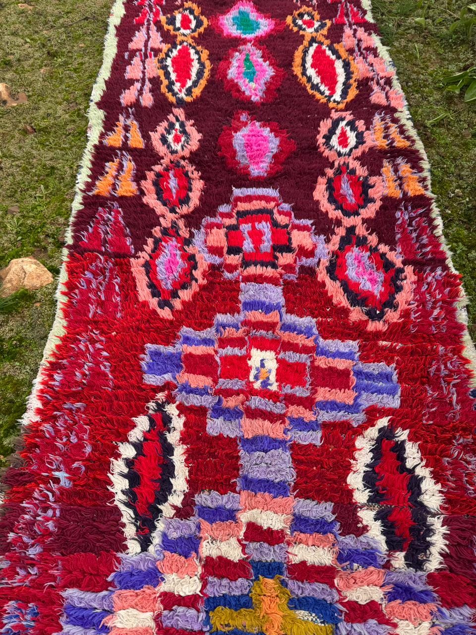 Moroccan Boucherouite Rug – Handmade Berber Tribal Carpet, Colorful Amazigh Design, Boho Statement Runner