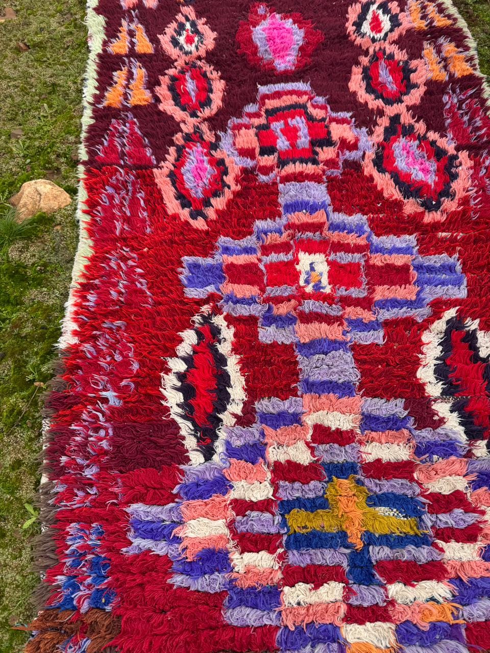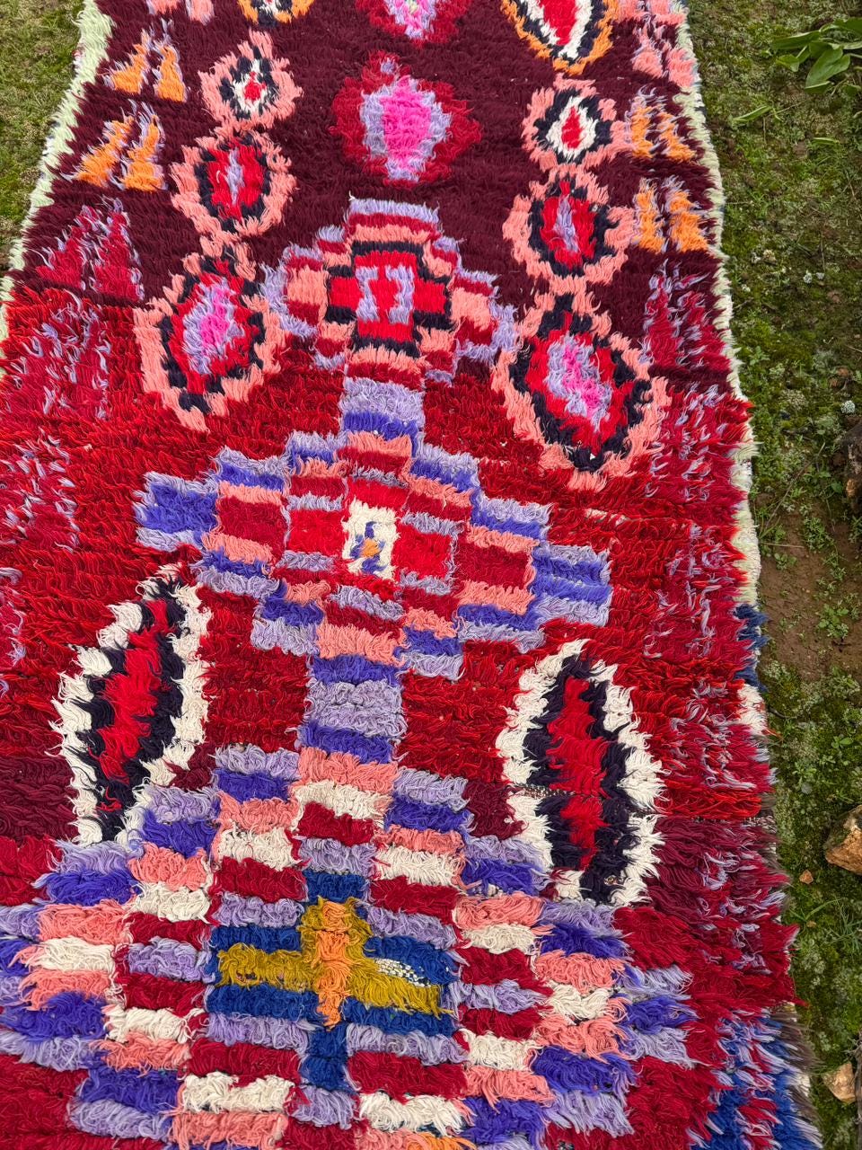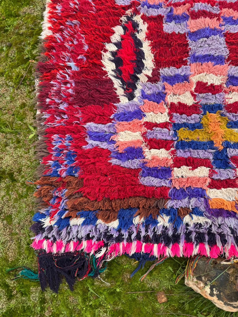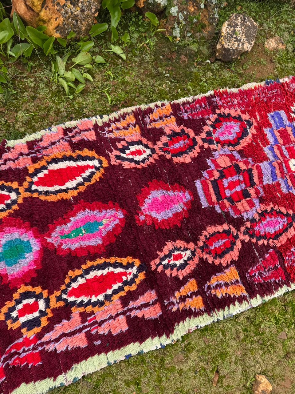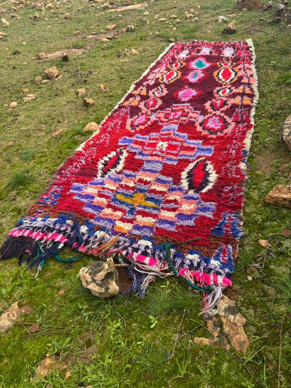 Moroccan Boucherouite Rug – Handmade Berber Tribal Carpet, Colorful Amazigh Design, Boho Statement Runner