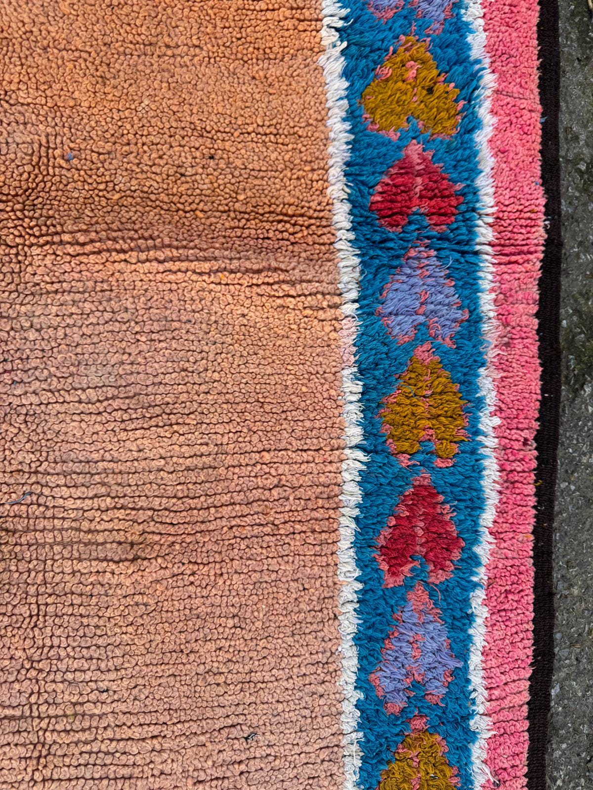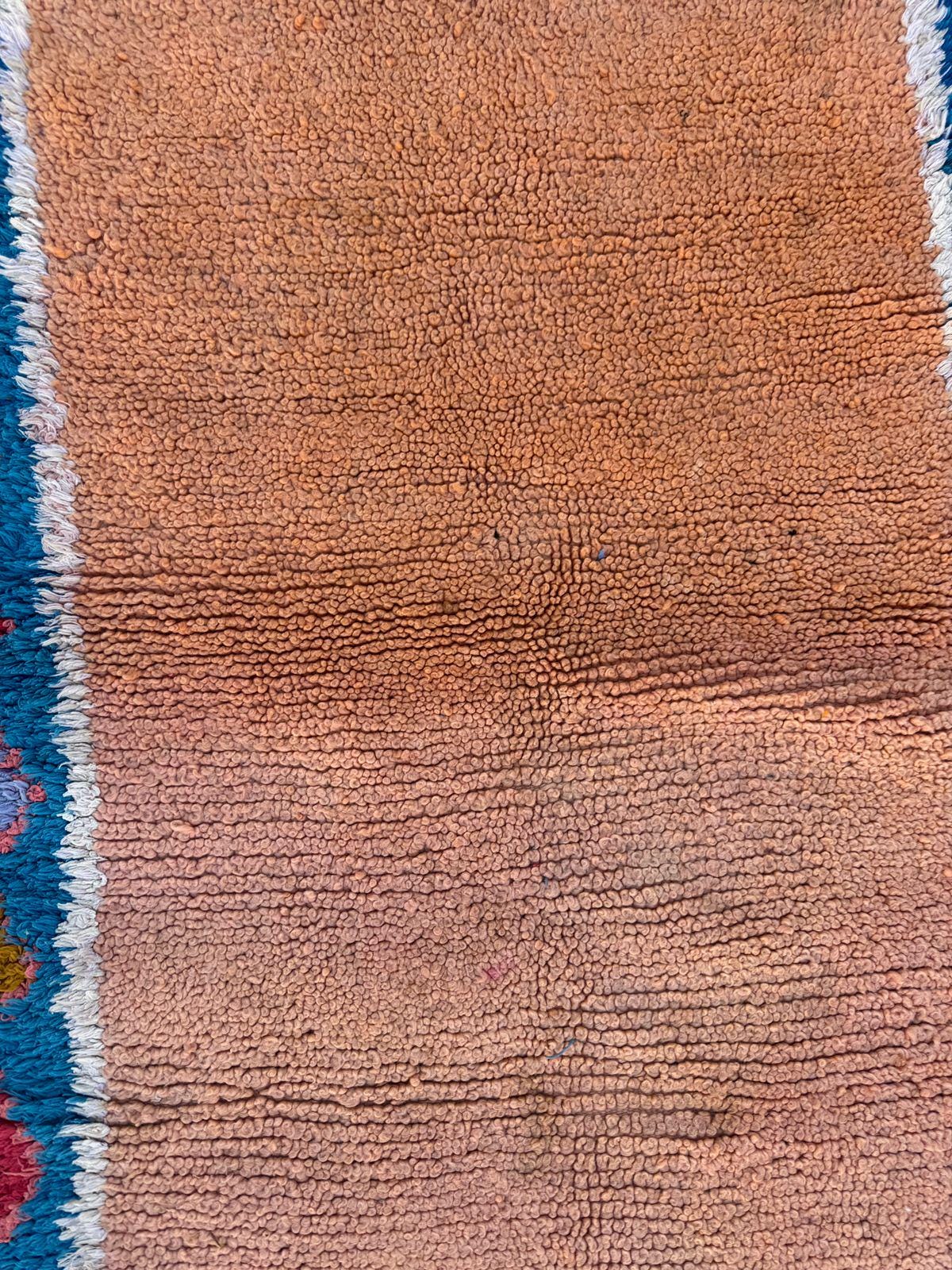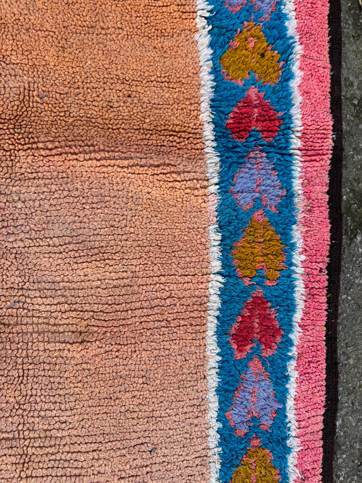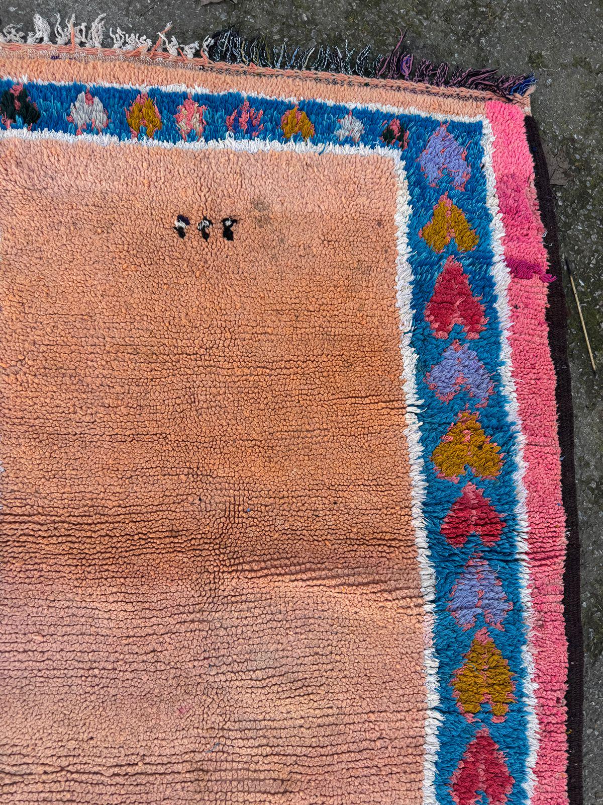 Vintage Moroccan Rug – Handwoven Berber Wool Area Rug in Pink & Peach | Bohemian Tribal Design | Authentic Handmade Decor.