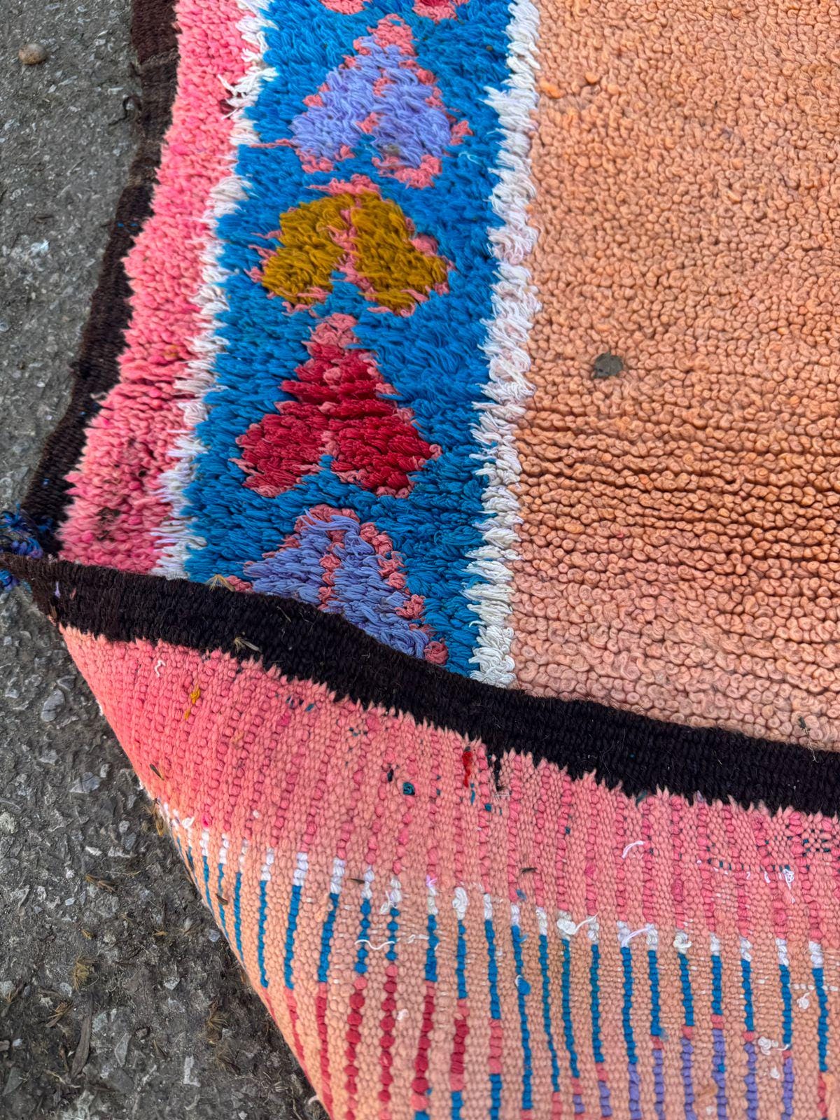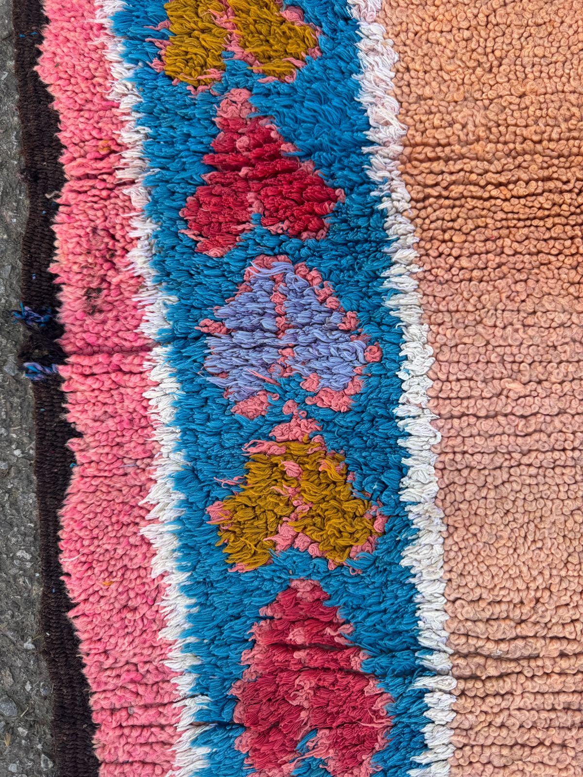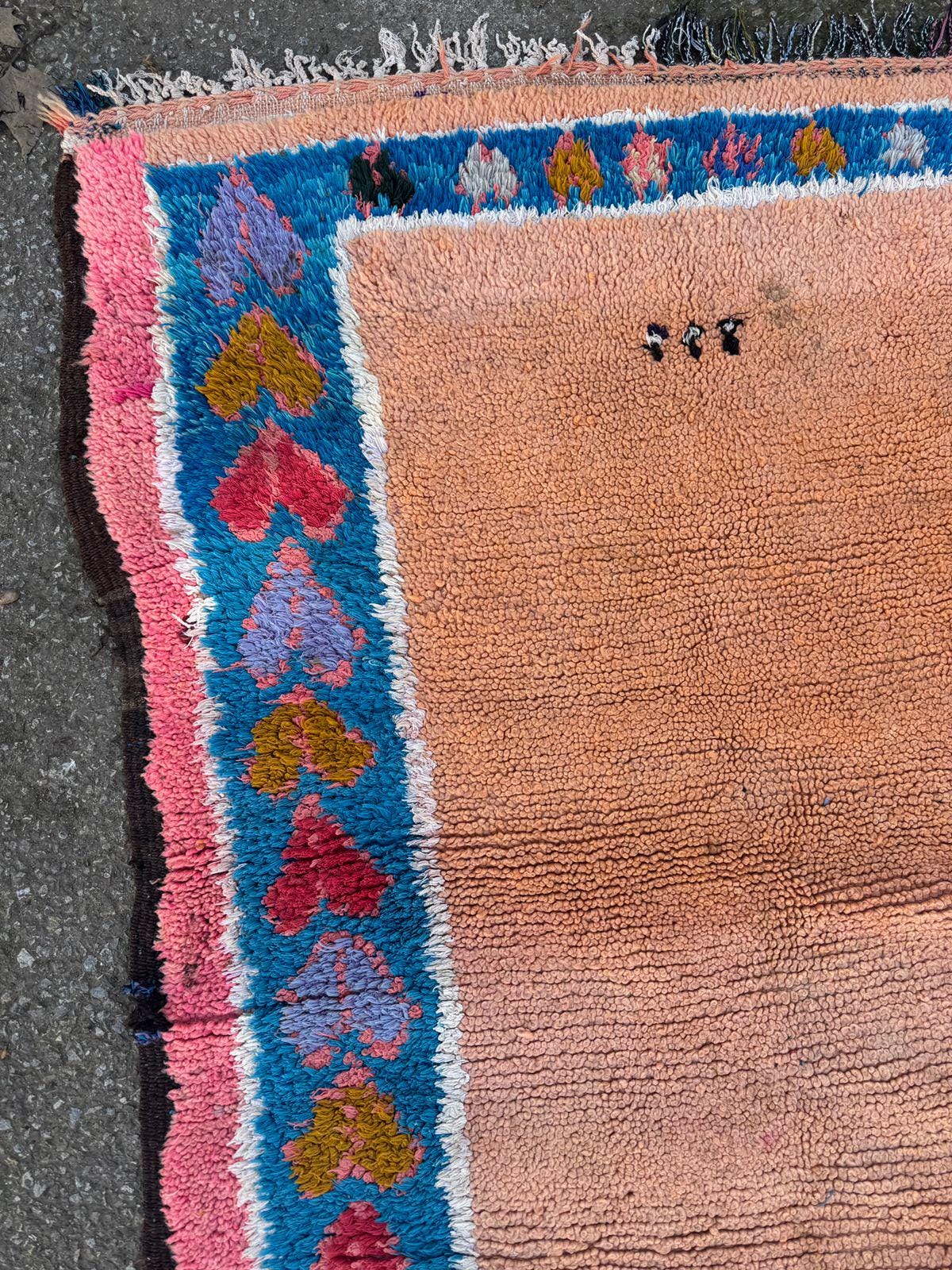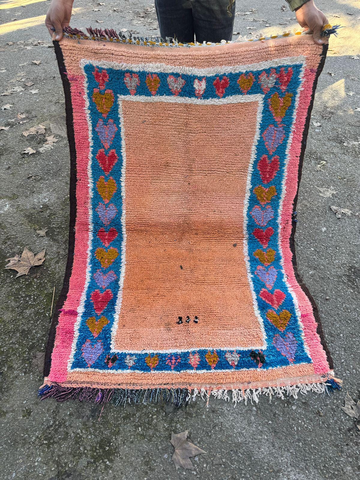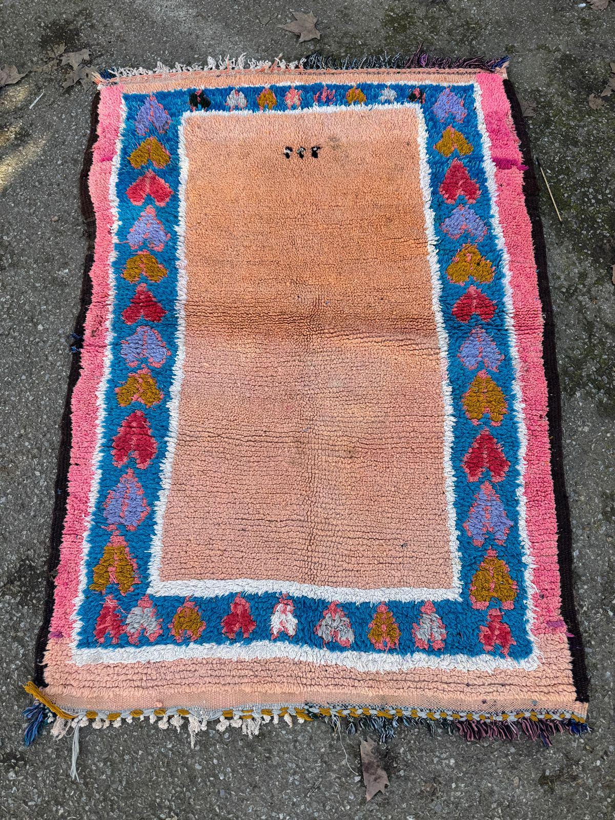 Vintage Moroccan Rug – Handwoven Berber Wool Area Rug in Pink & Peach | Bohemian Tribal Design | Authentic Handmade Decor.