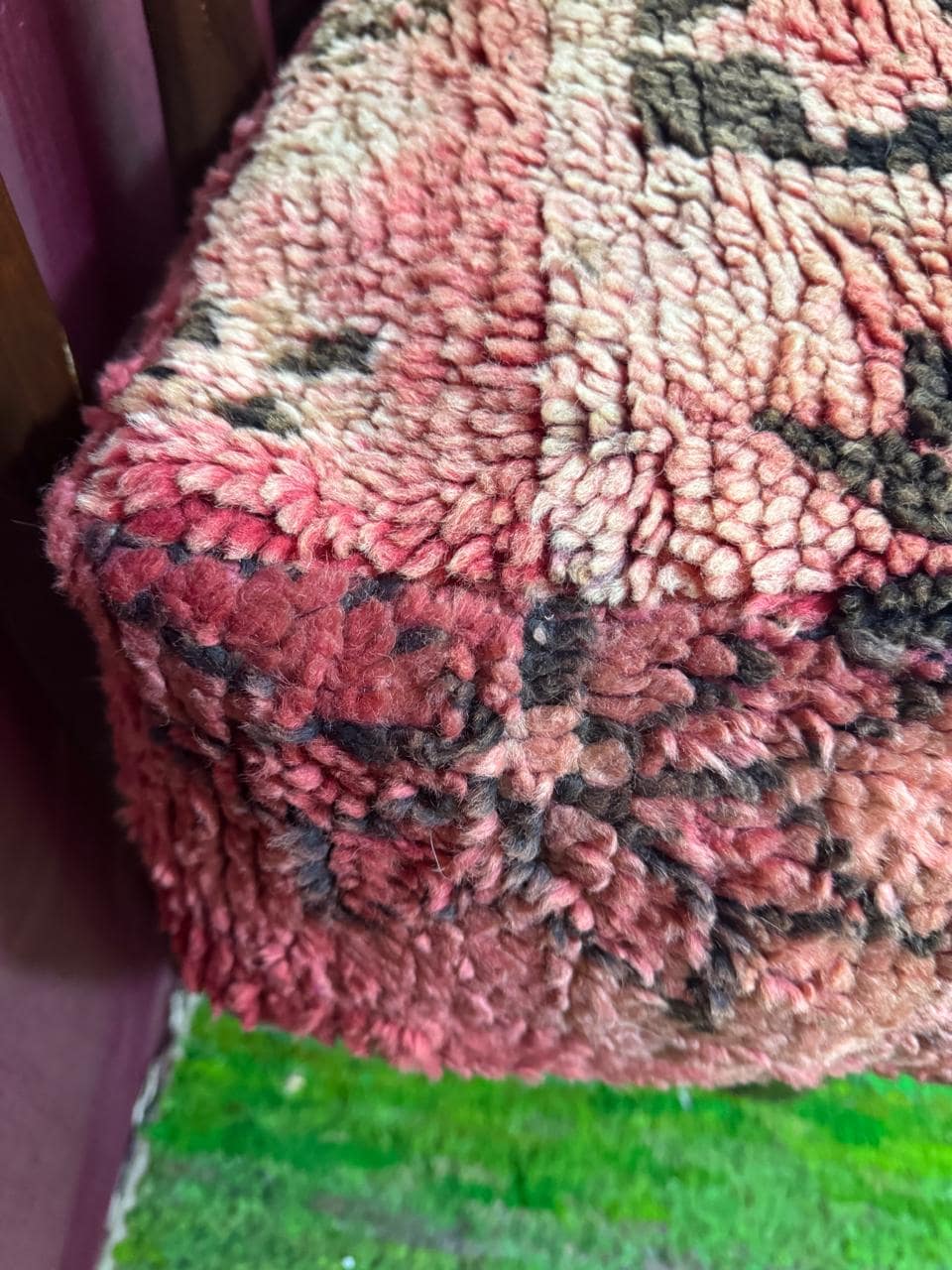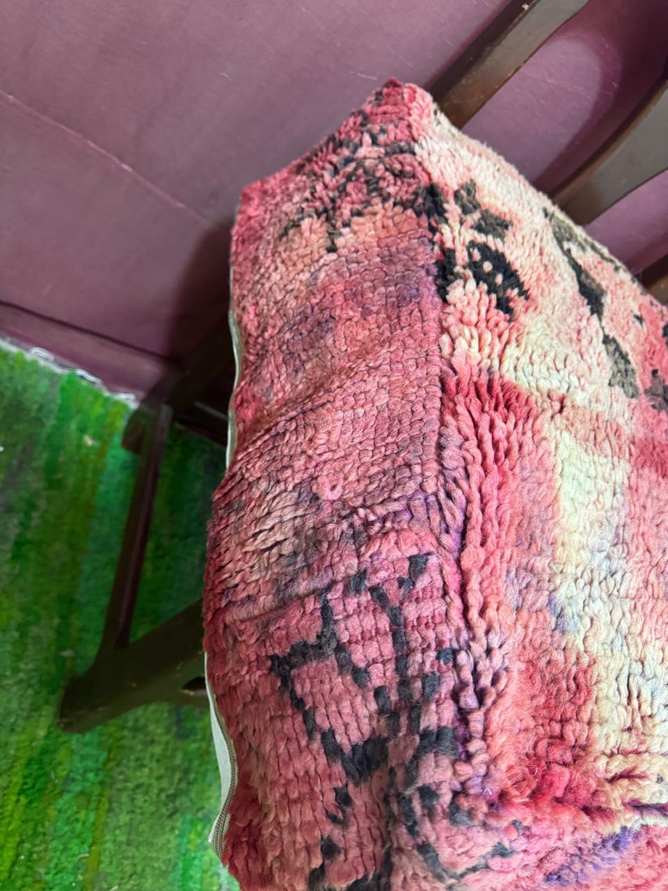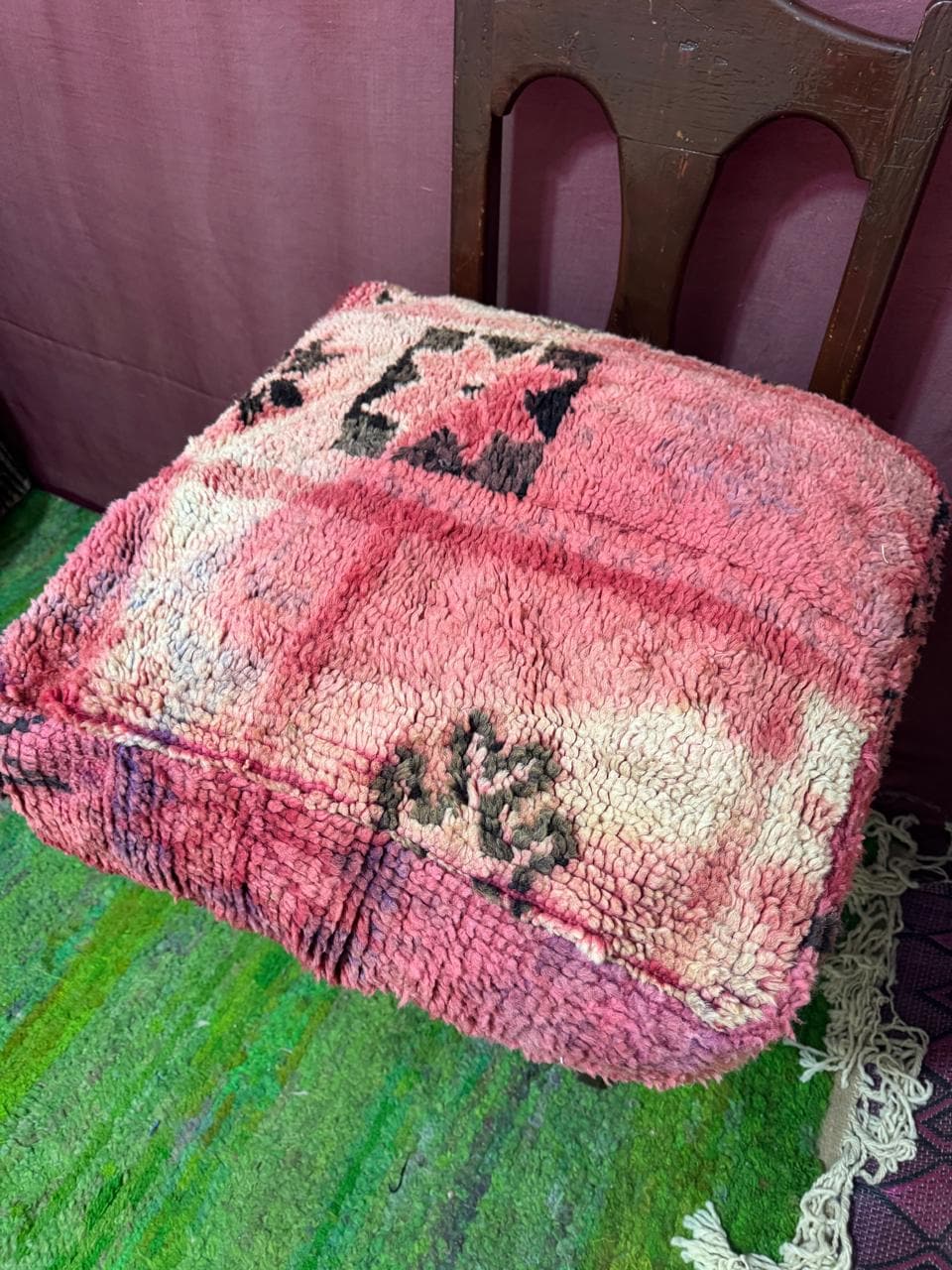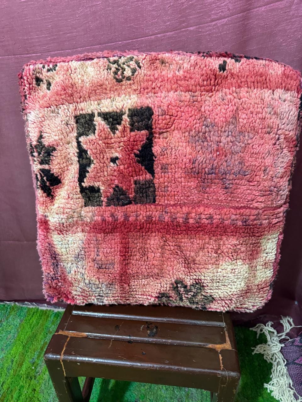 Vintage Moroccan Floor Pouf ;Handwoven Berber Cushion from Boujad Rug ;Boho Tribal Ottoman"
