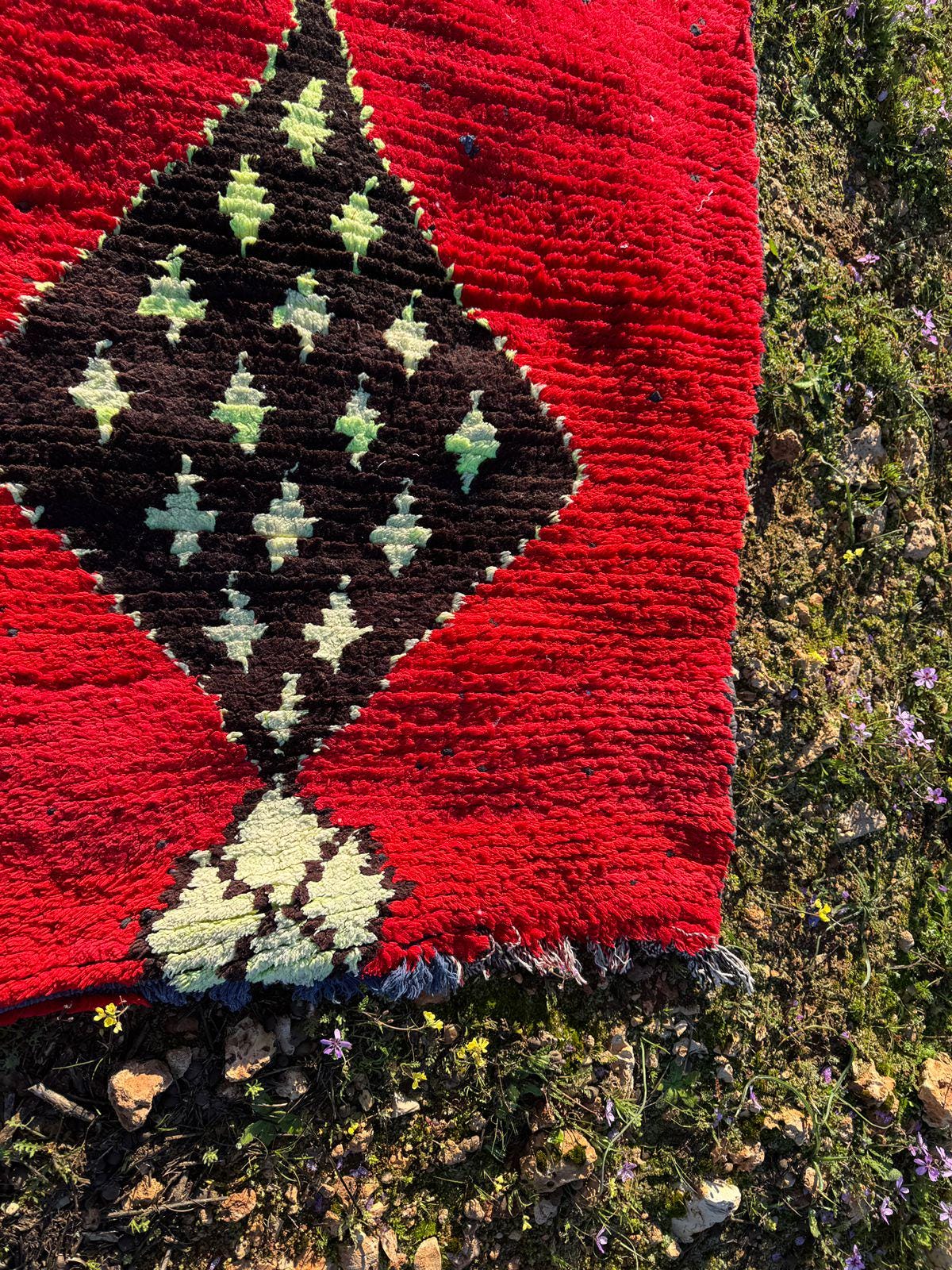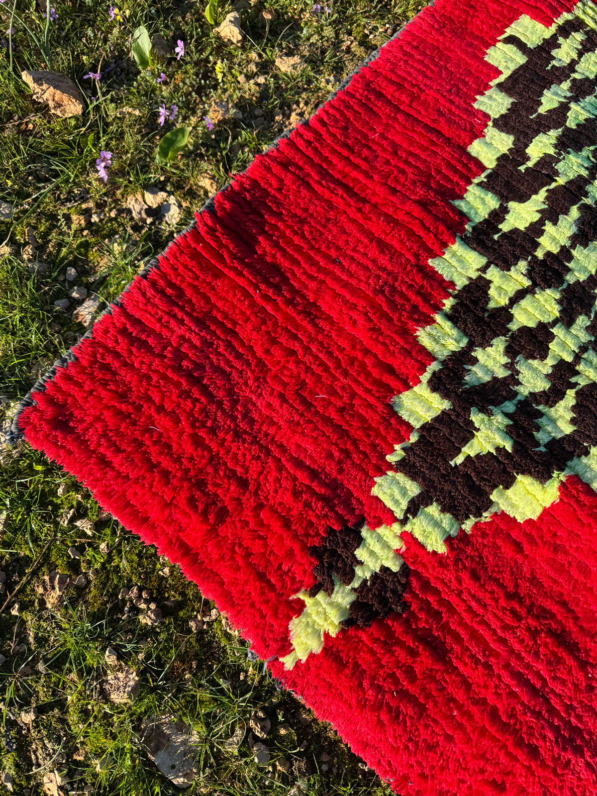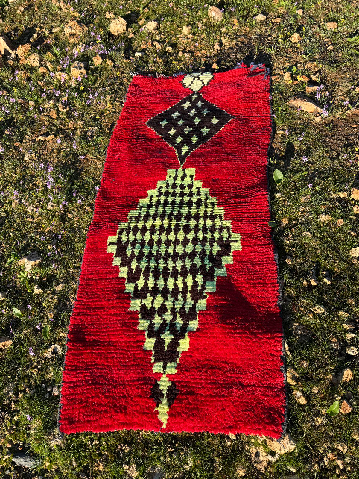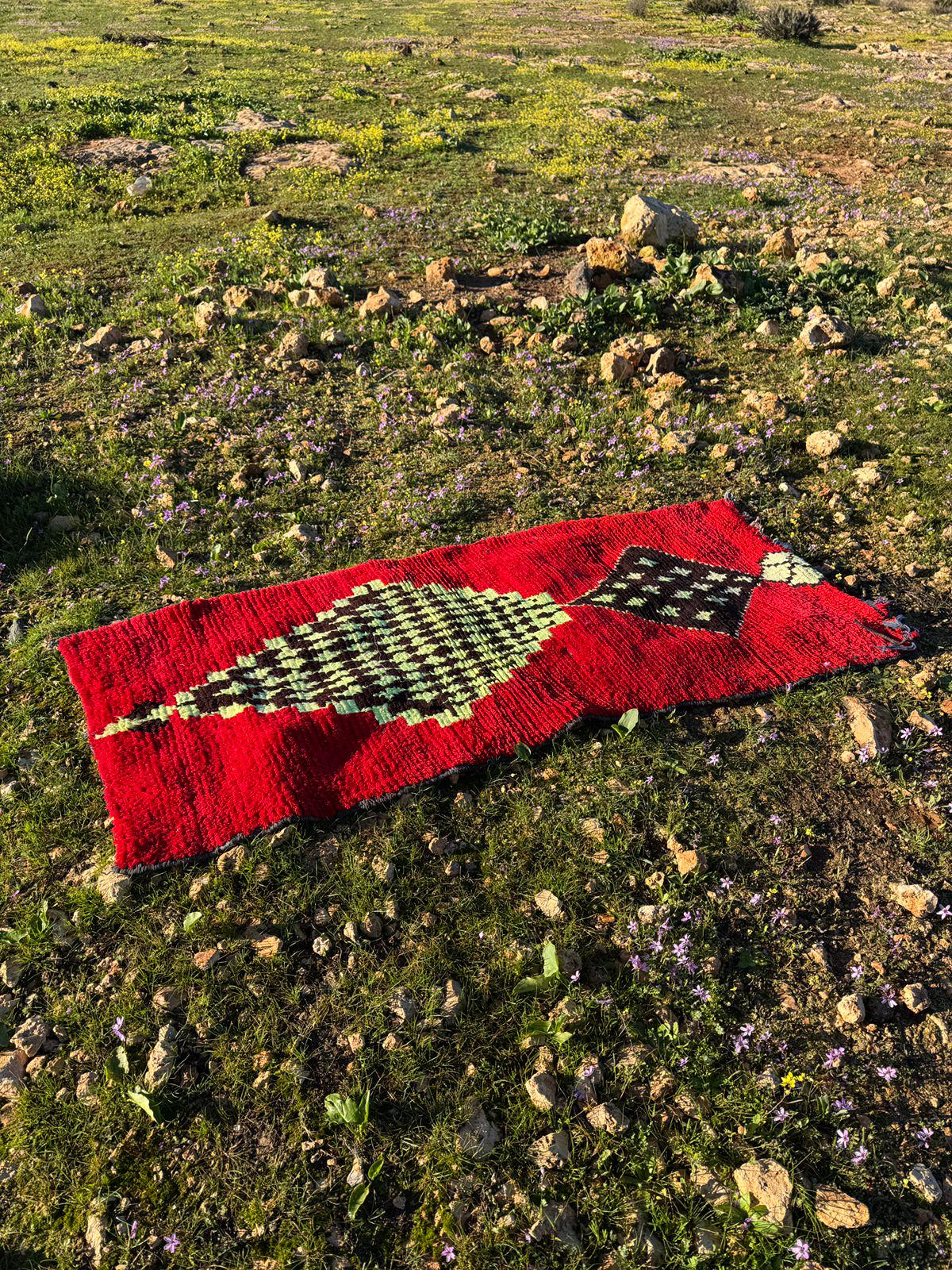 Every detail in this rug reflects authenticity — from the organic texture of the wool to the spontaneous tribal motifs that make each piece truly one of a kind. The playful yet mysterious cat figure turns the rug into a statement artwork, perfect for collectors of vintage textiles and lovers of bohemian interiors.