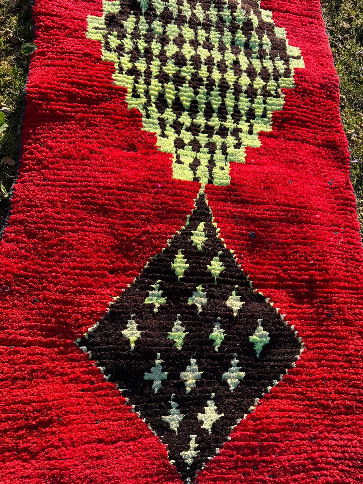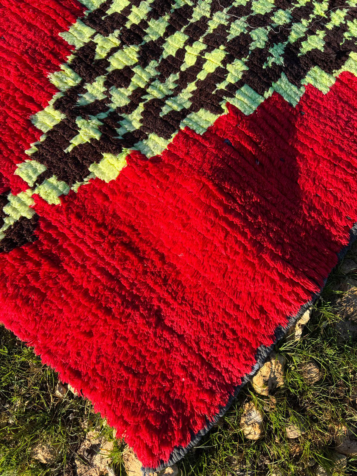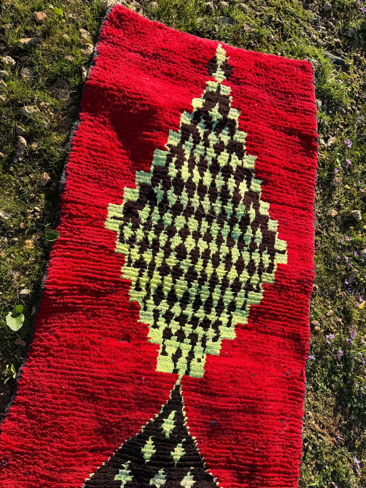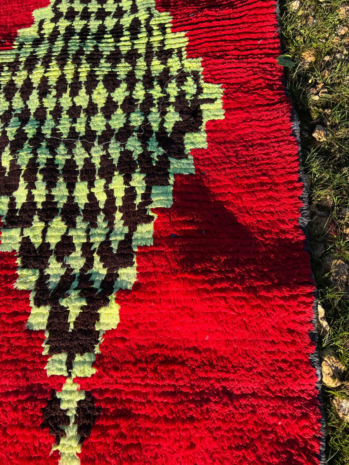 Every detail in this rug reflects authenticity — from the organic texture of the wool to the spontaneous tribal motifs that make each piece truly one of a kind. The playful yet mysterious cat figure turns the rug into a statement artwork, perfect for collectors of vintage textiles and lovers of bohemian interiors.