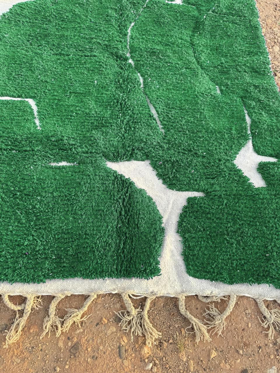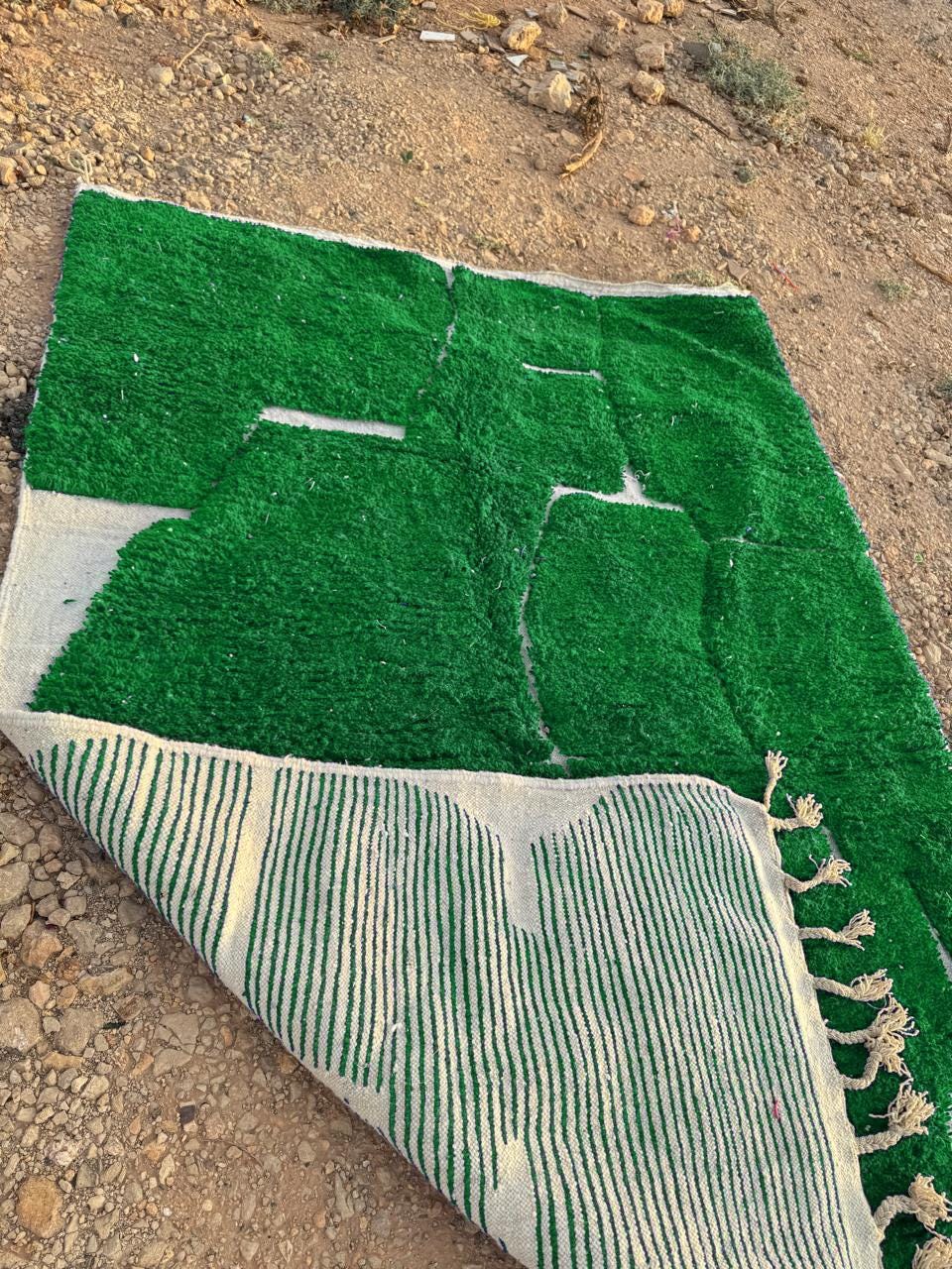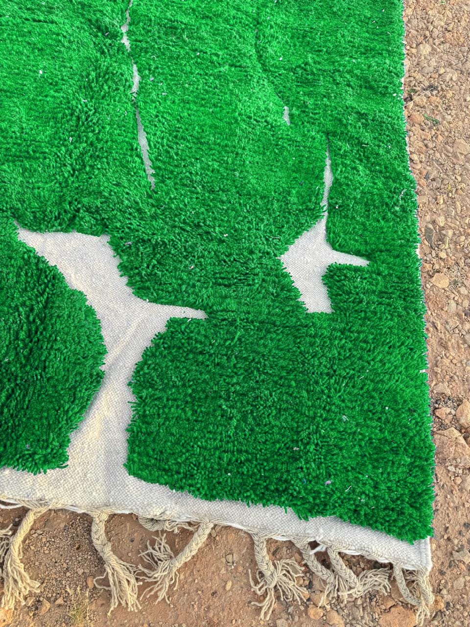 Color Block Moroccan Rug – Handmade Wool Berber Carpet, Green Pink. The carpet is green