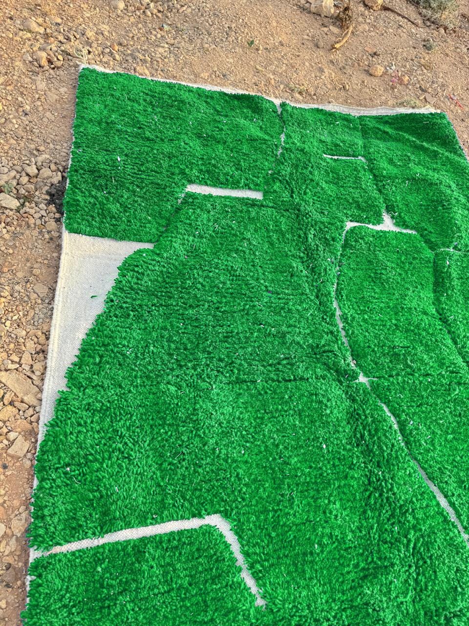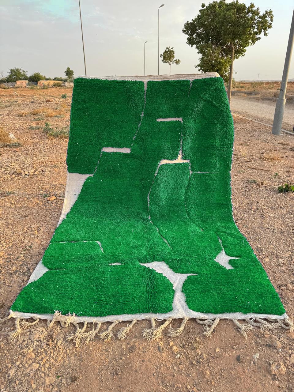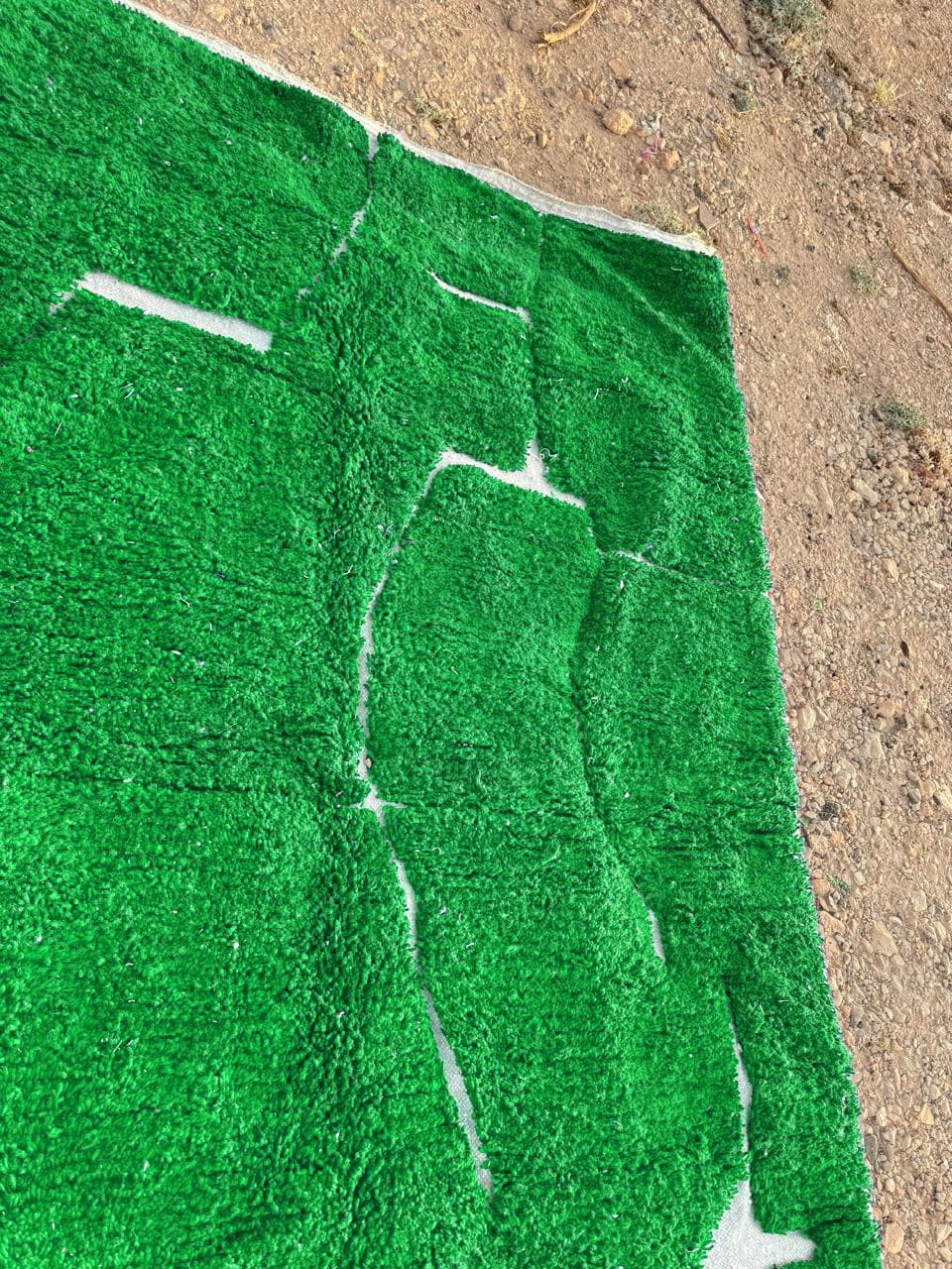 Color Block Moroccan Rug – Handmade Wool Berber Carpet, Green Pink. The carpet is green