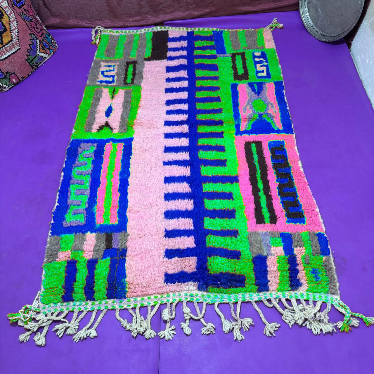 Azilal Rugs – Colorful, abstract tribal designs made with wool and natural dyes.