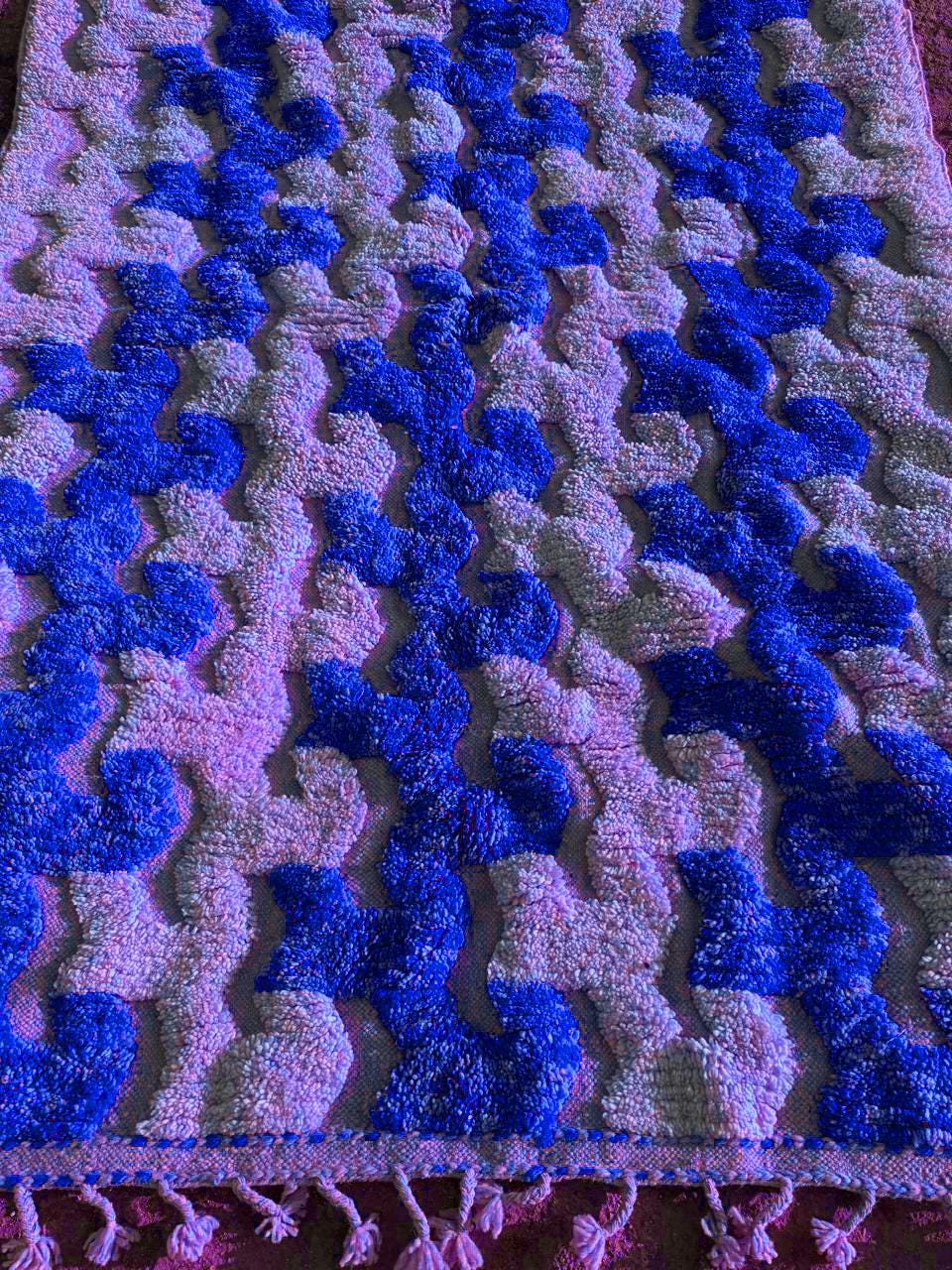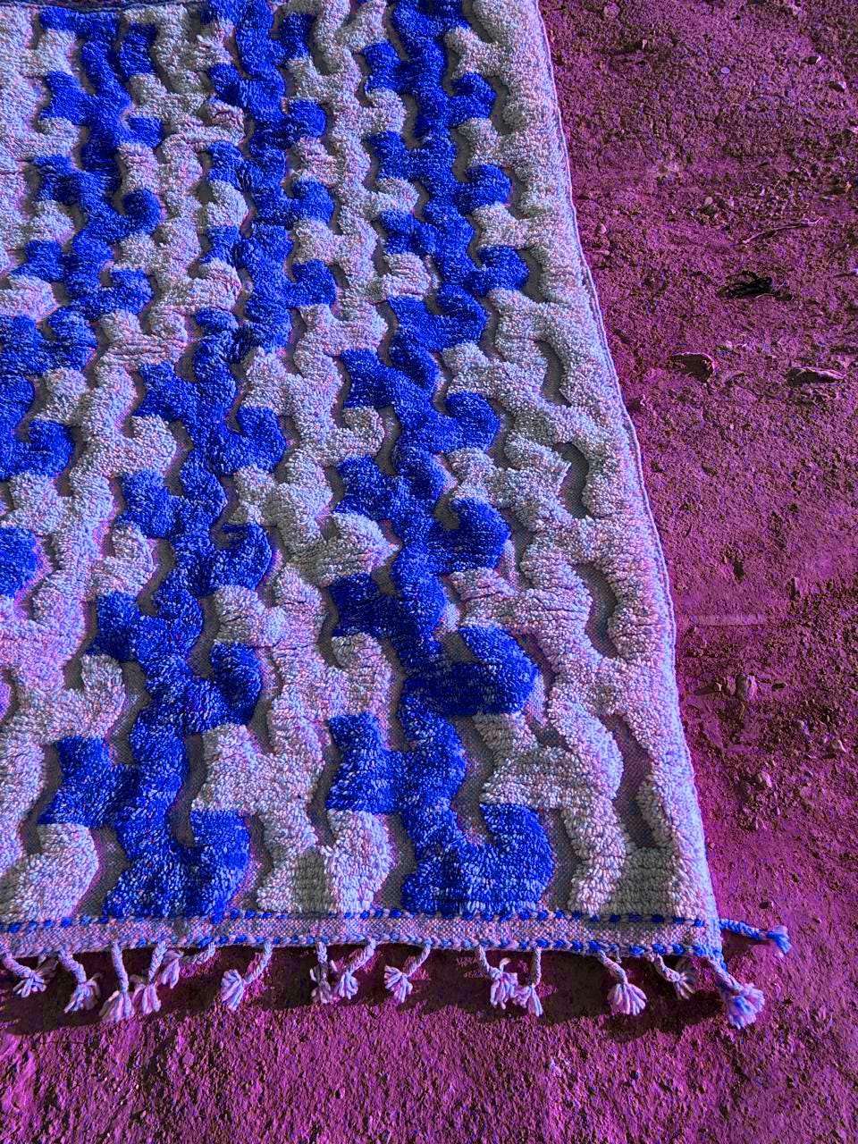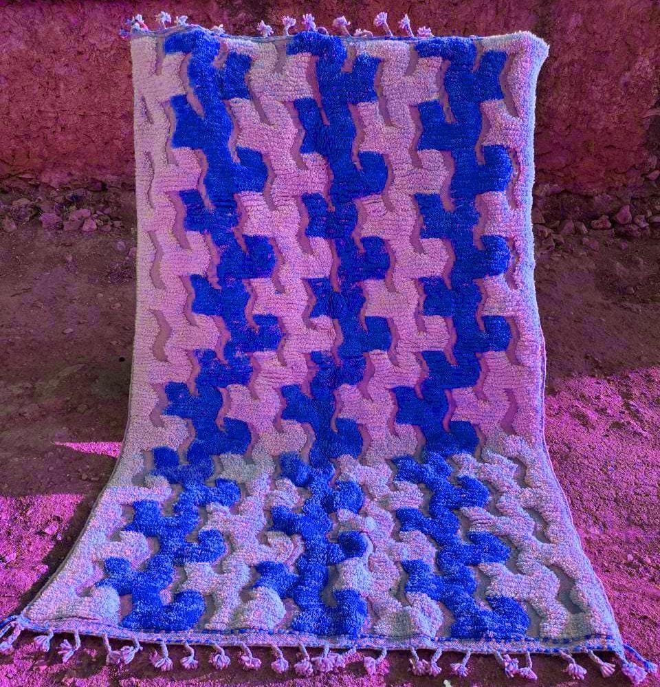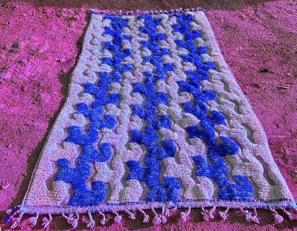 Blue Moroccan Rug ;Blue & White Wavy Beni ourain rug ;Handmade Striped Area Rug ;Custom Berber Wool Rug; rugs