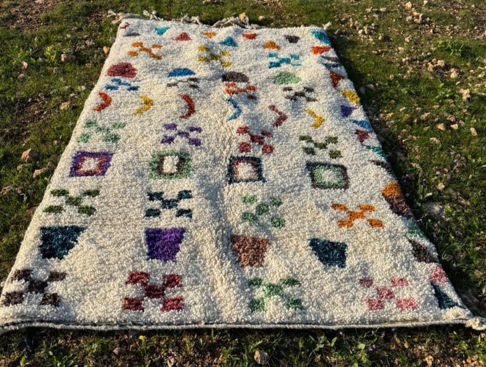 Funky Berber Rug;Moroccan Woolen Carpet;Azilal Beni Ouarain Style; rug