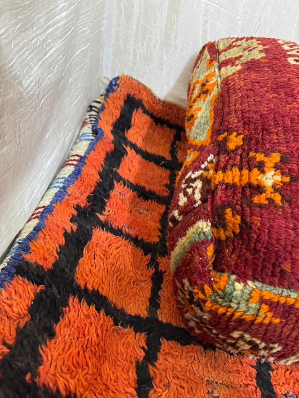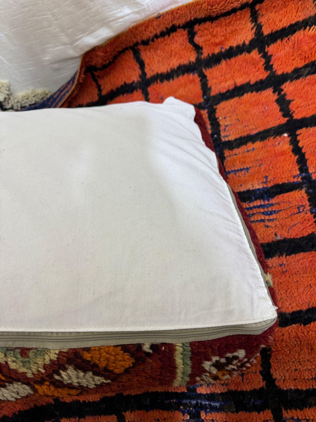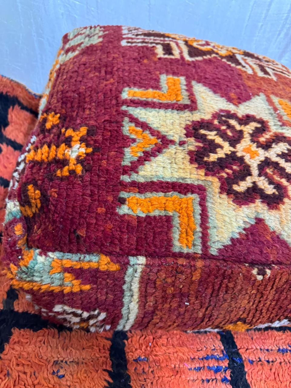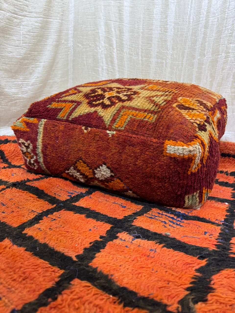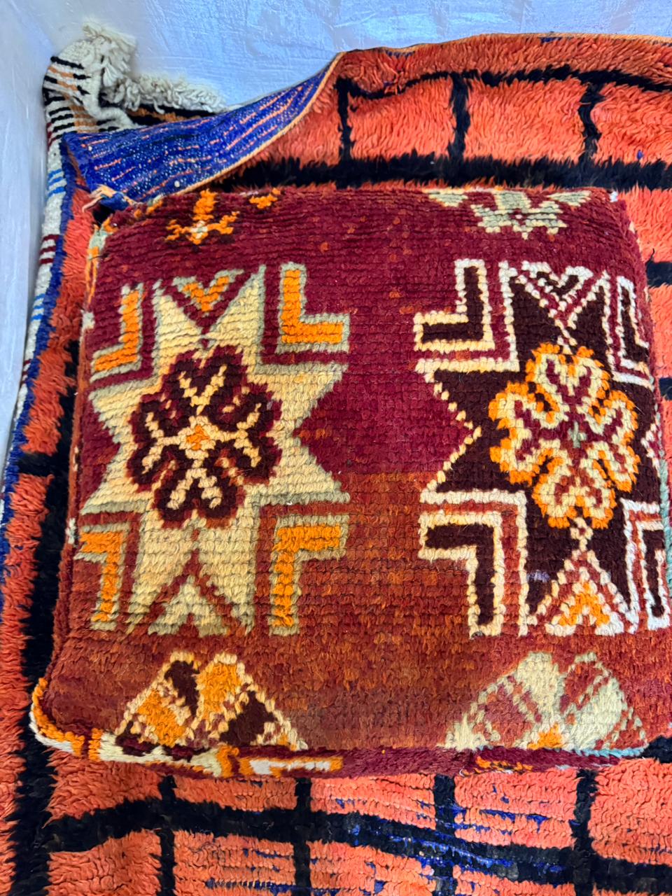 Vintage Moroccan Floor Pouf ;Handwoven Berber Cushion from Boujad Rug ;Boho Tribal Ottoman"
