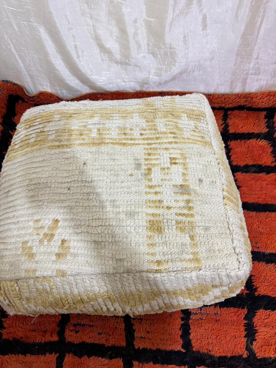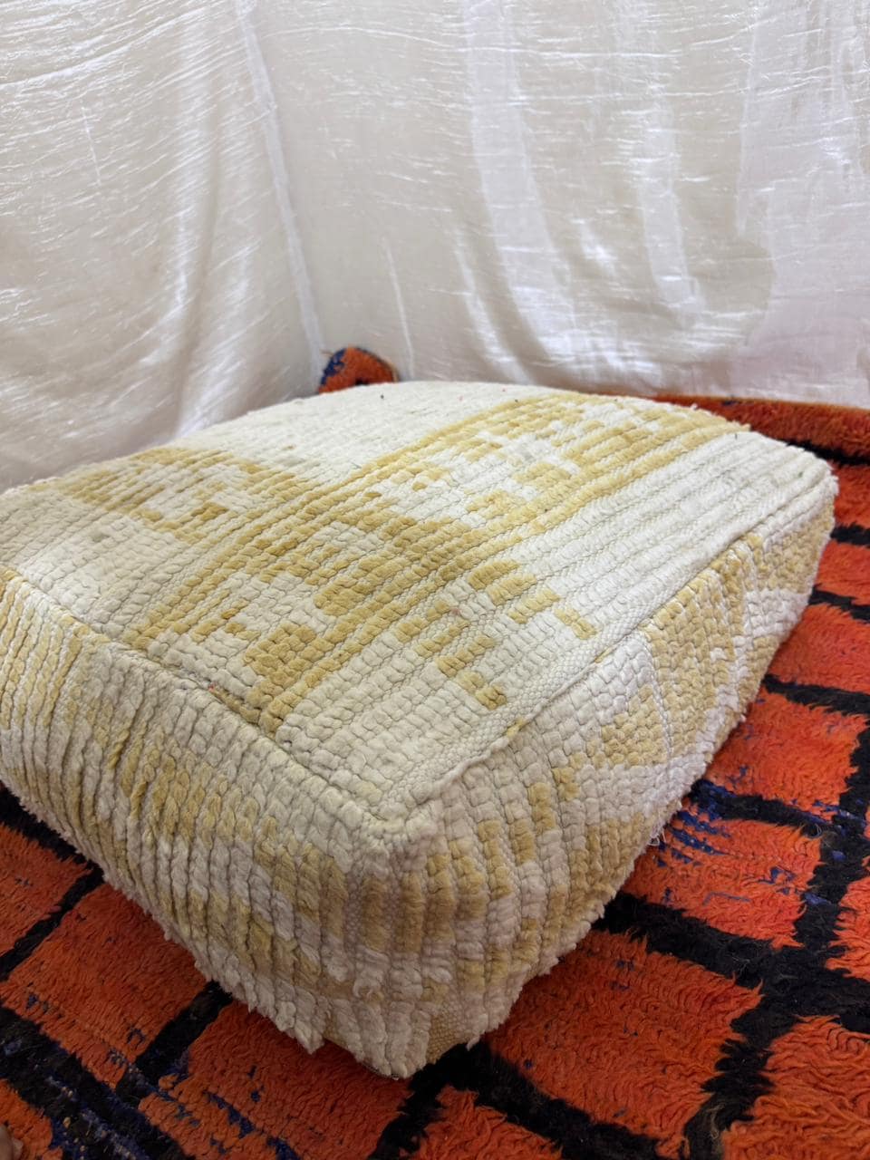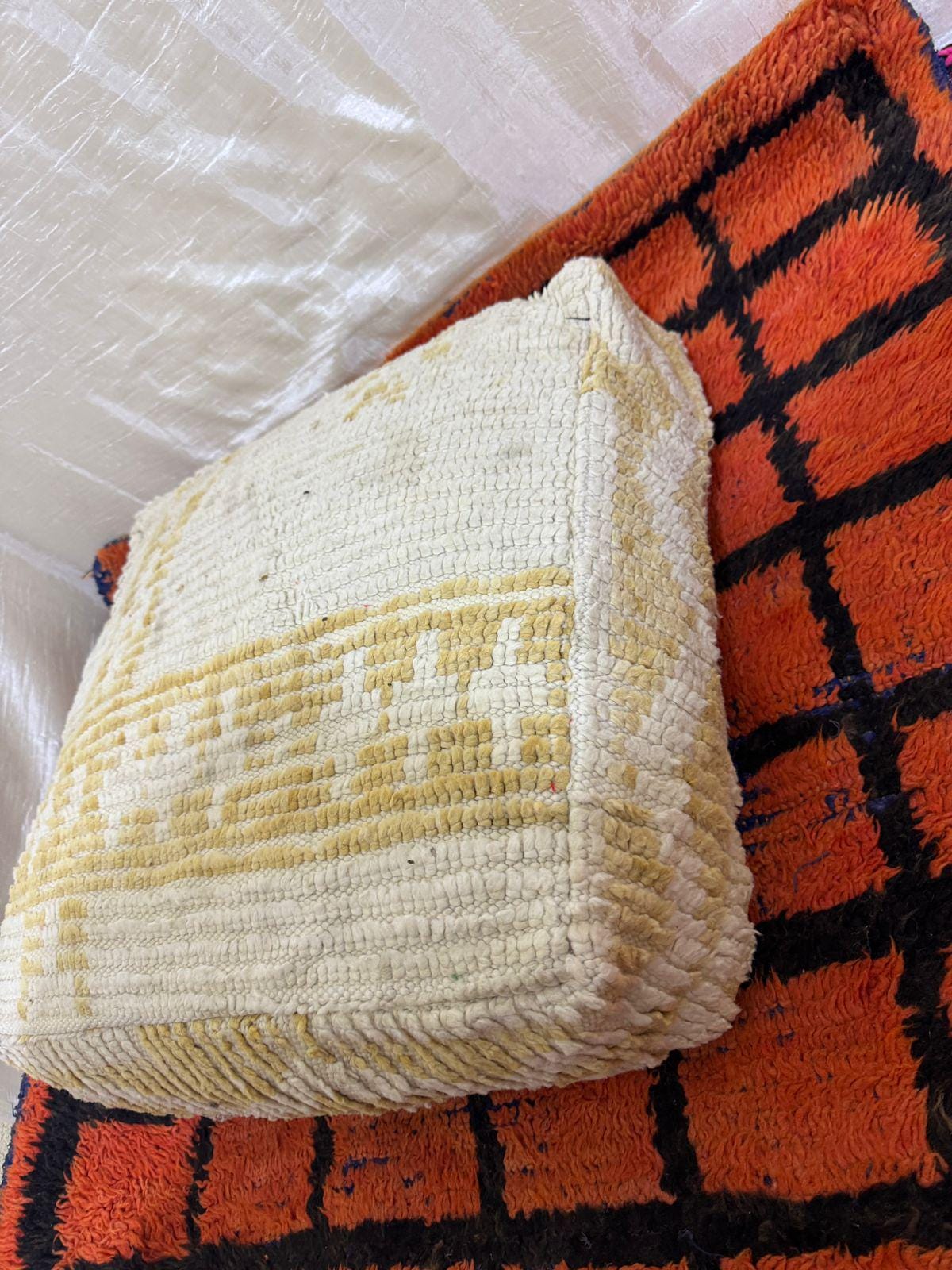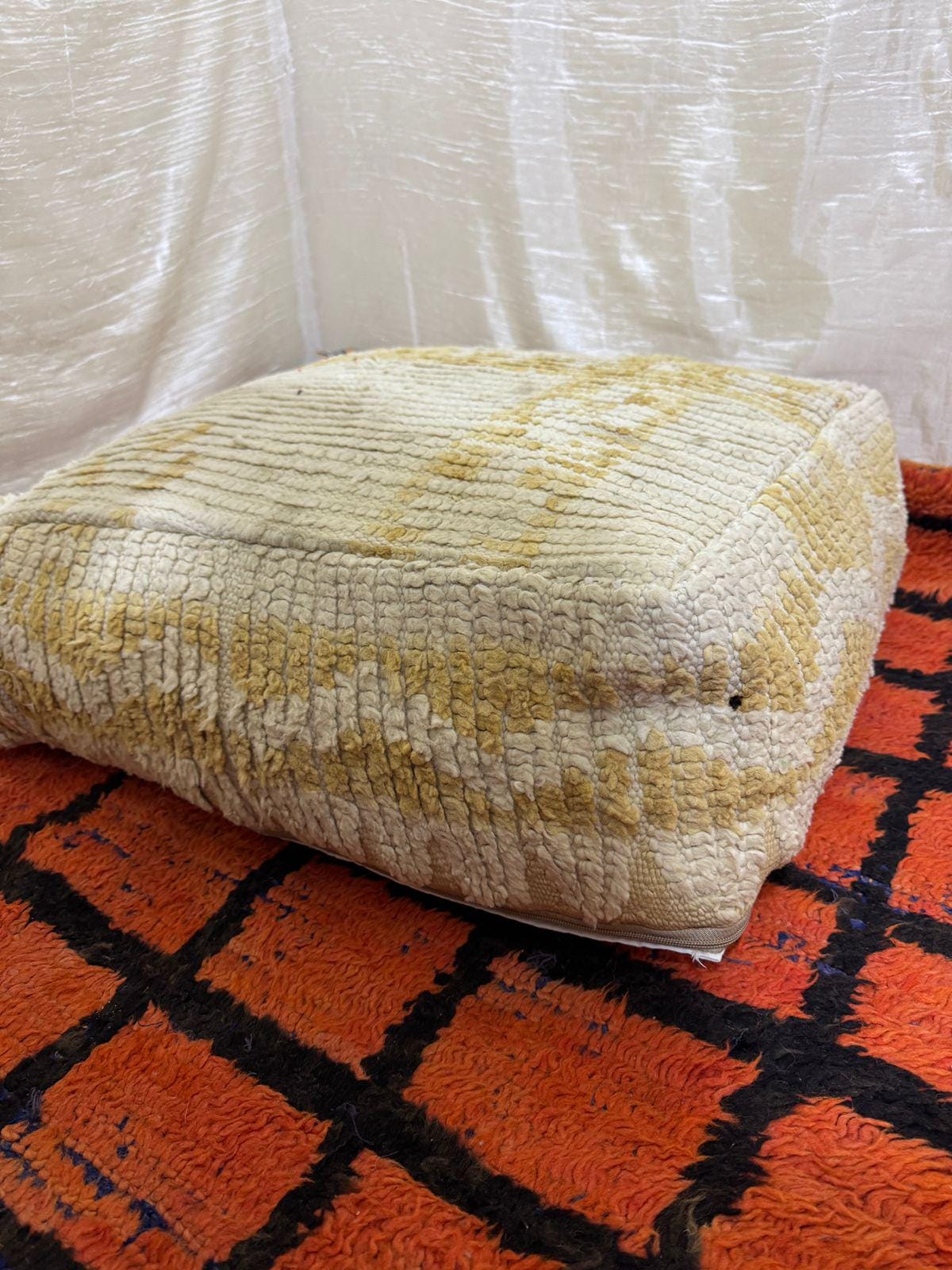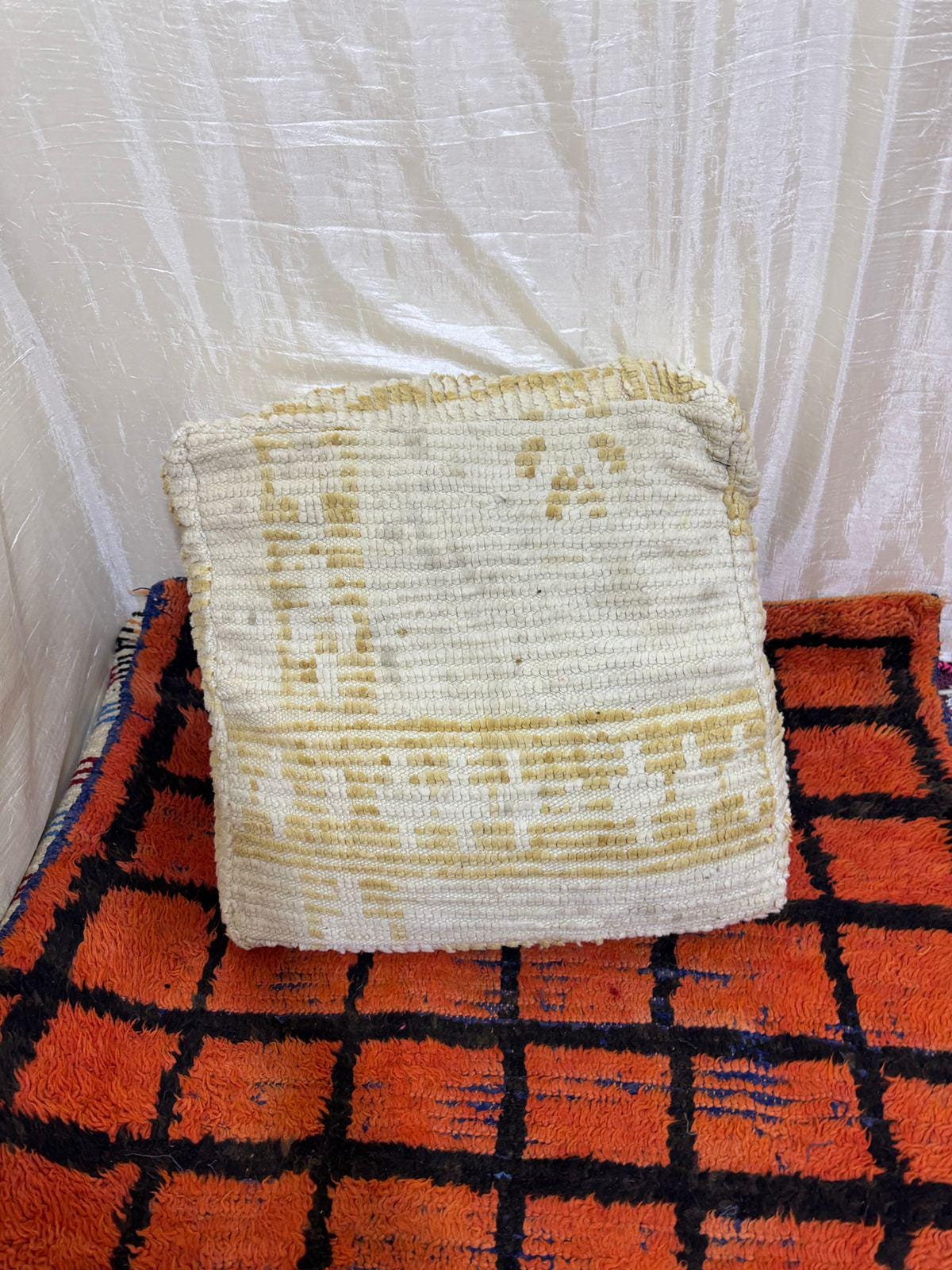 Vintage Moroccan Floor Pouf ;Handwoven Berber Cushion from Boujad Rug ;Boho Tribal Ottoman"