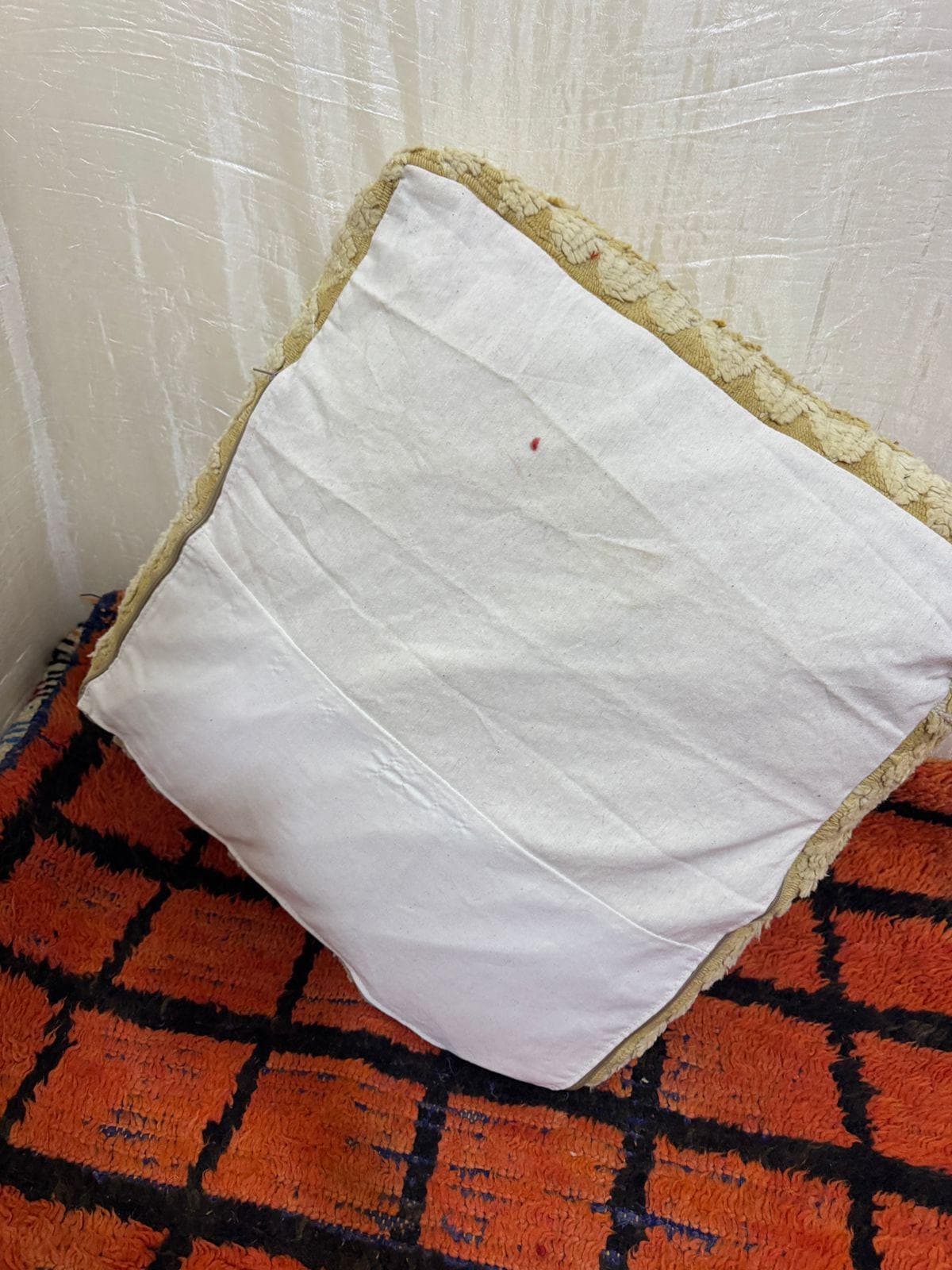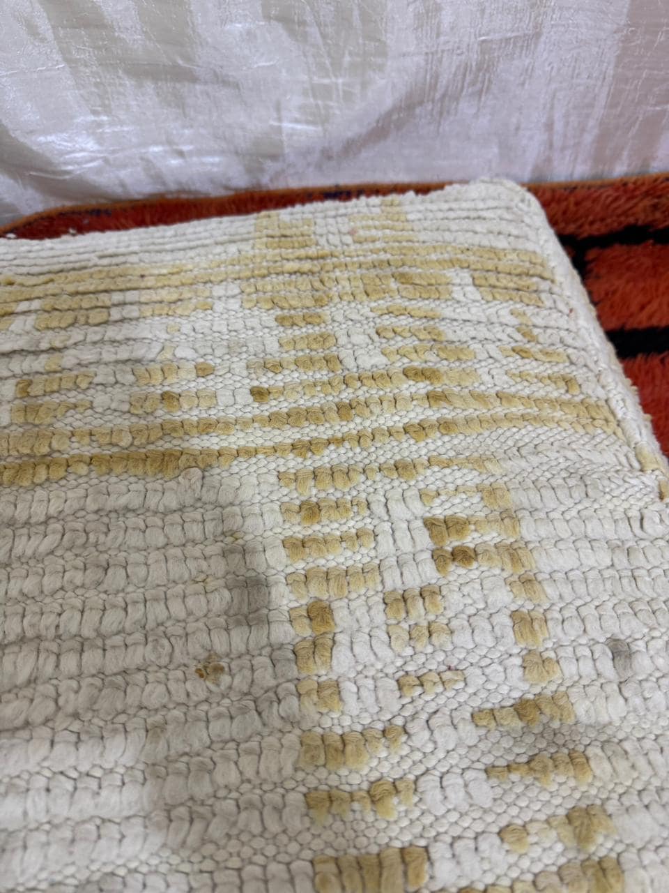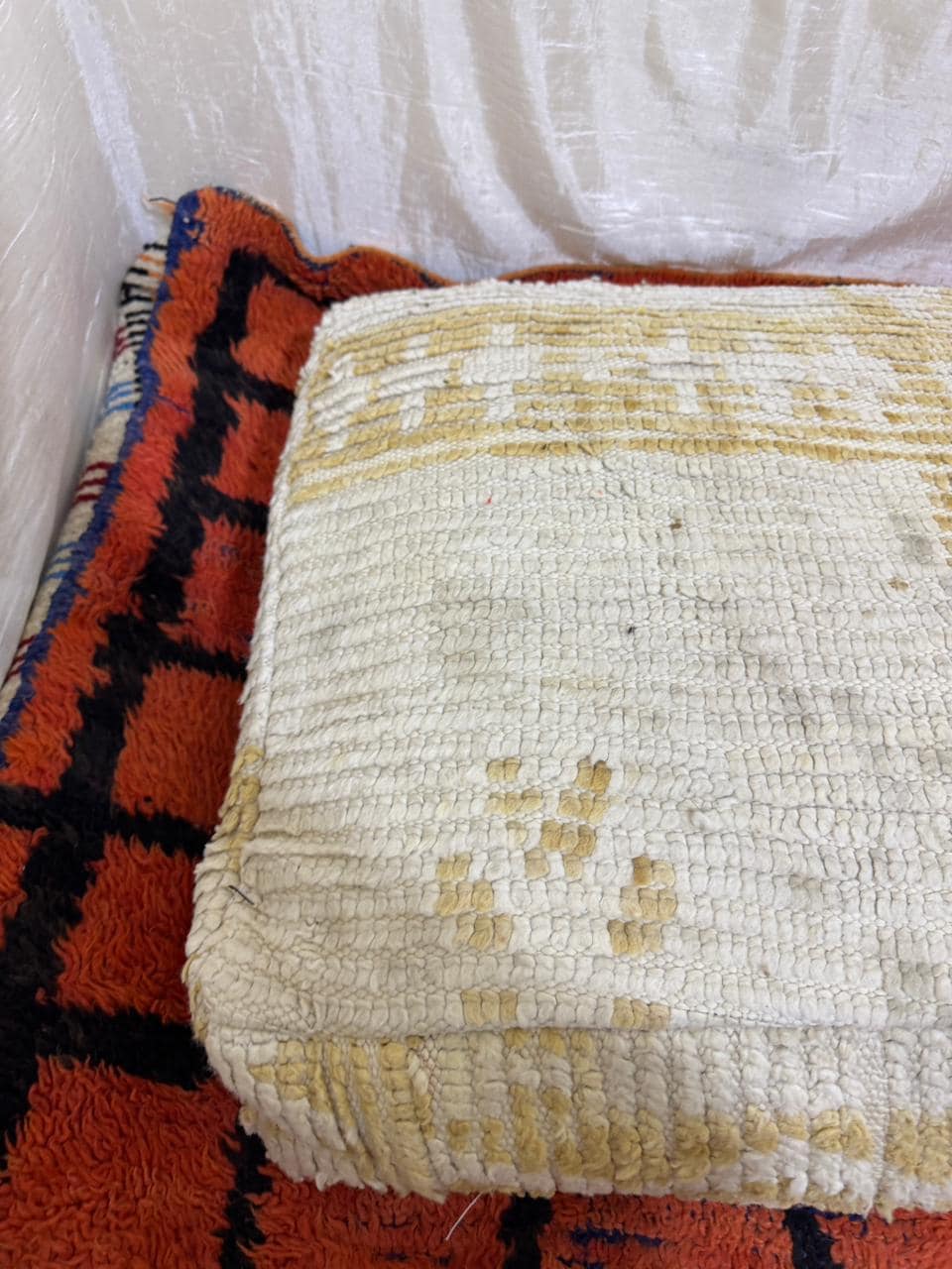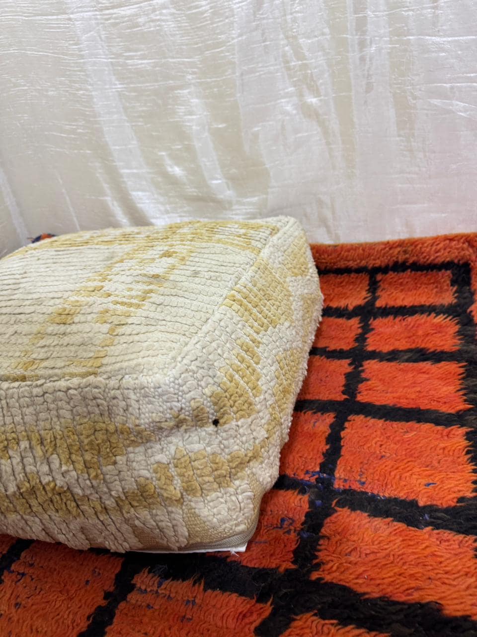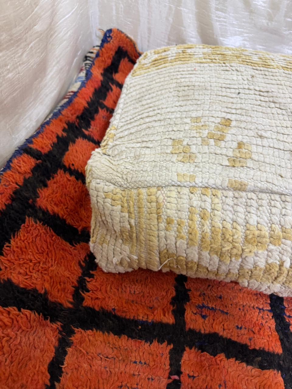 Vintage Moroccan Floor Pouf ;Handwoven Berber Cushion from Boujad Rug ;Boho Tribal Ottoman"